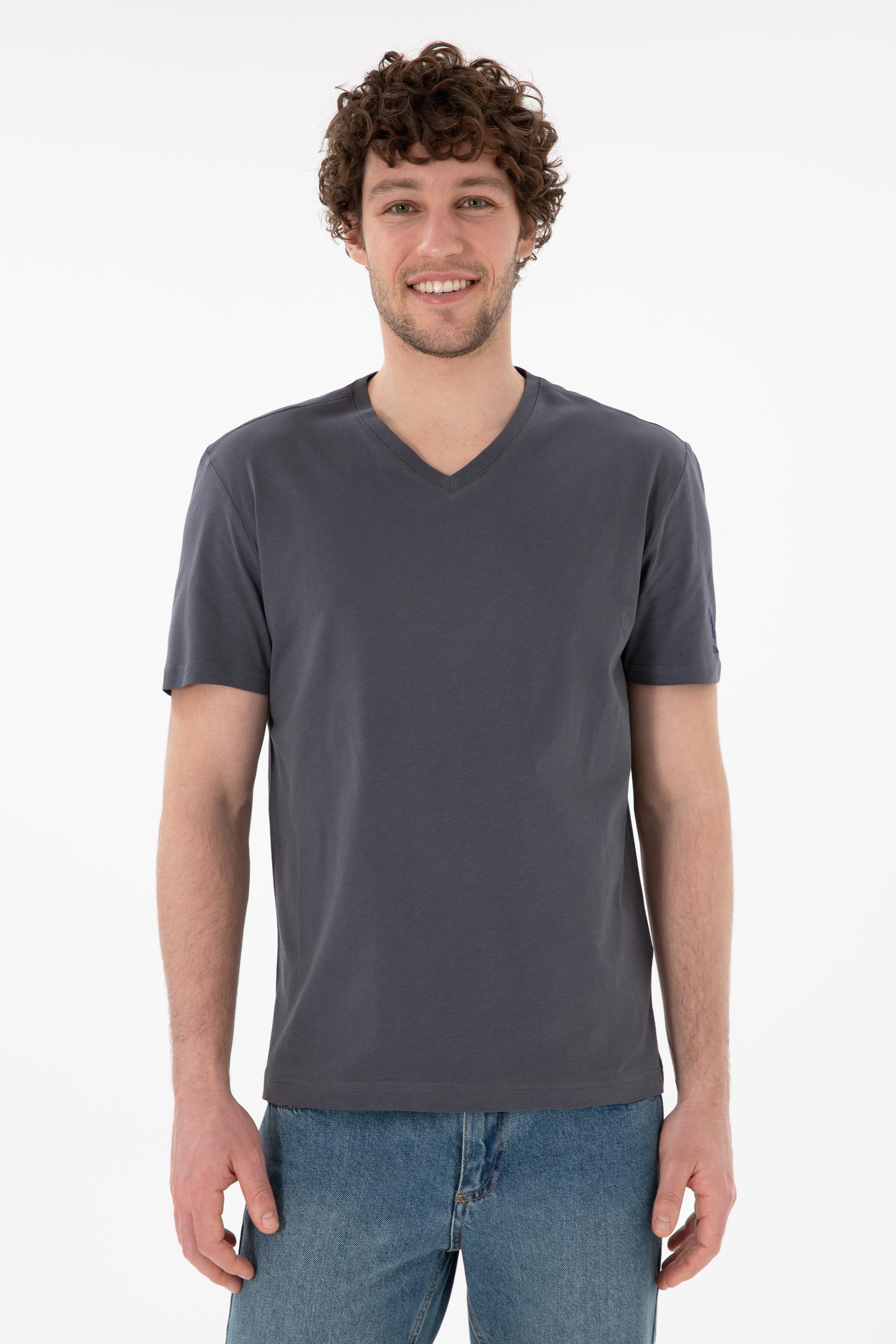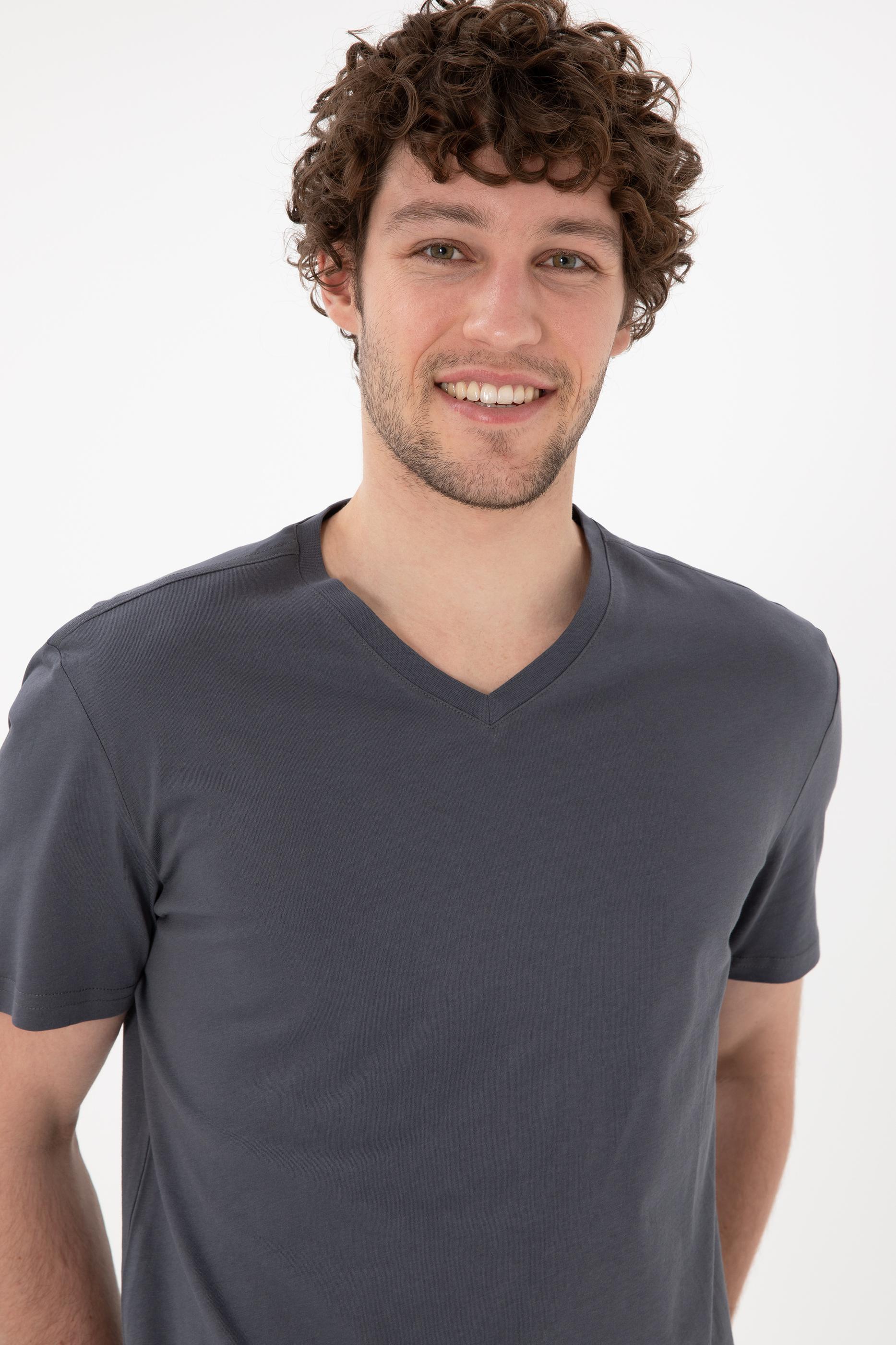 Erkek Regular Fit V Yaka Antrasit Basic Tişört