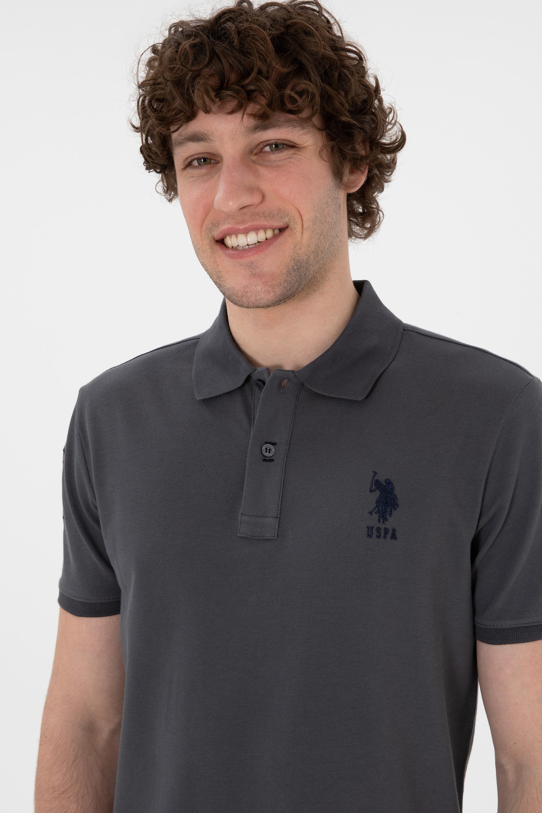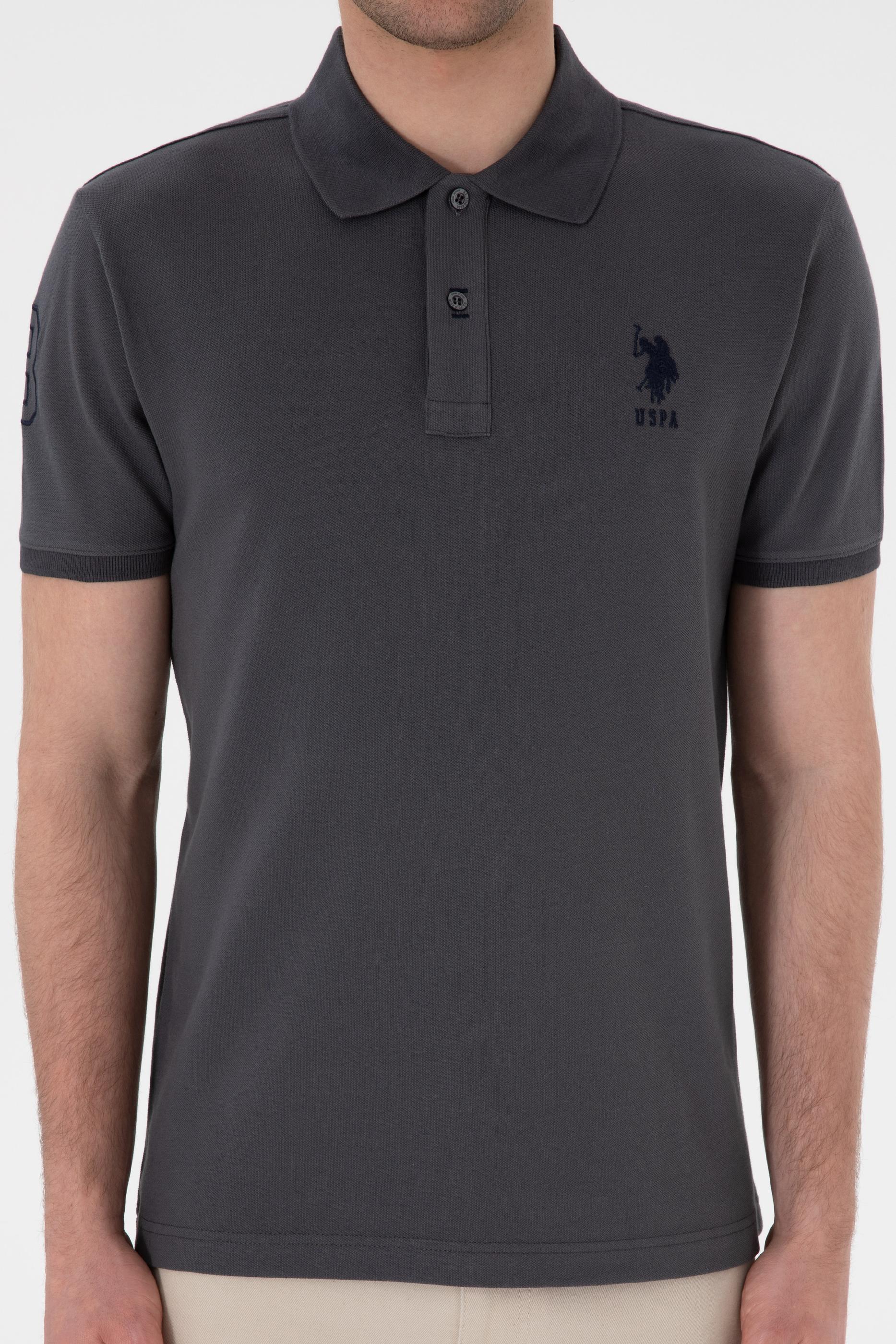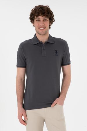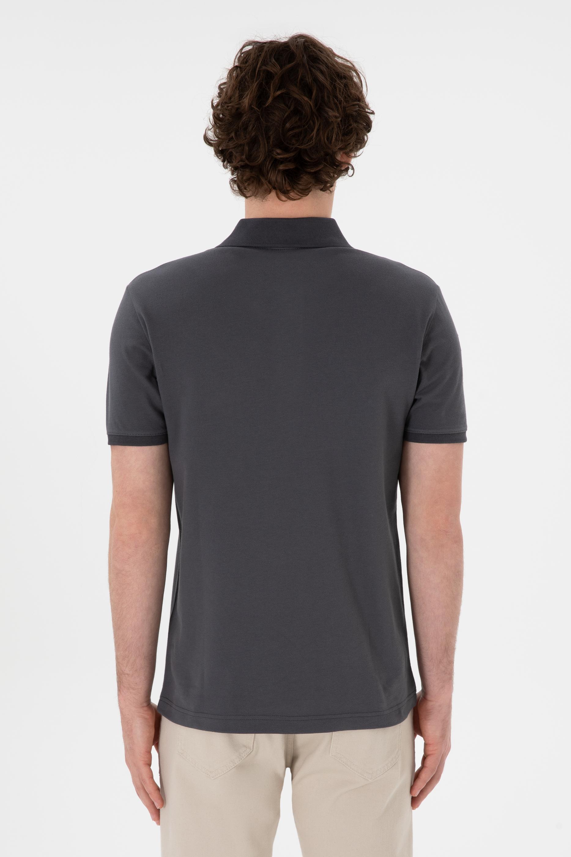 Erkek Slim Fit Polo Yaka Antrasit Basic Tişört