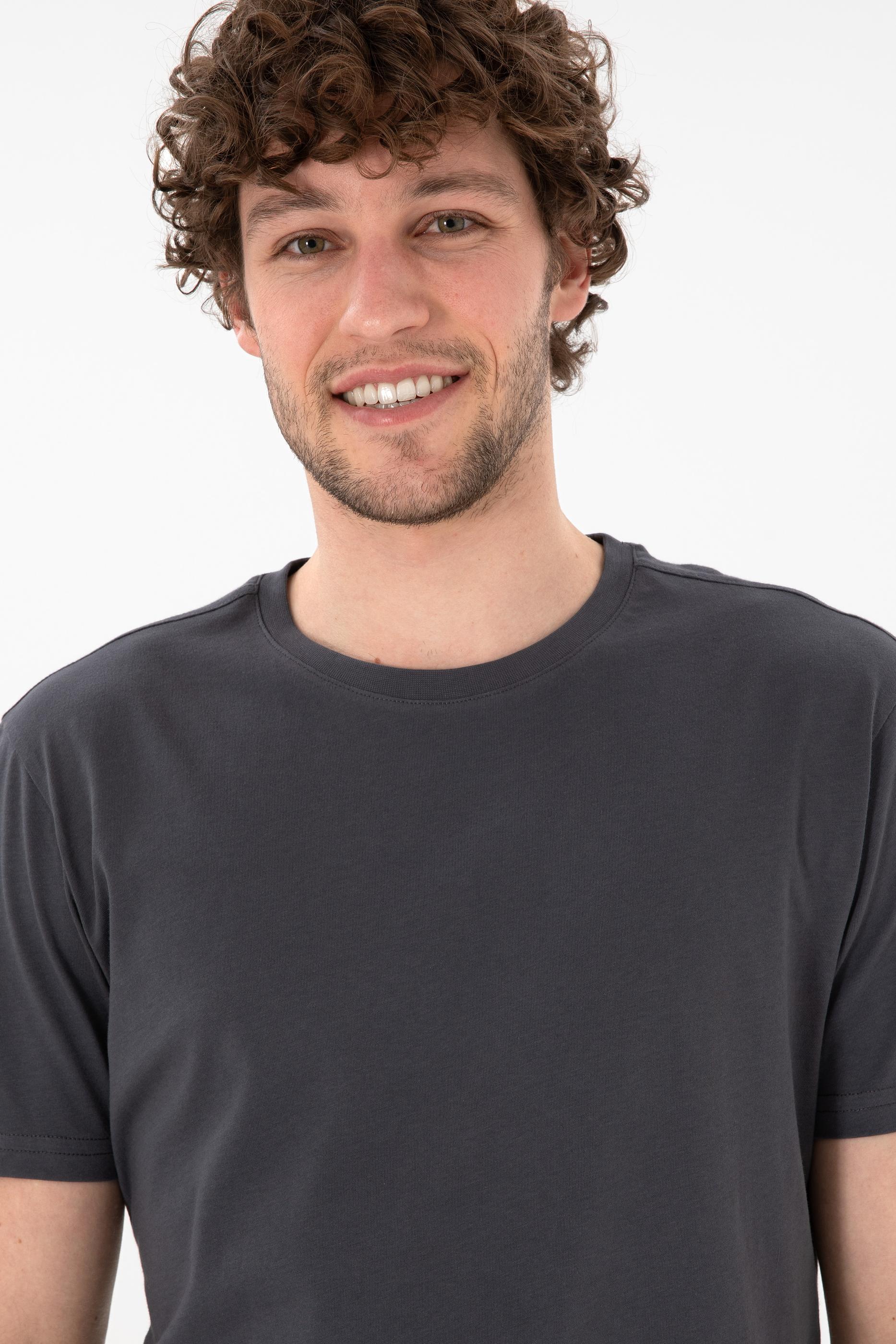 - Erkek Regular Fit Bisiklet Yaka Antrasit Basic Tişört