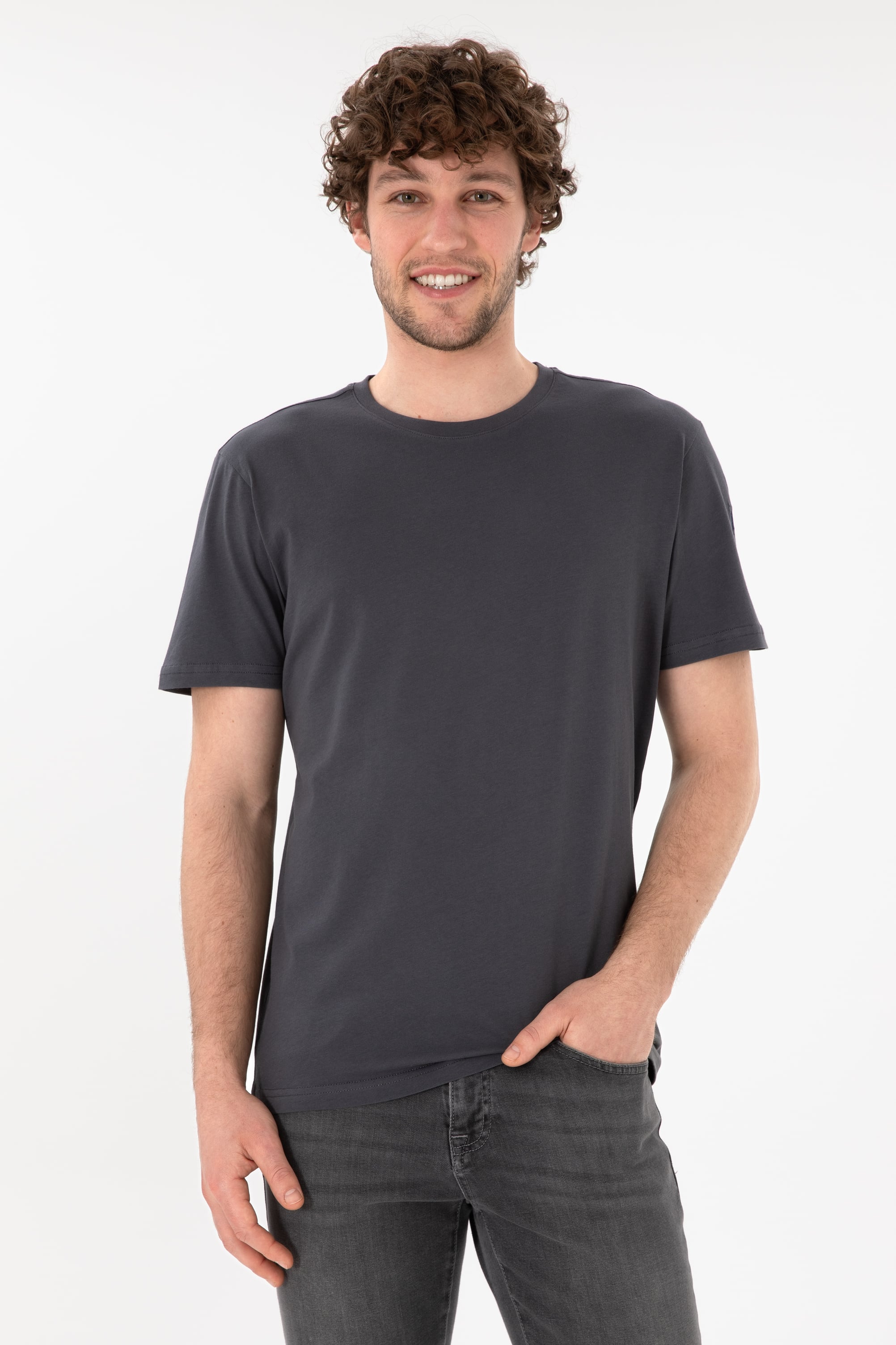 Erkek Regular Fit Bisiklet Yaka Antrasit Basic Tişört