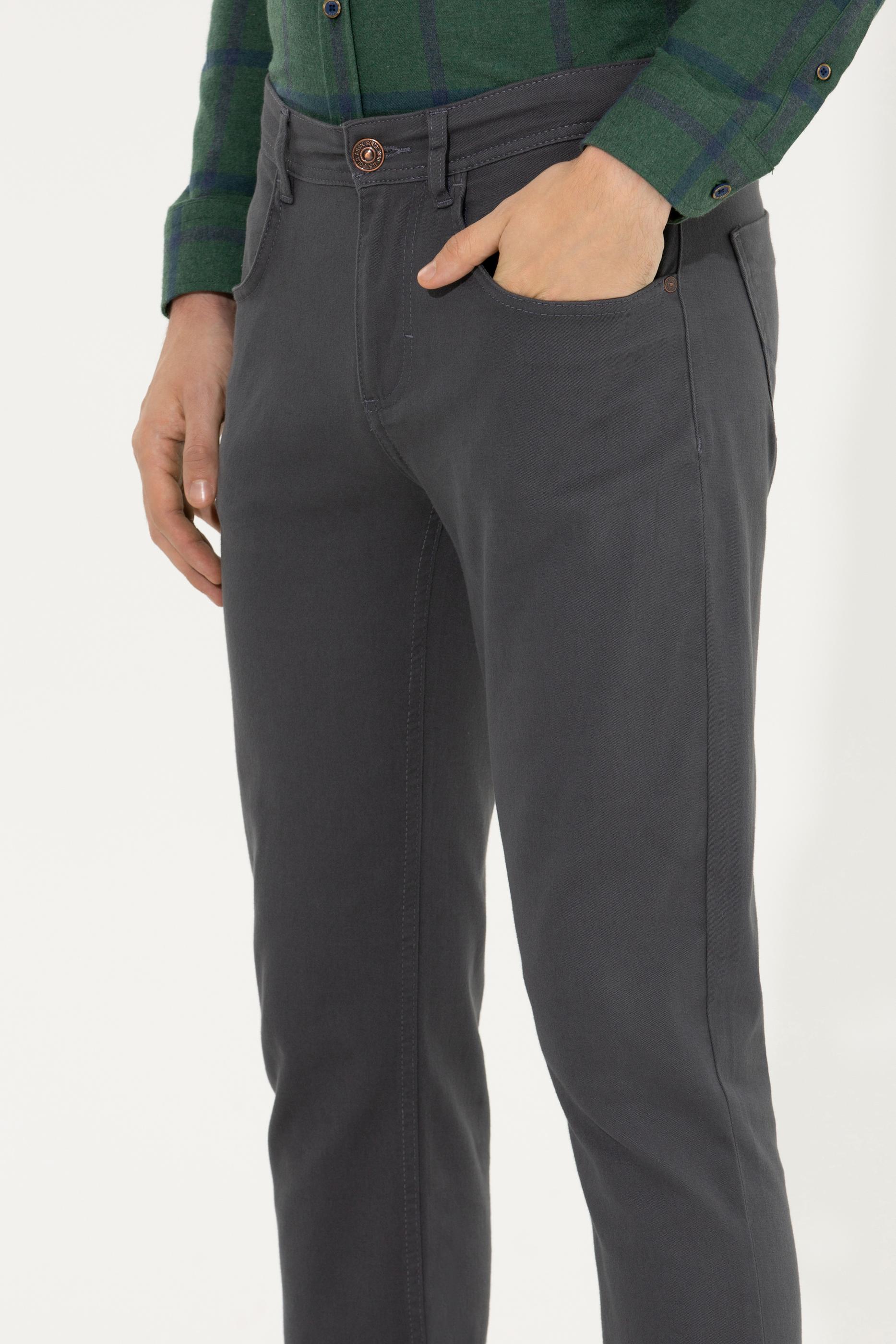 Erkek Slim Fit Antrasit Kanvas Pantolon