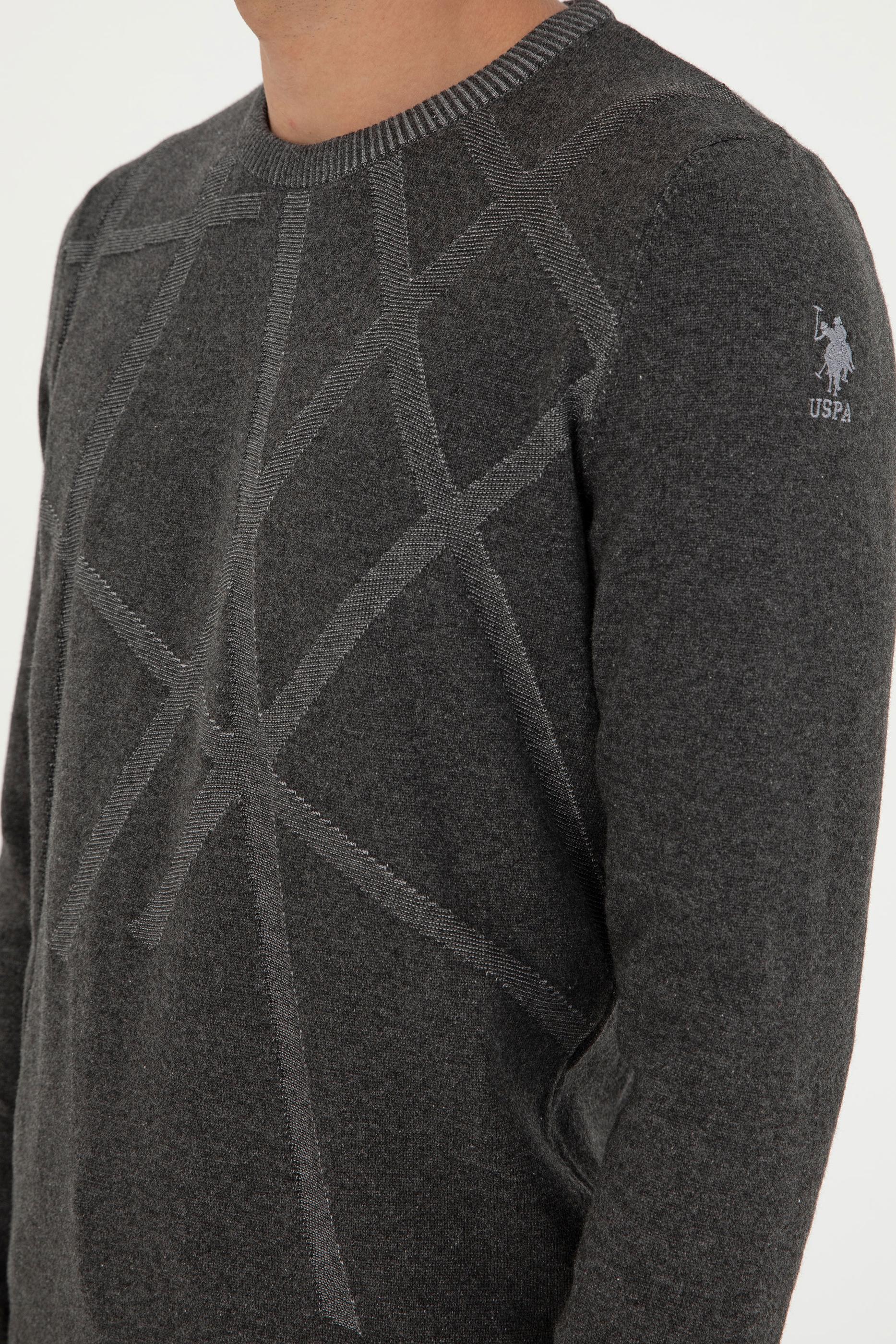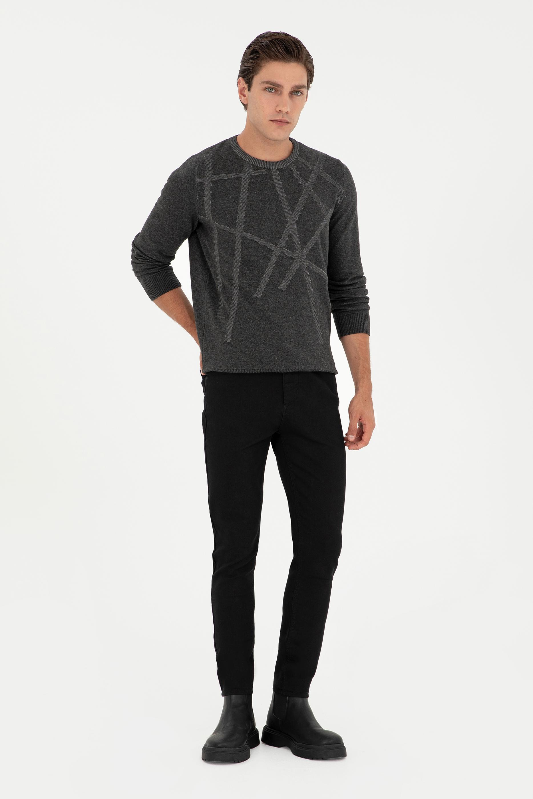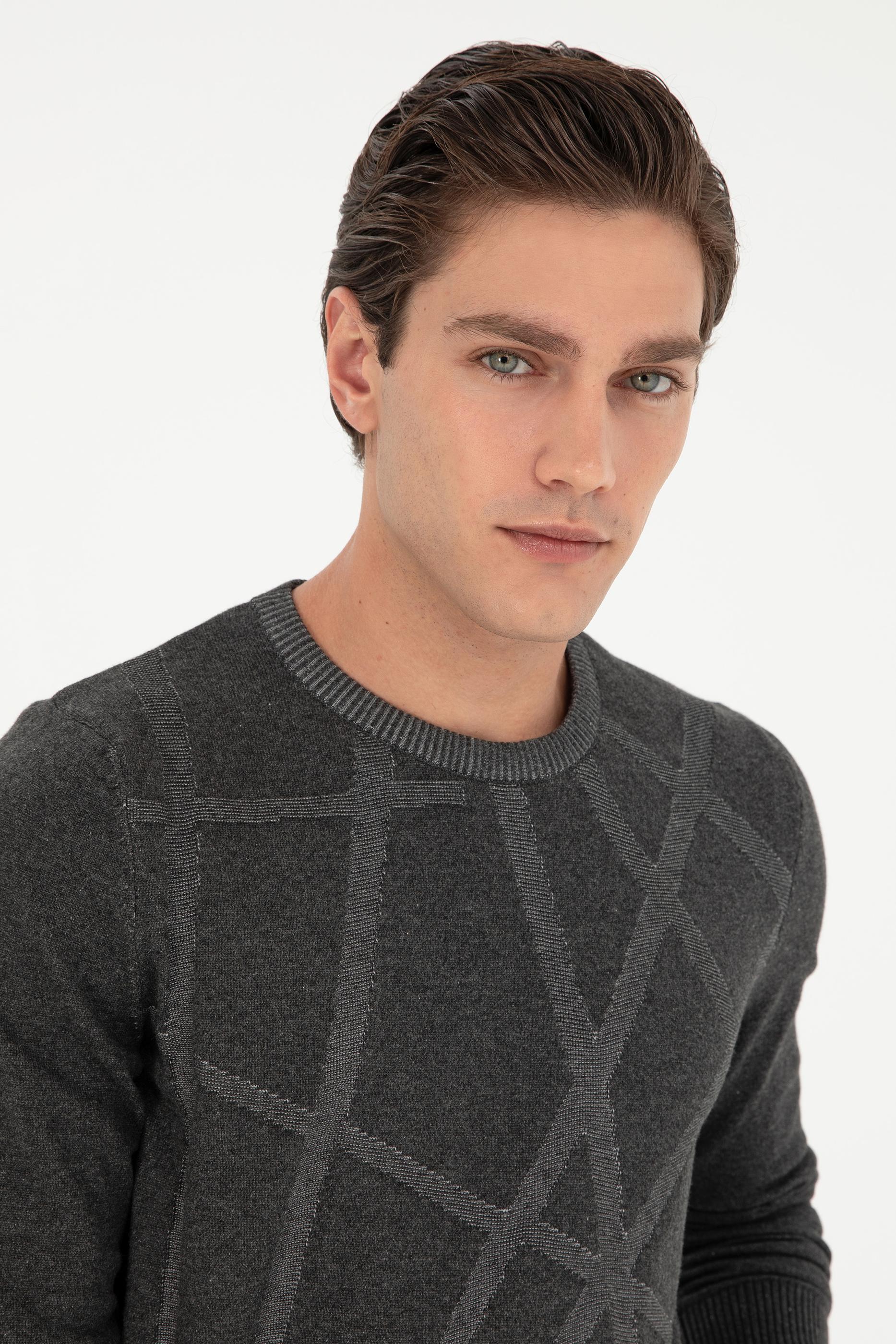 Erkek Slim Fit Bisiklet Yaka Antrasit Kazak