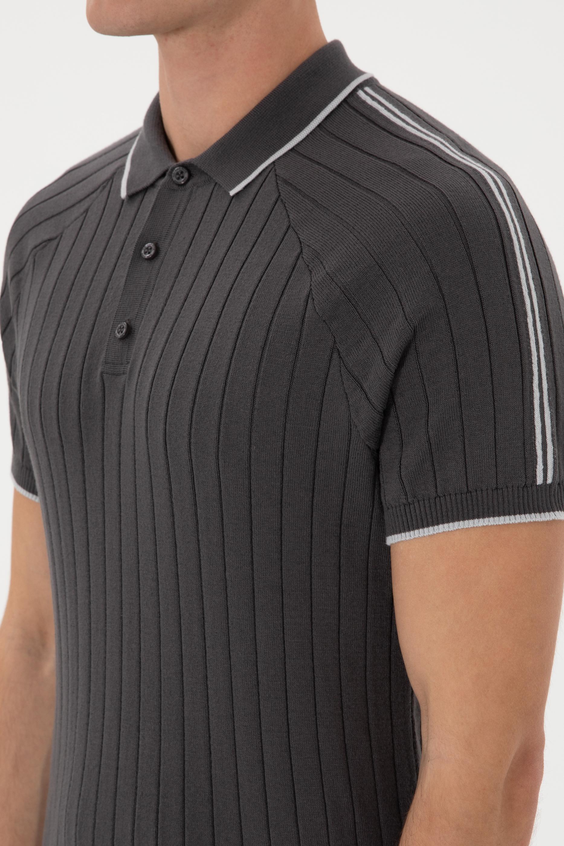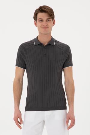 - Erkek Slim Fit Bisiklet Yaka Antrasit Tişört