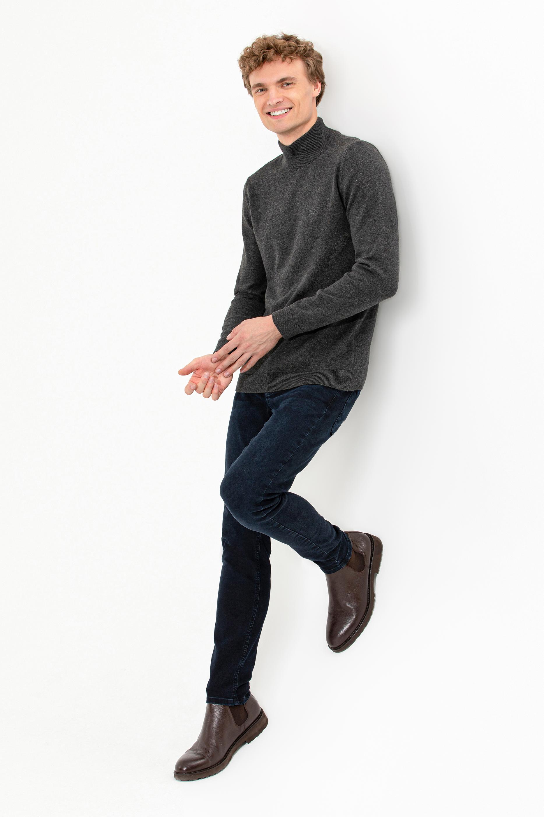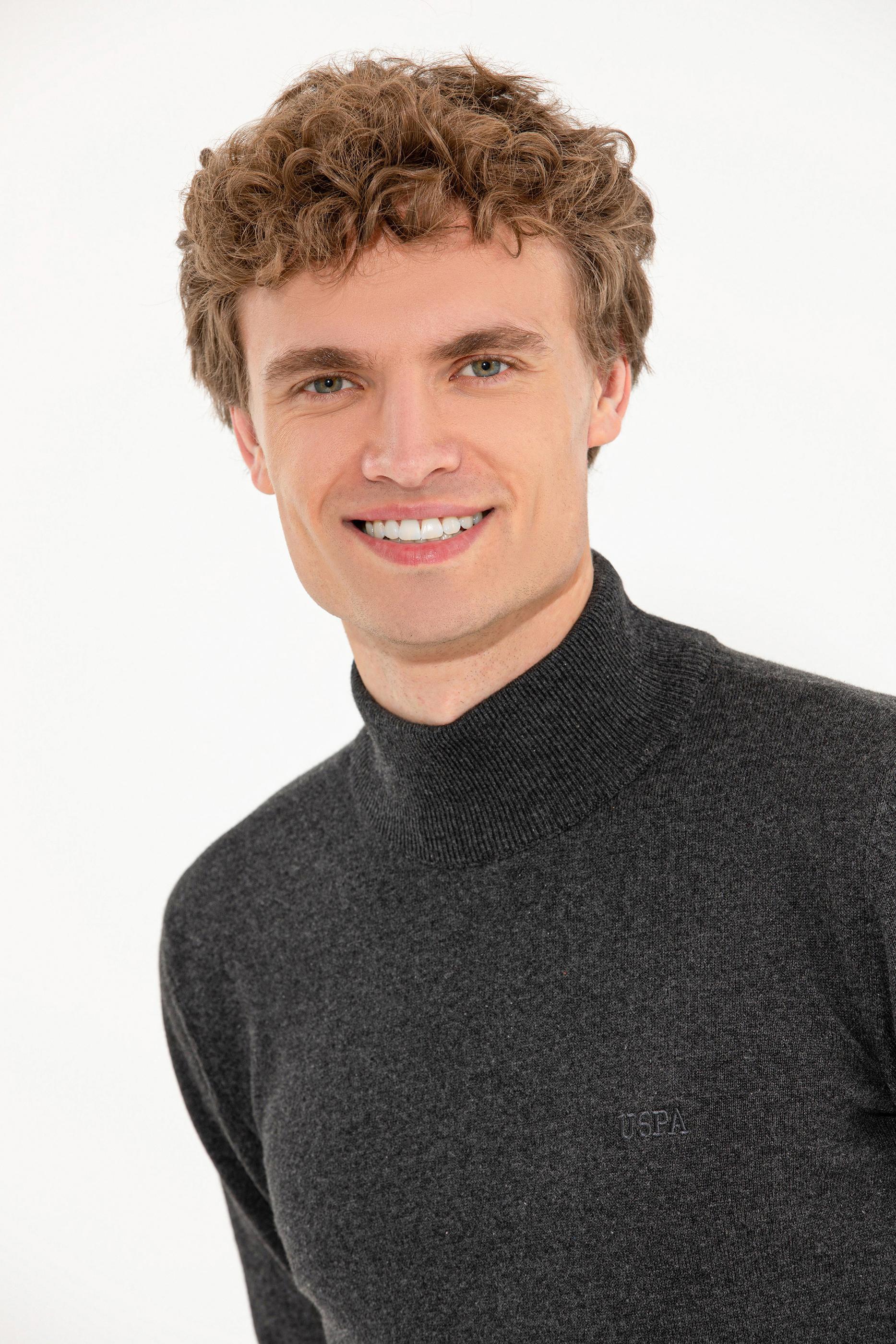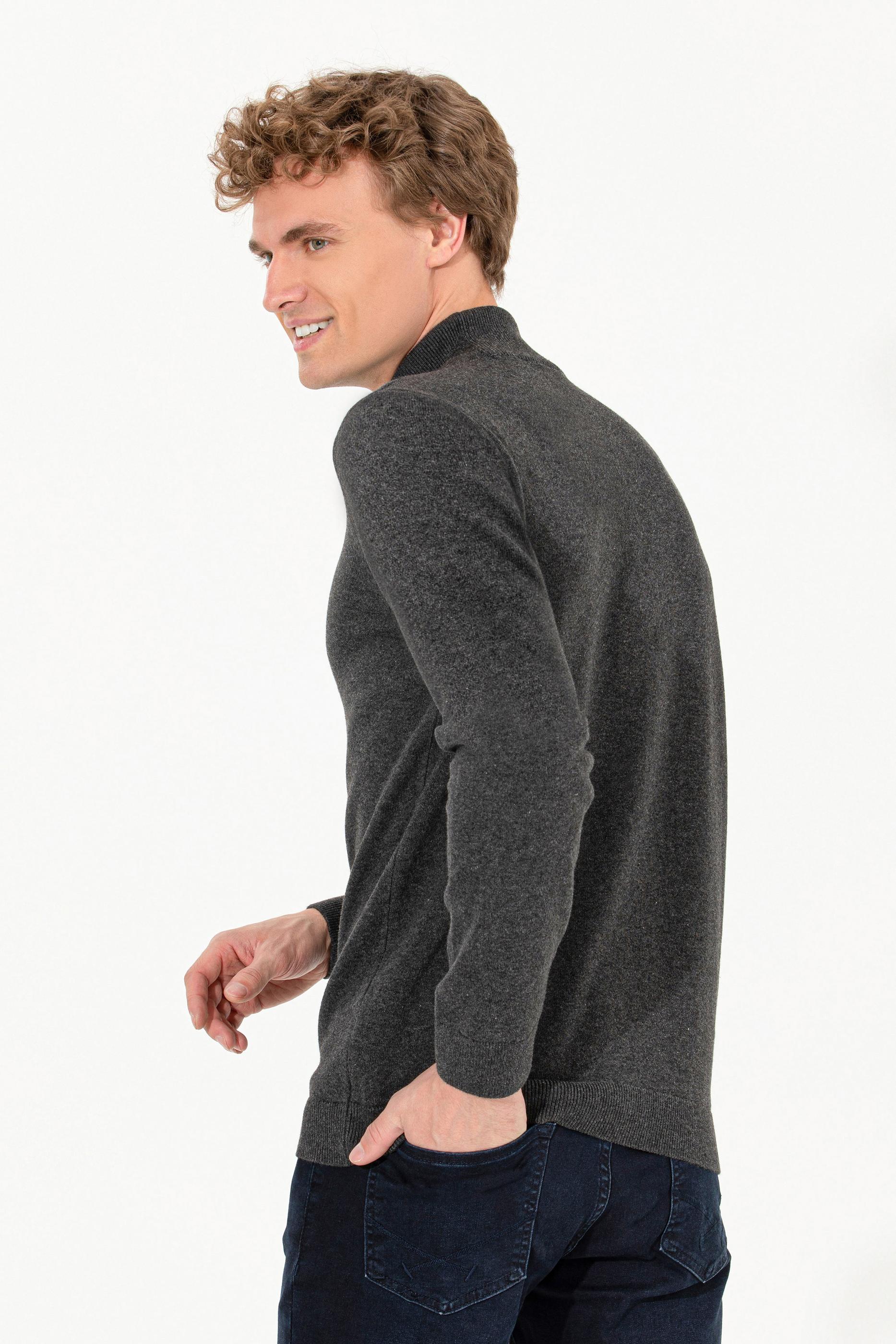 Erkek Antrasit Melanj Balıkçı Yaka Basic Triko Kazak