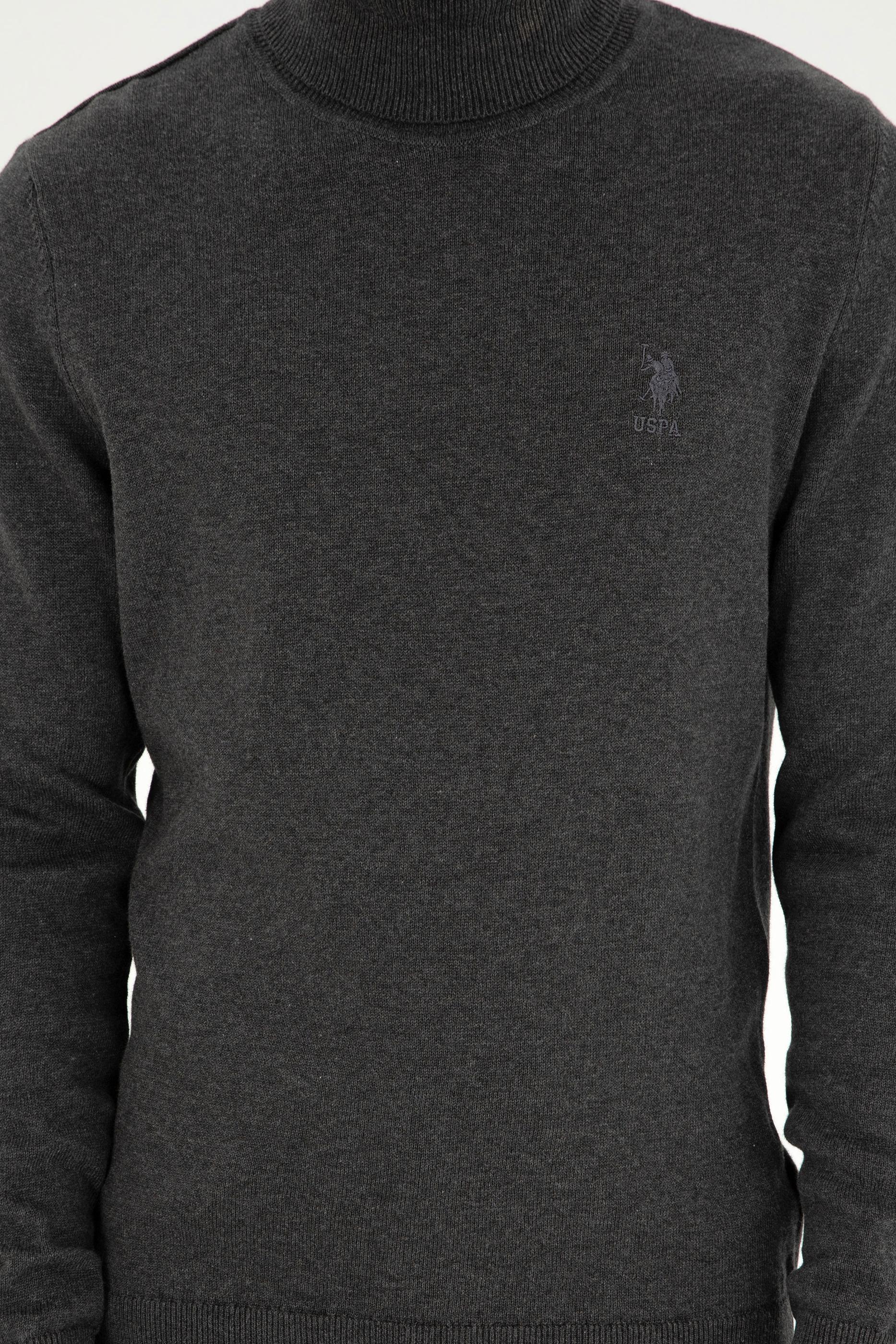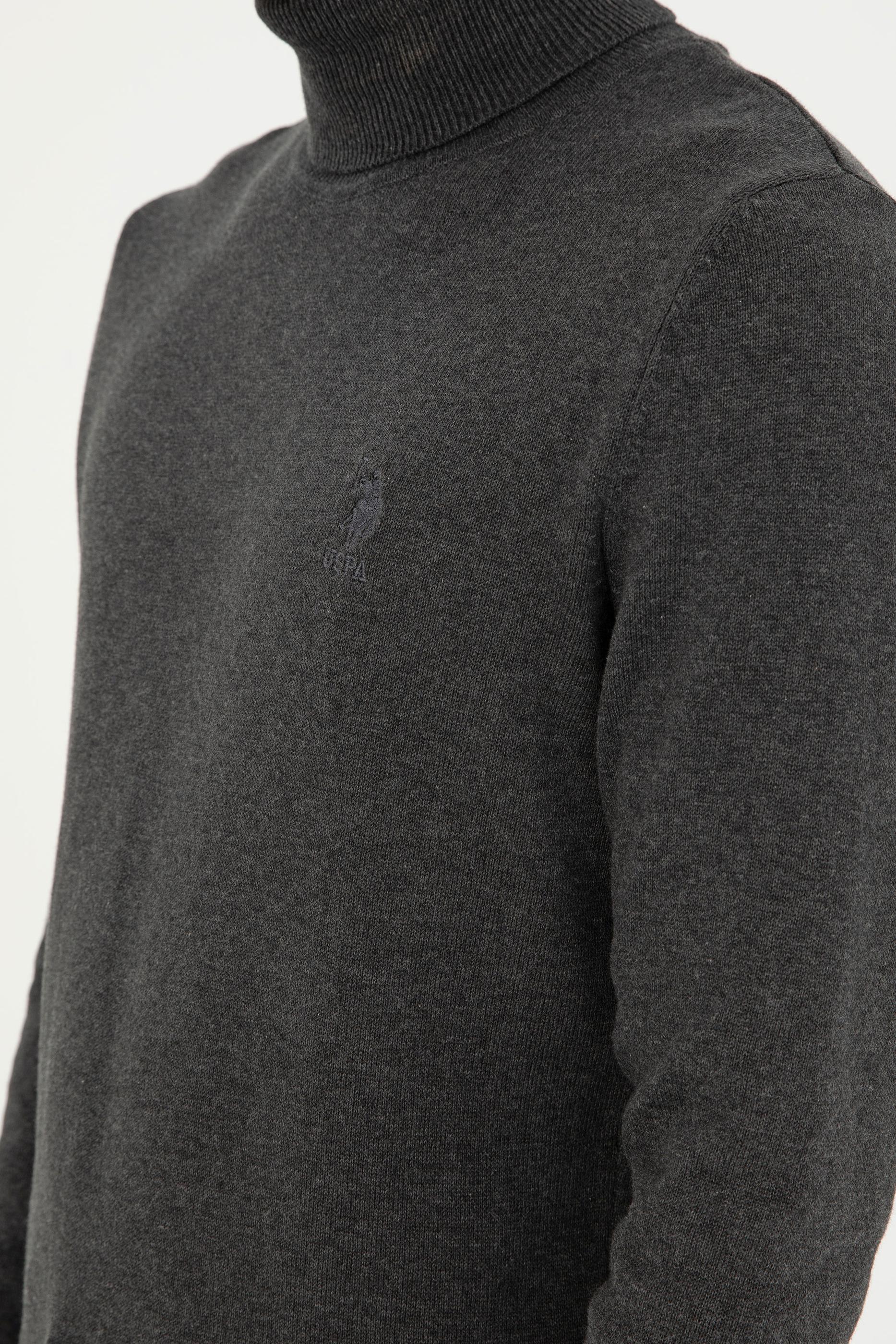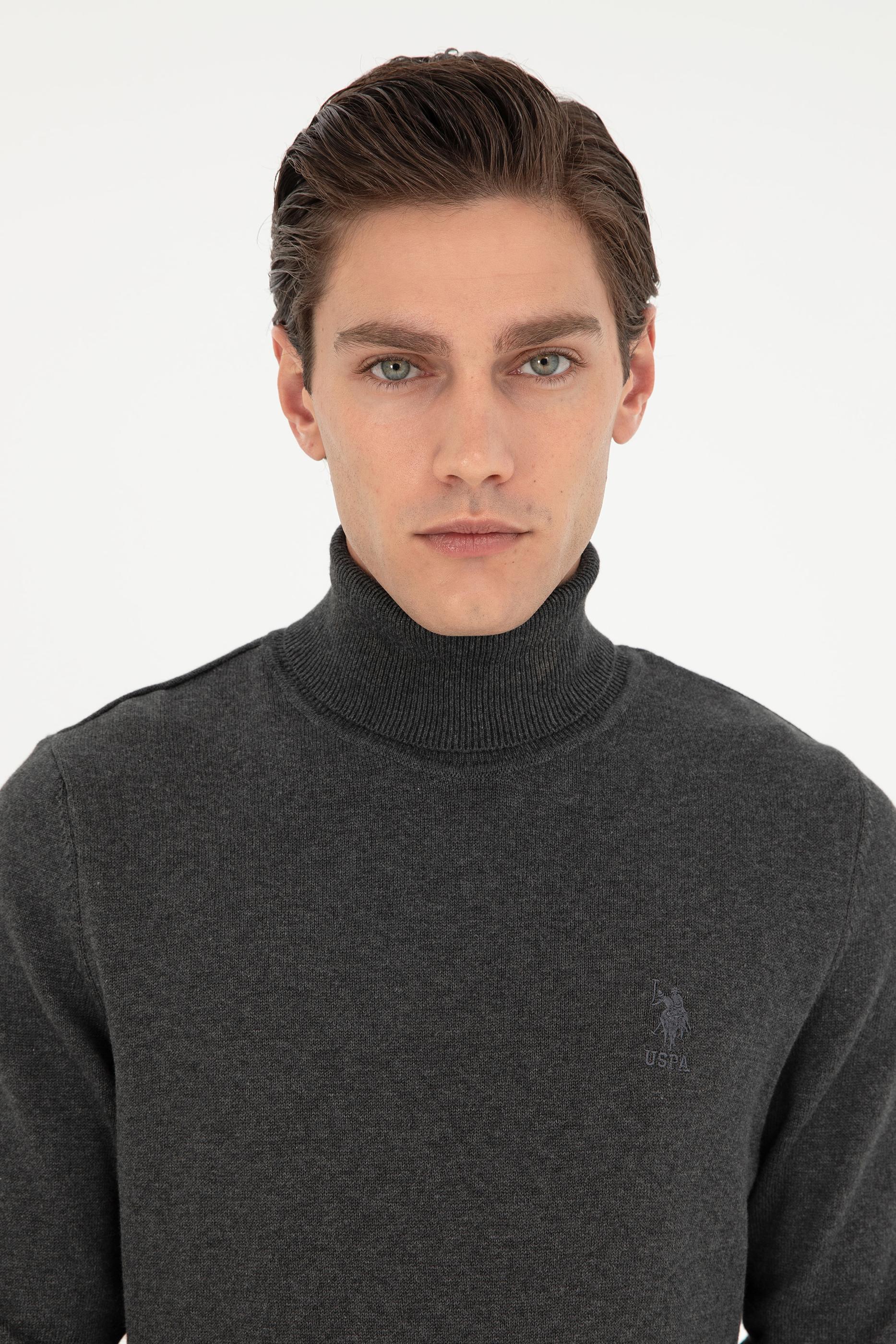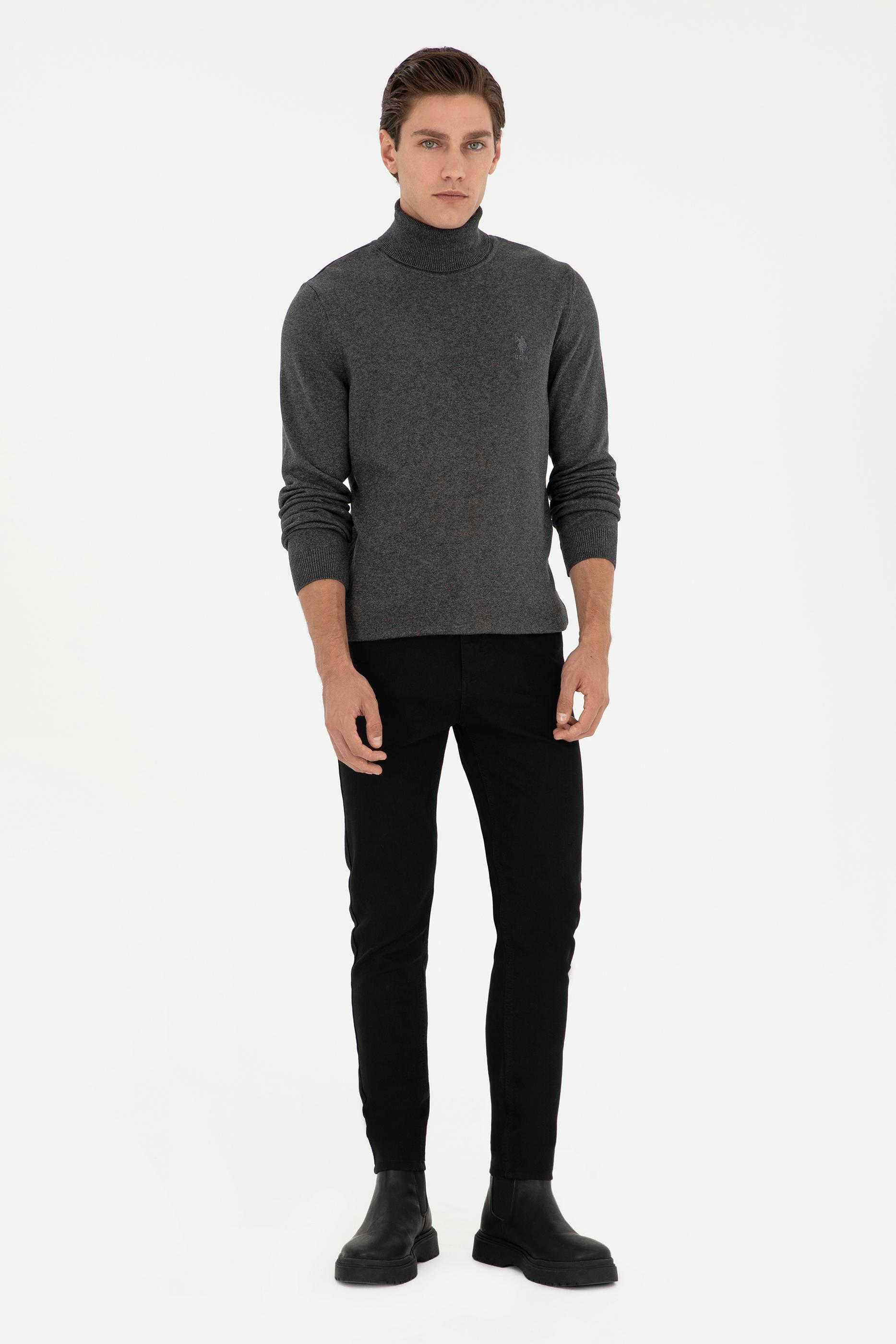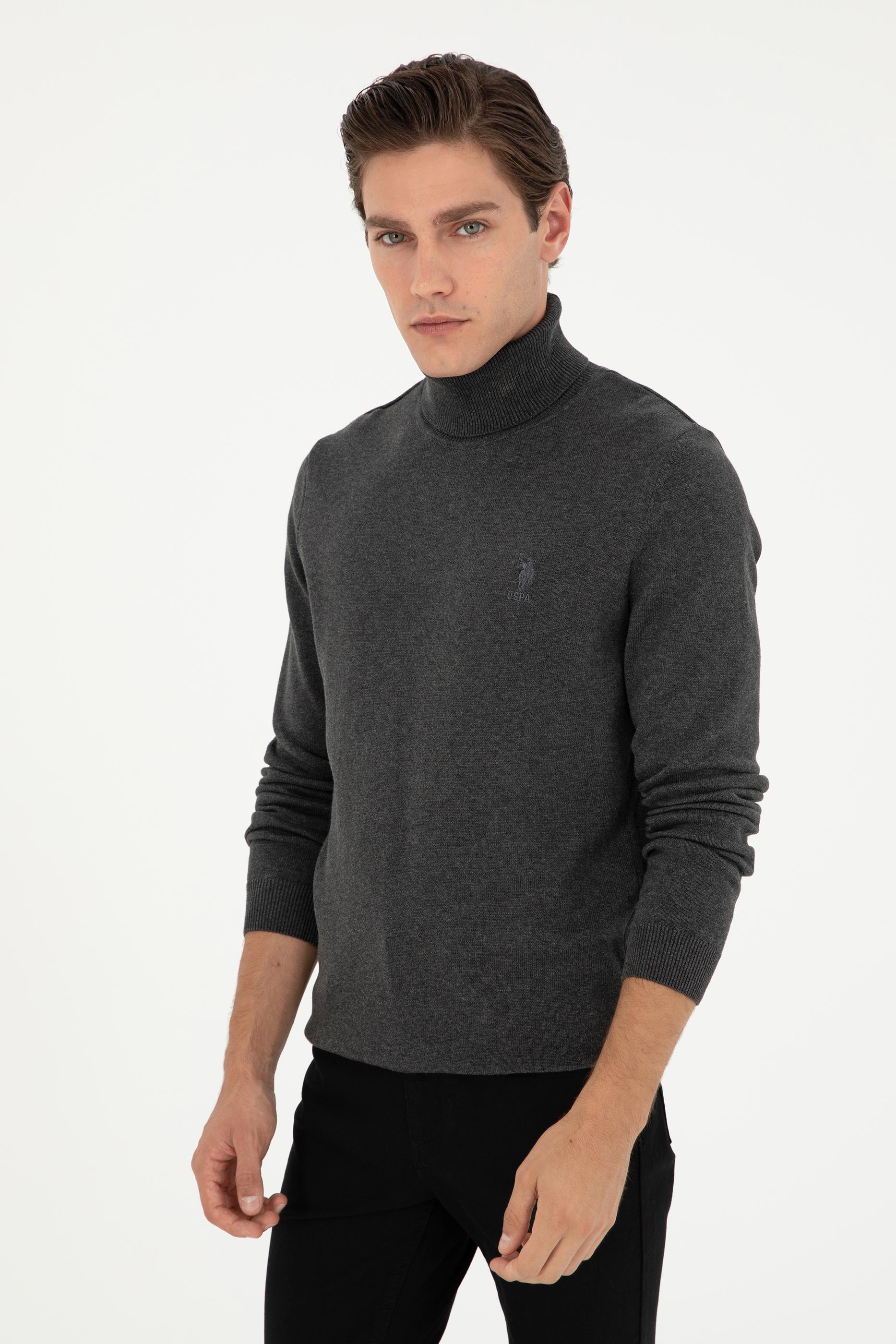 - Erkek Slim Fit Boğazlı Yaka Antrasit Melanj Basic Kazak