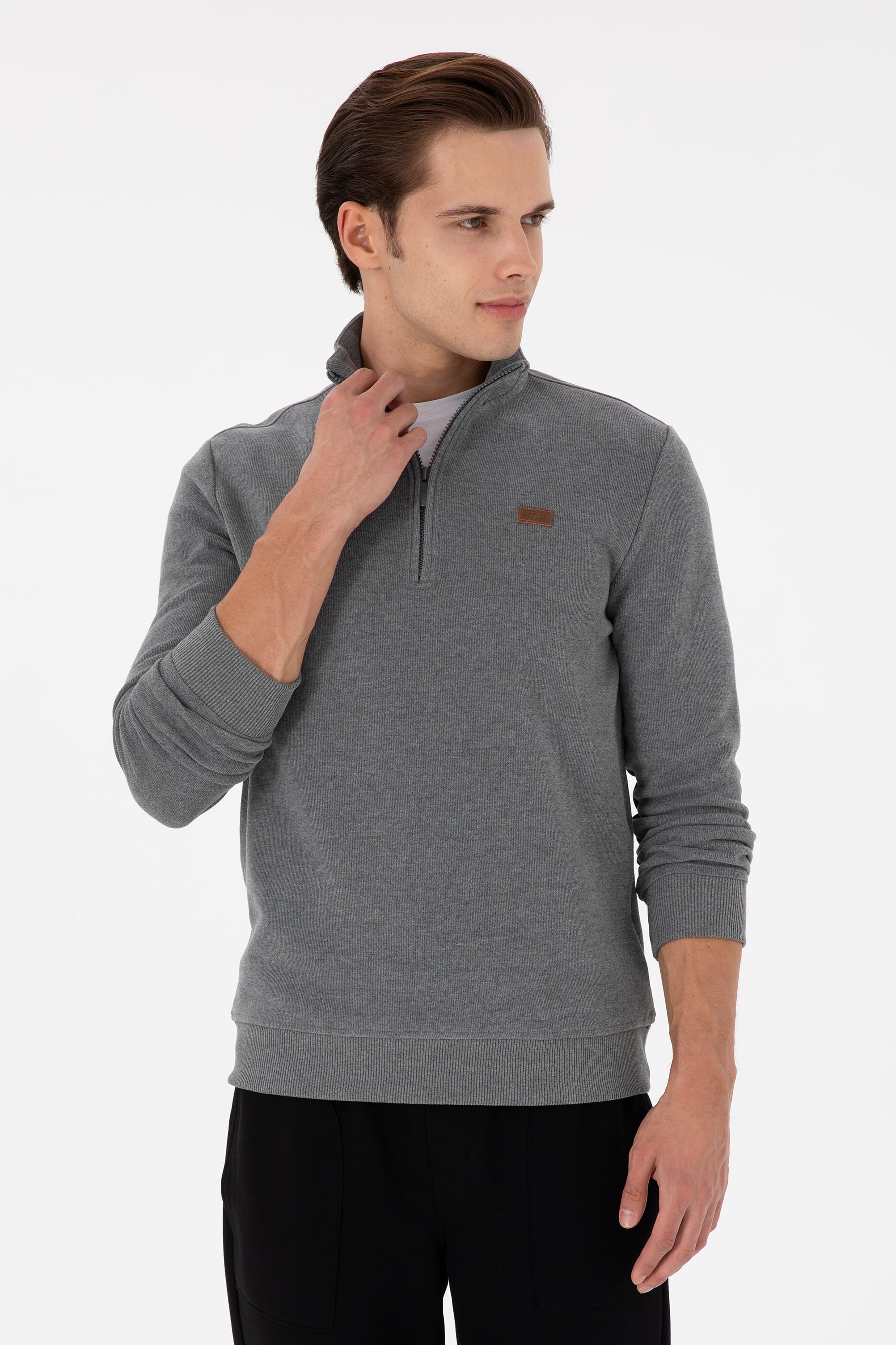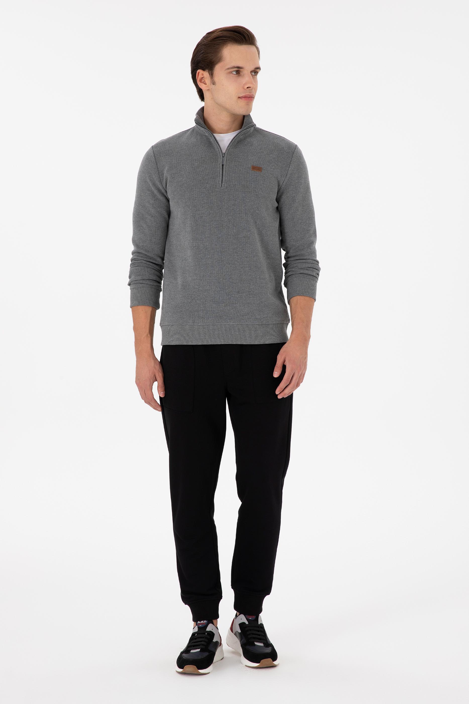 - Erkek Antrasit Melanj Basic Sweatshirt