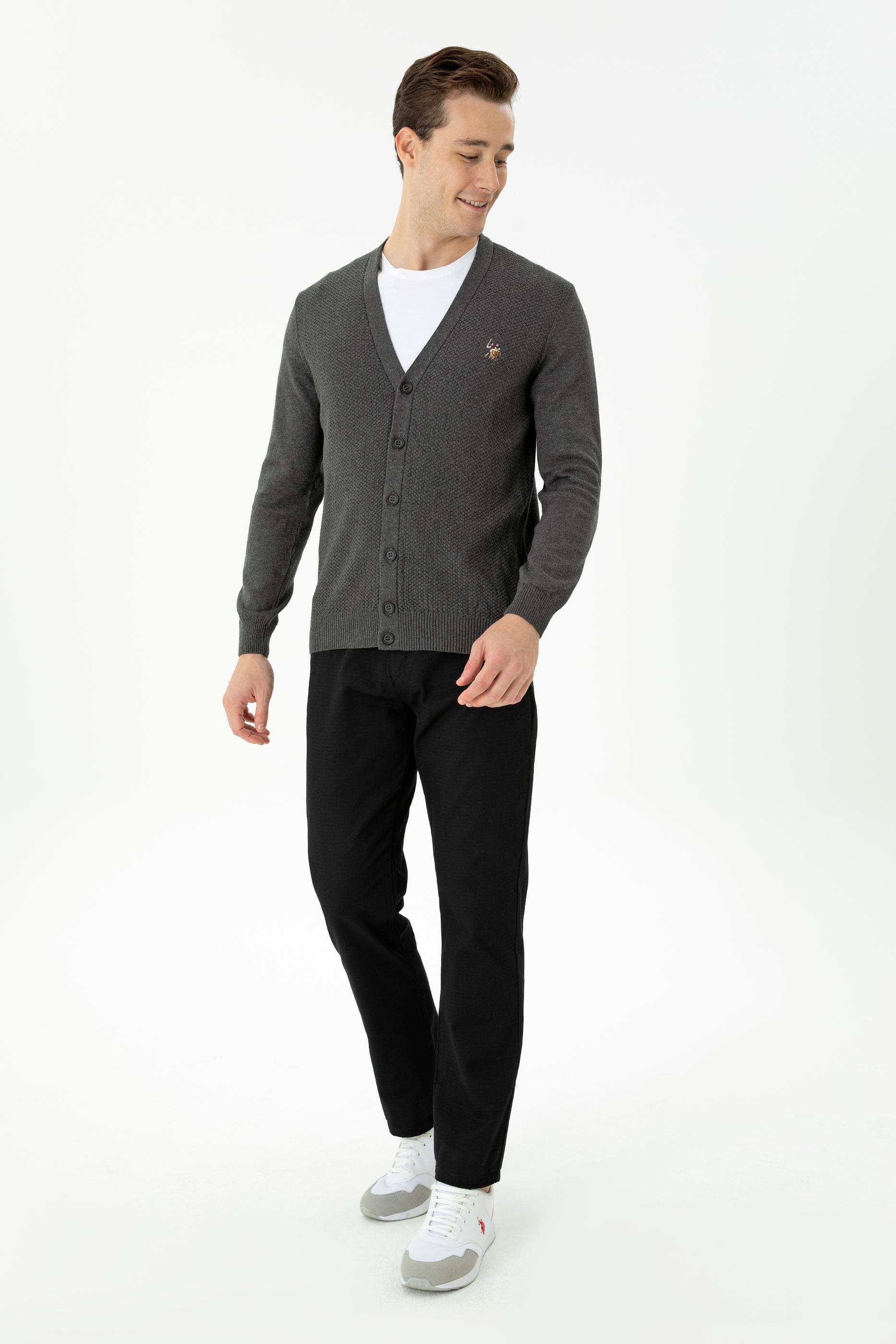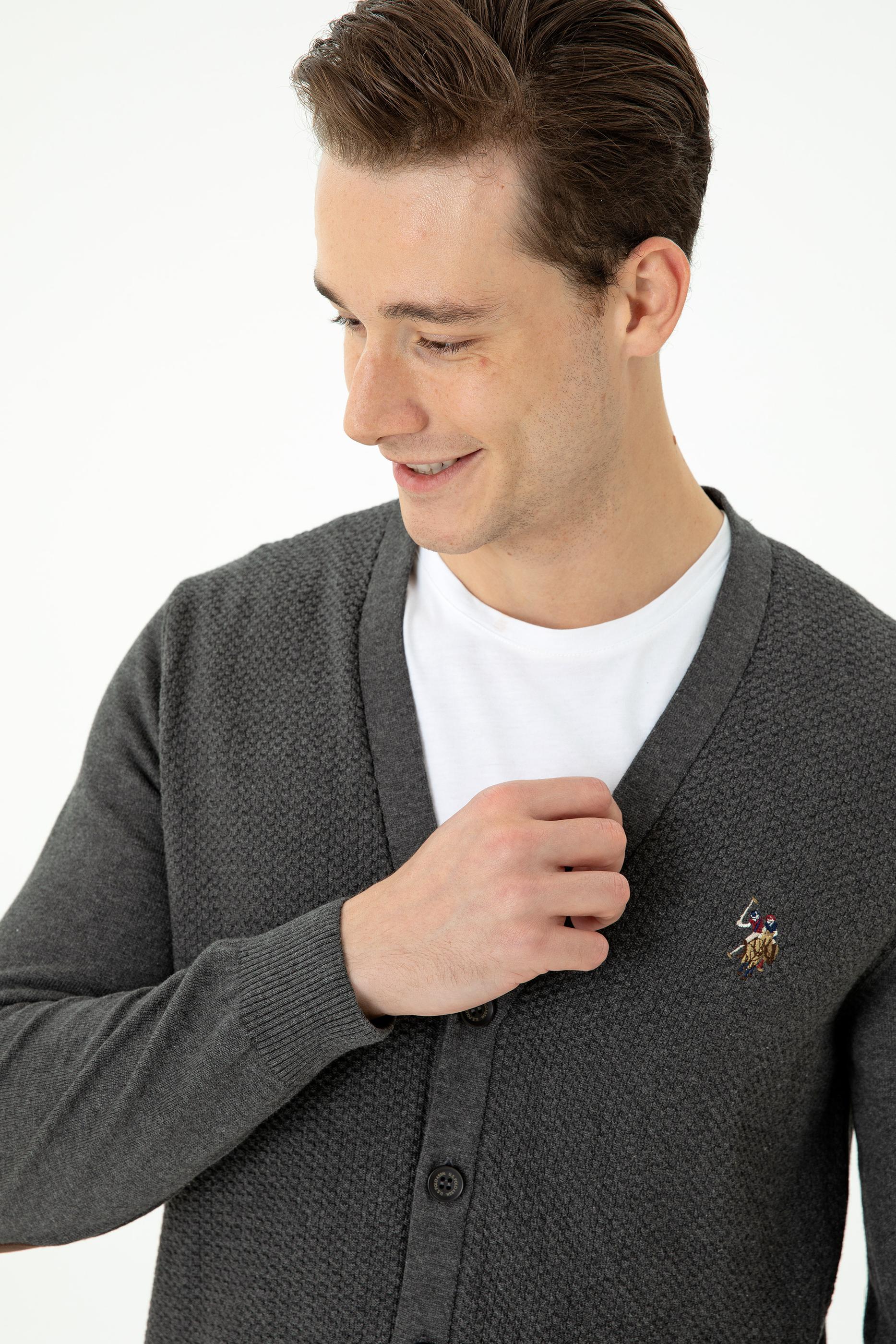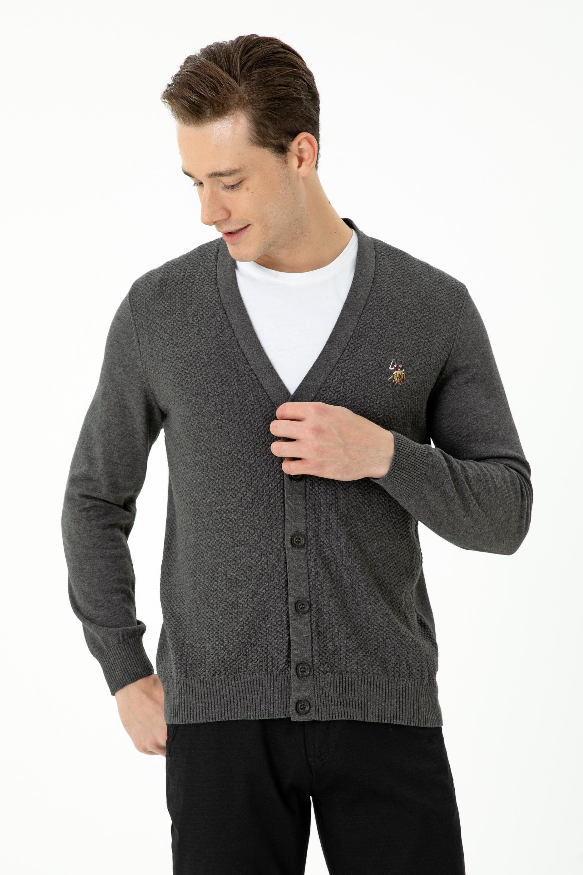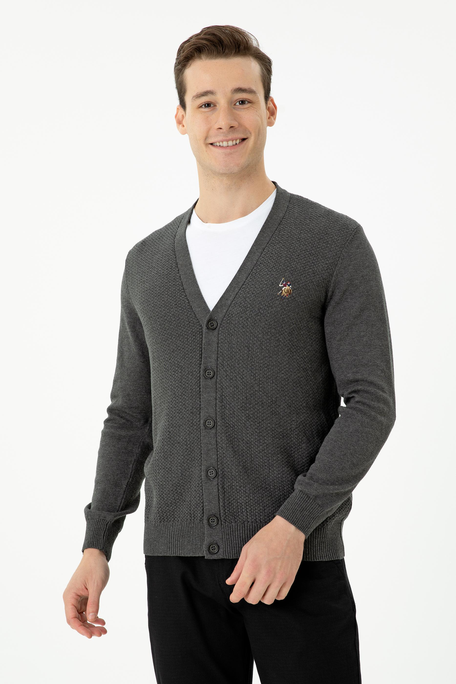 Erkek Antrasit Melanj Basic Triko Hırka