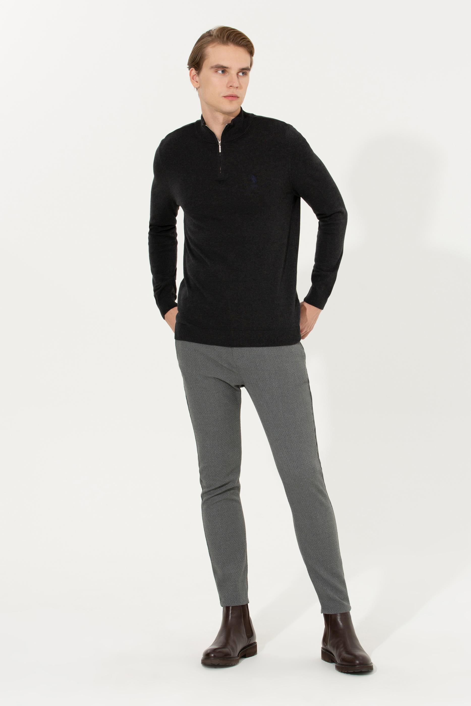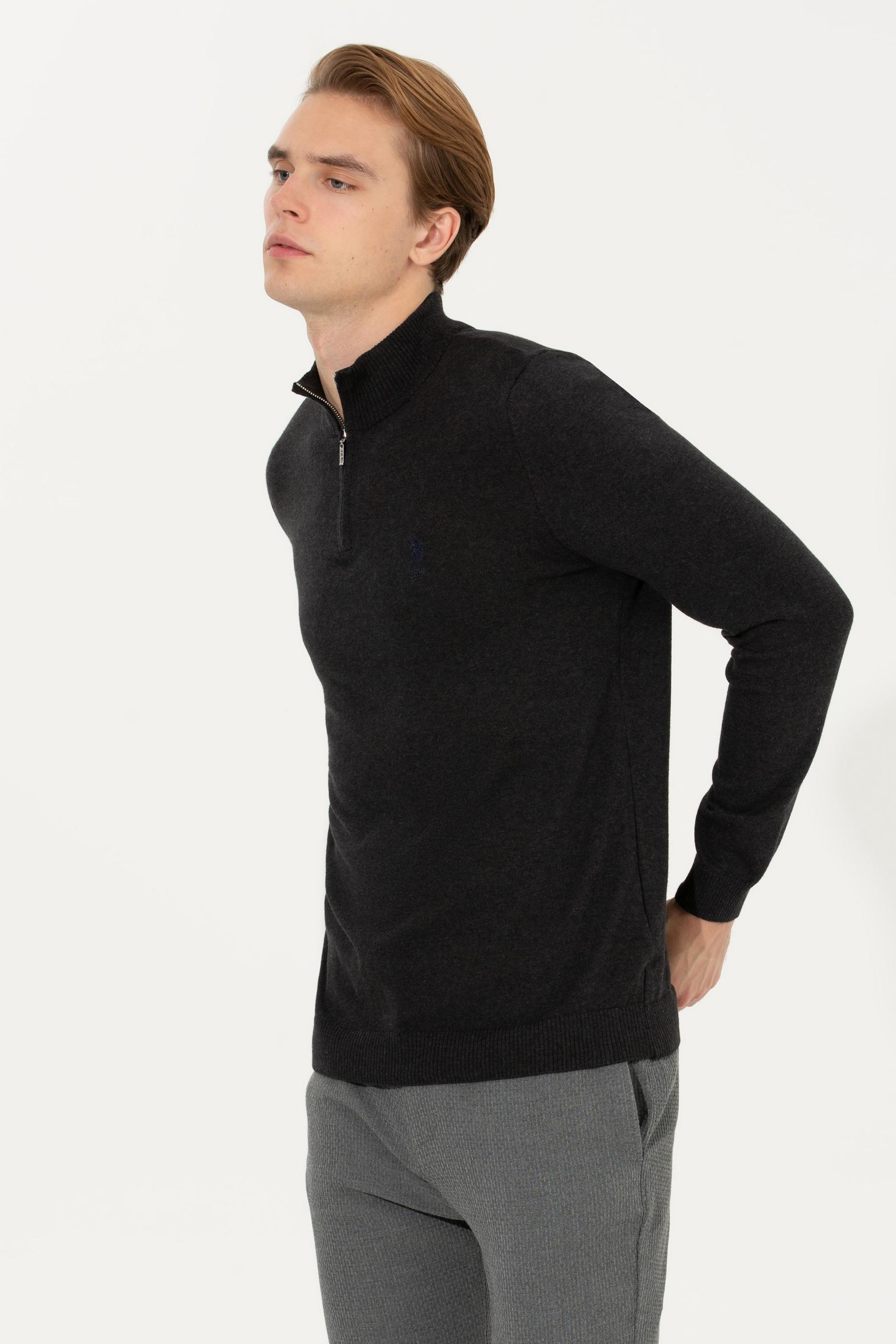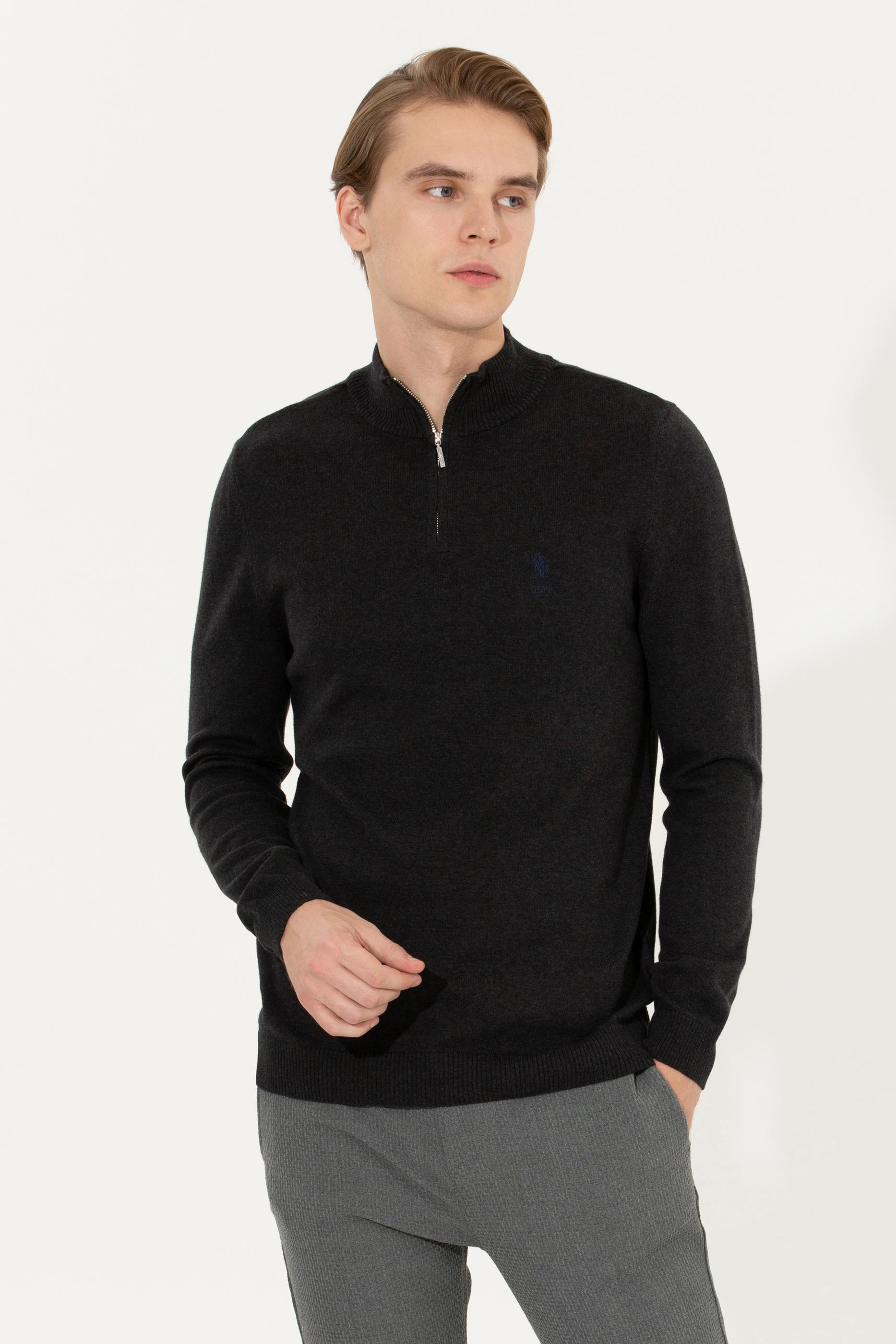 Erkek Antrasit Melanj Dik Yaka Triko Kazak