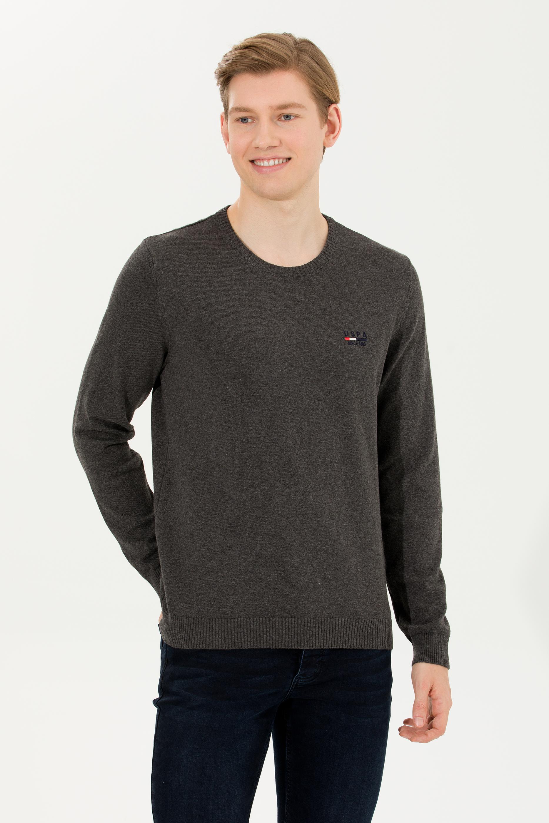 Erkek Antrasit Melanj Bisiklet Yaka Triko Kazak