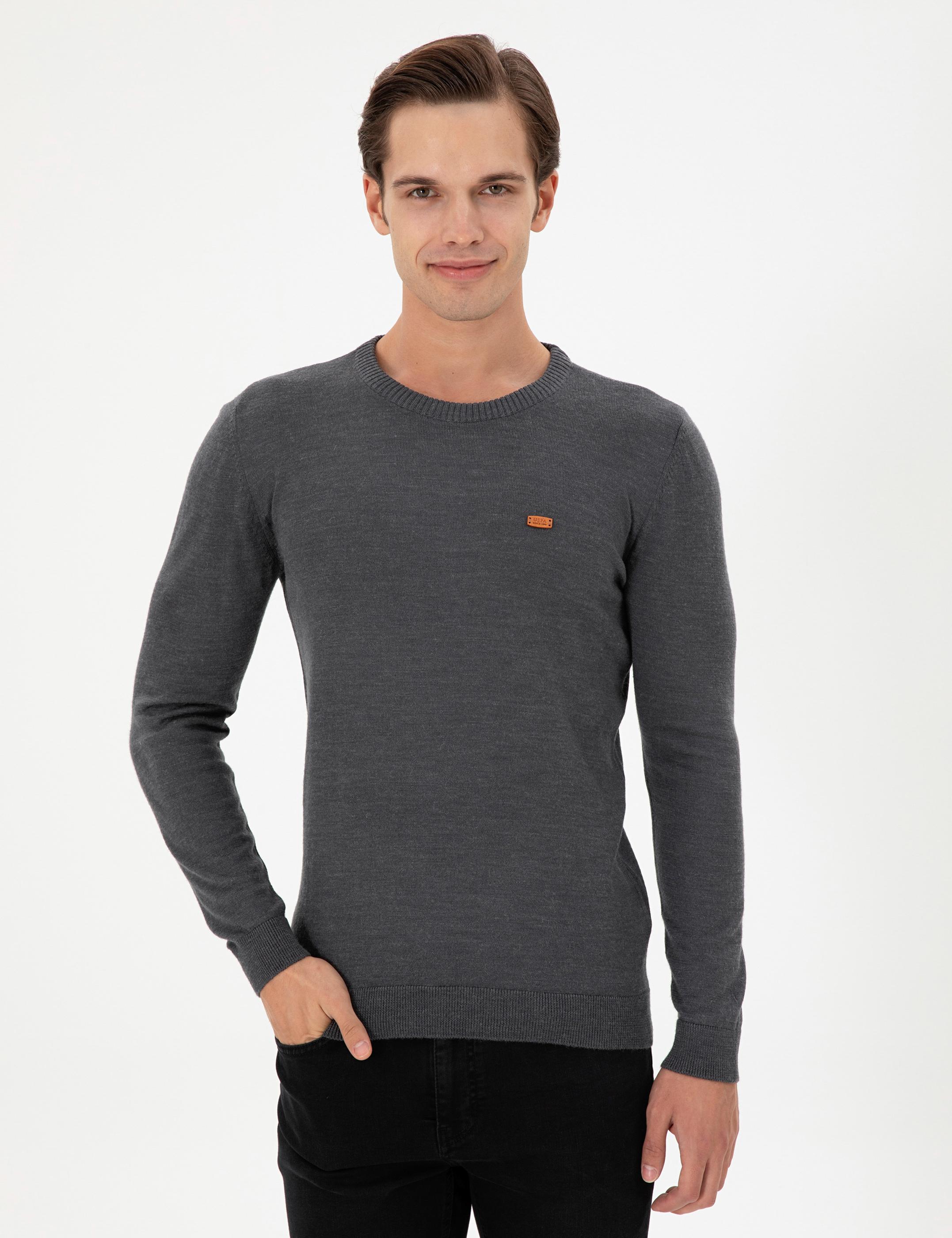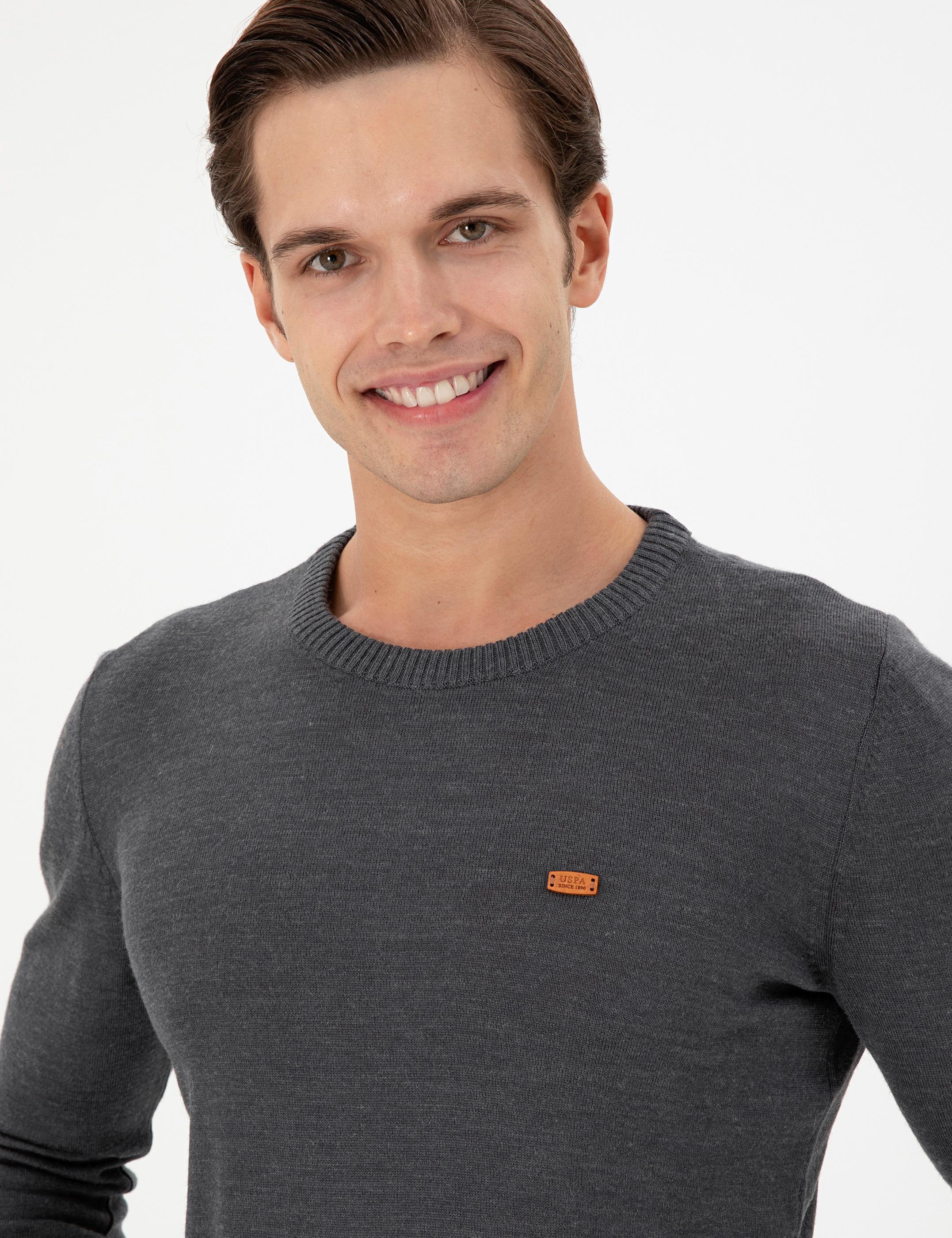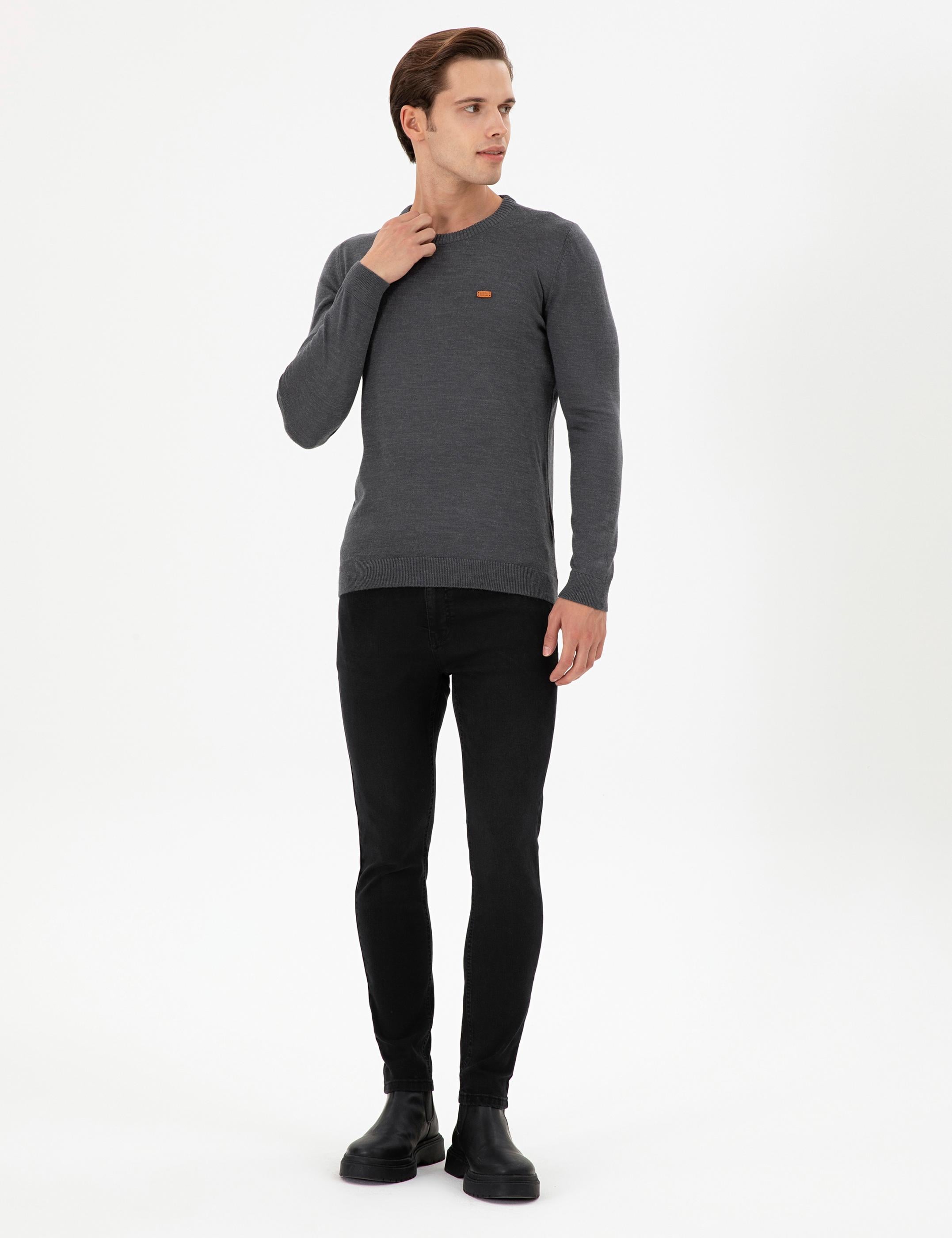 - Erkek Slim Fit Bisiklet Yaka Antrasit Melanj Kazak