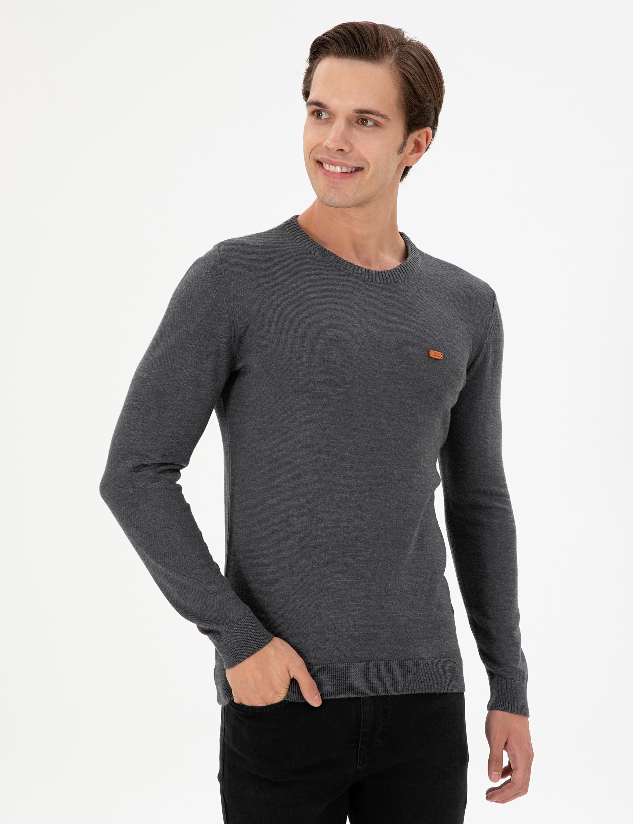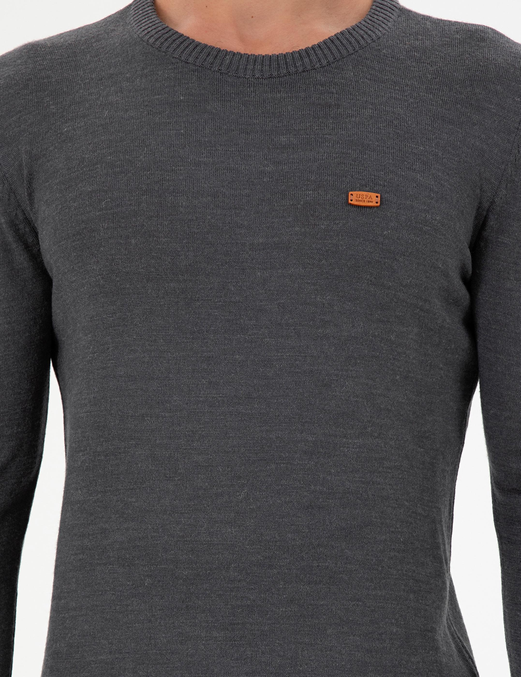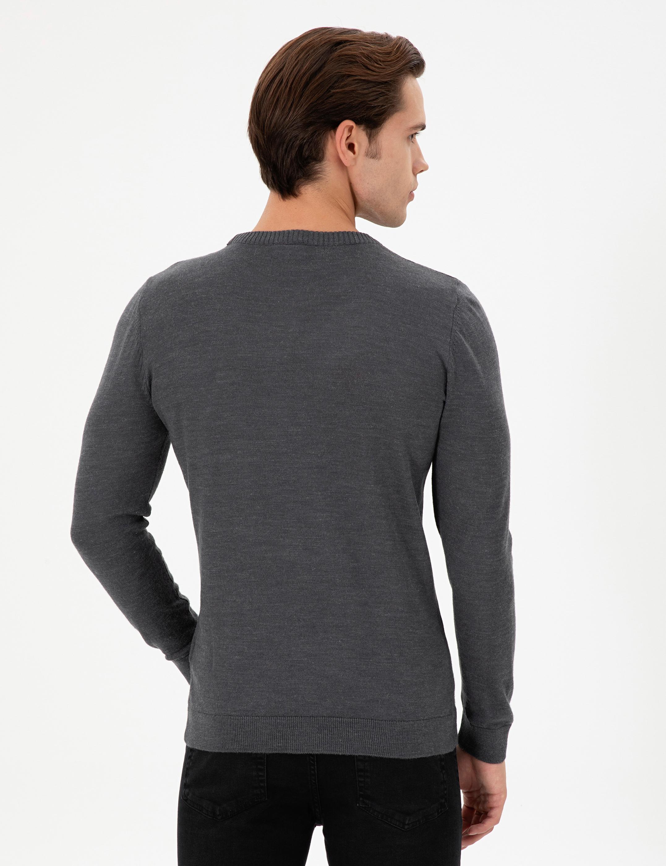 - Erkek Slim Fit Bisiklet Yaka Antrasit Melanj Kazak