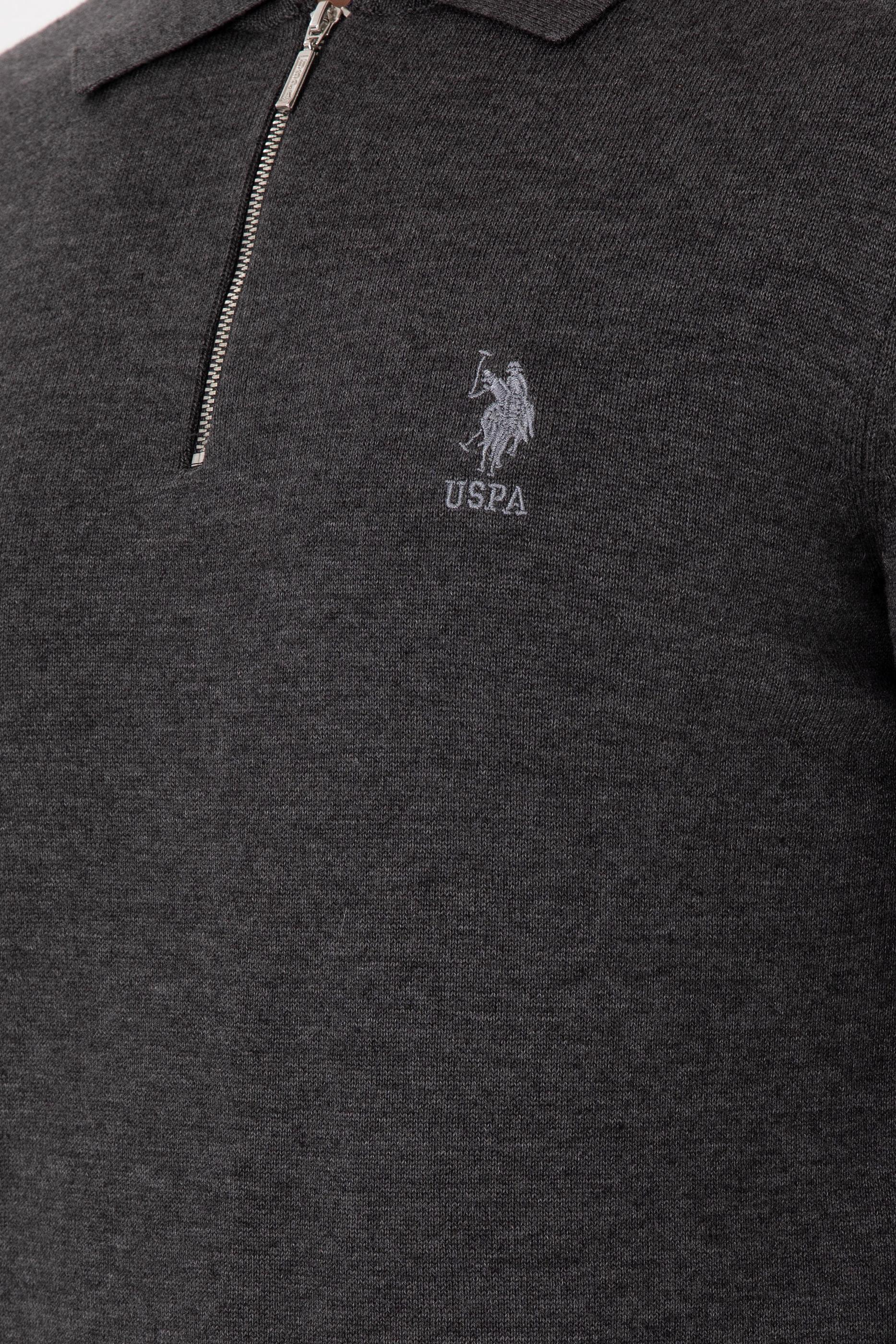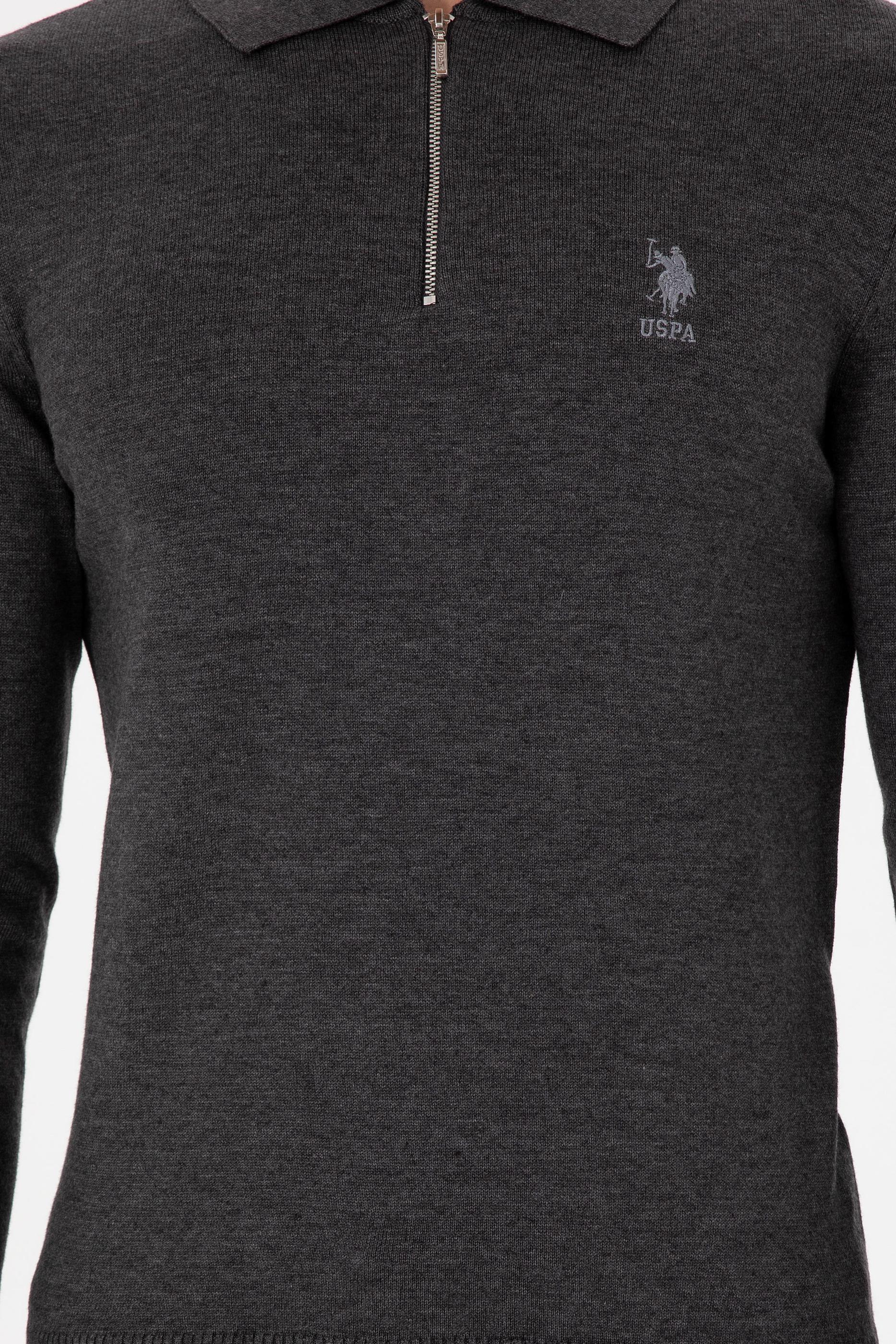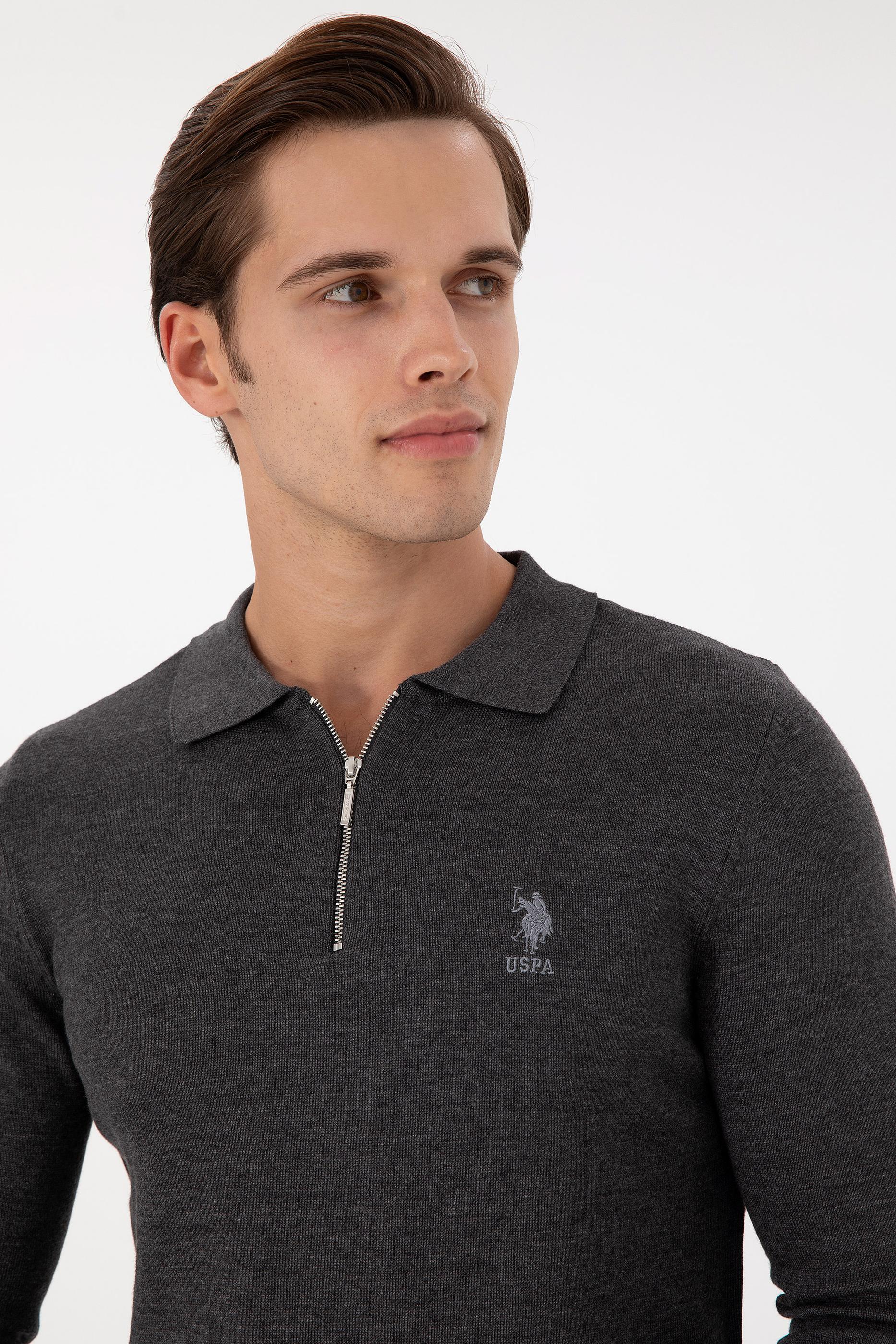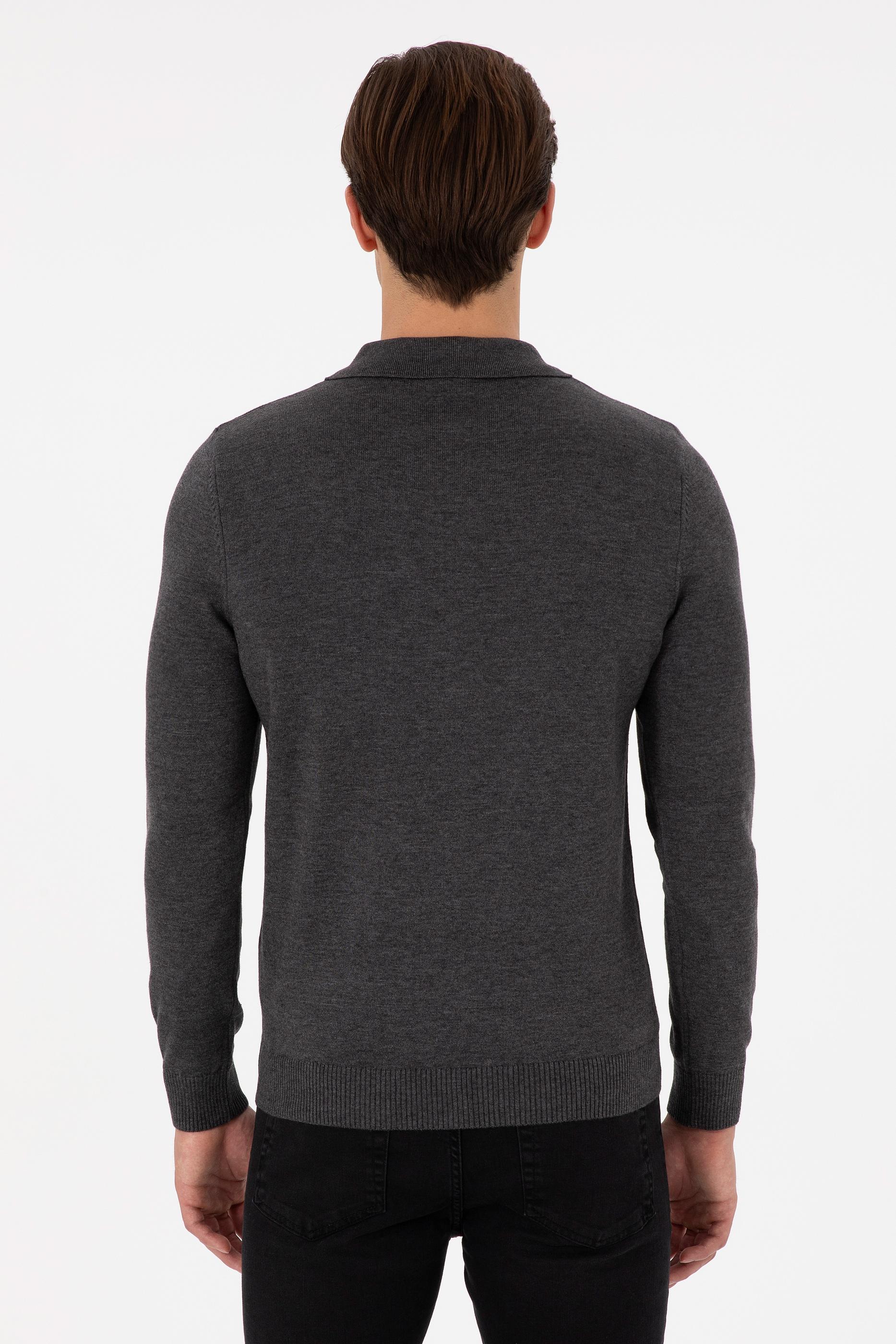 - Erkek Slim Fit Yarım Fermuarlı Antrasit Melanj Basic Kazak