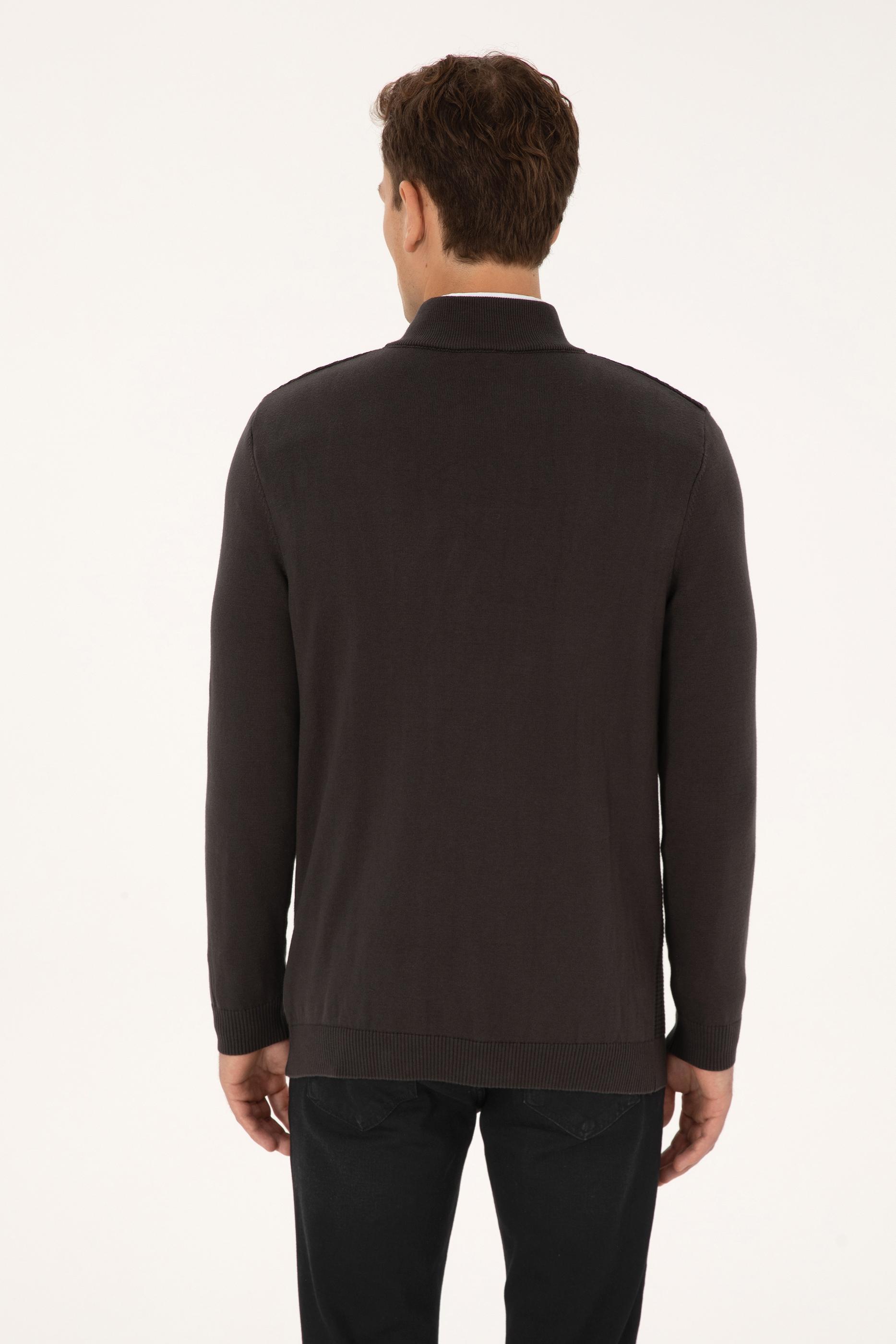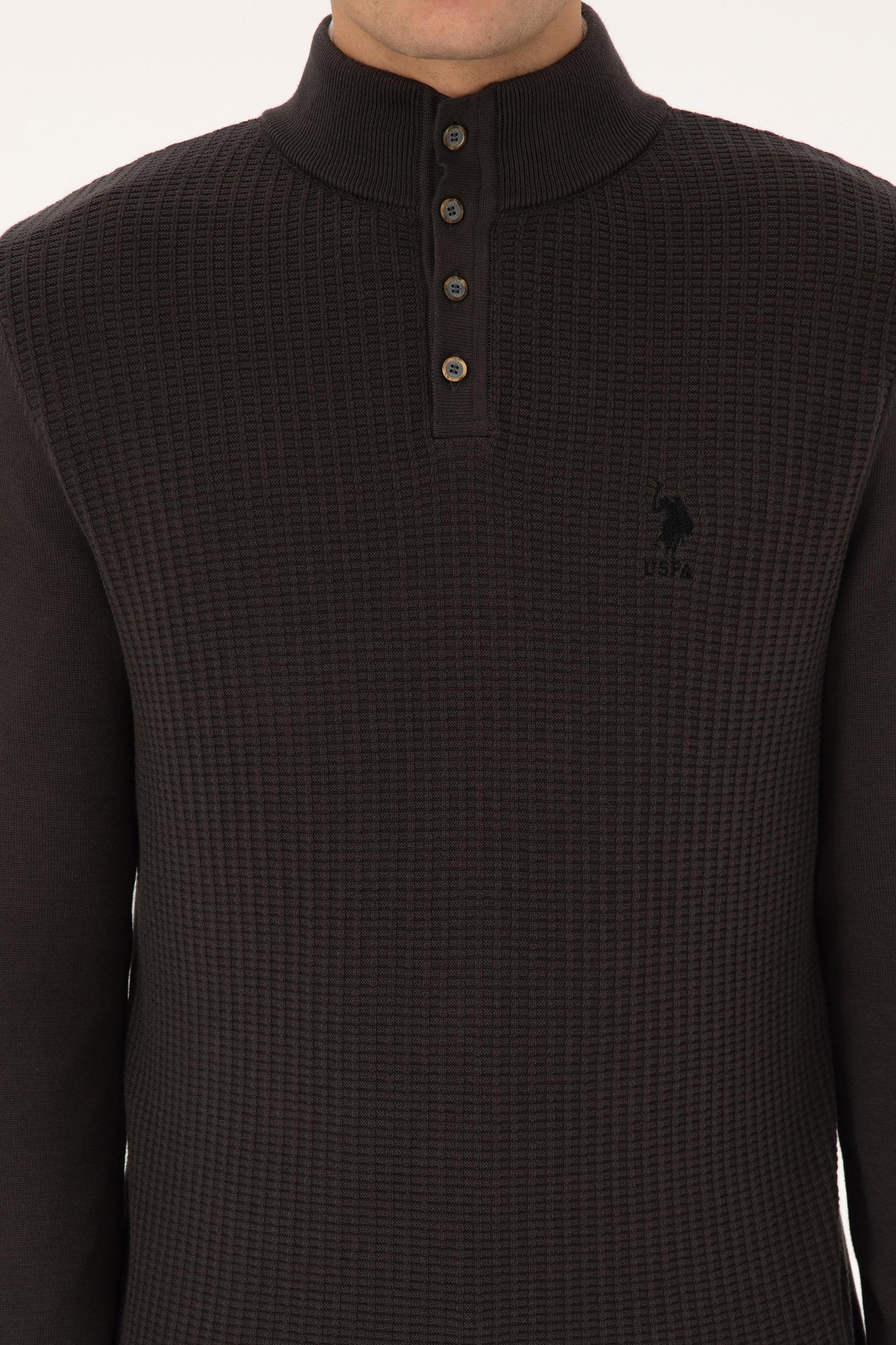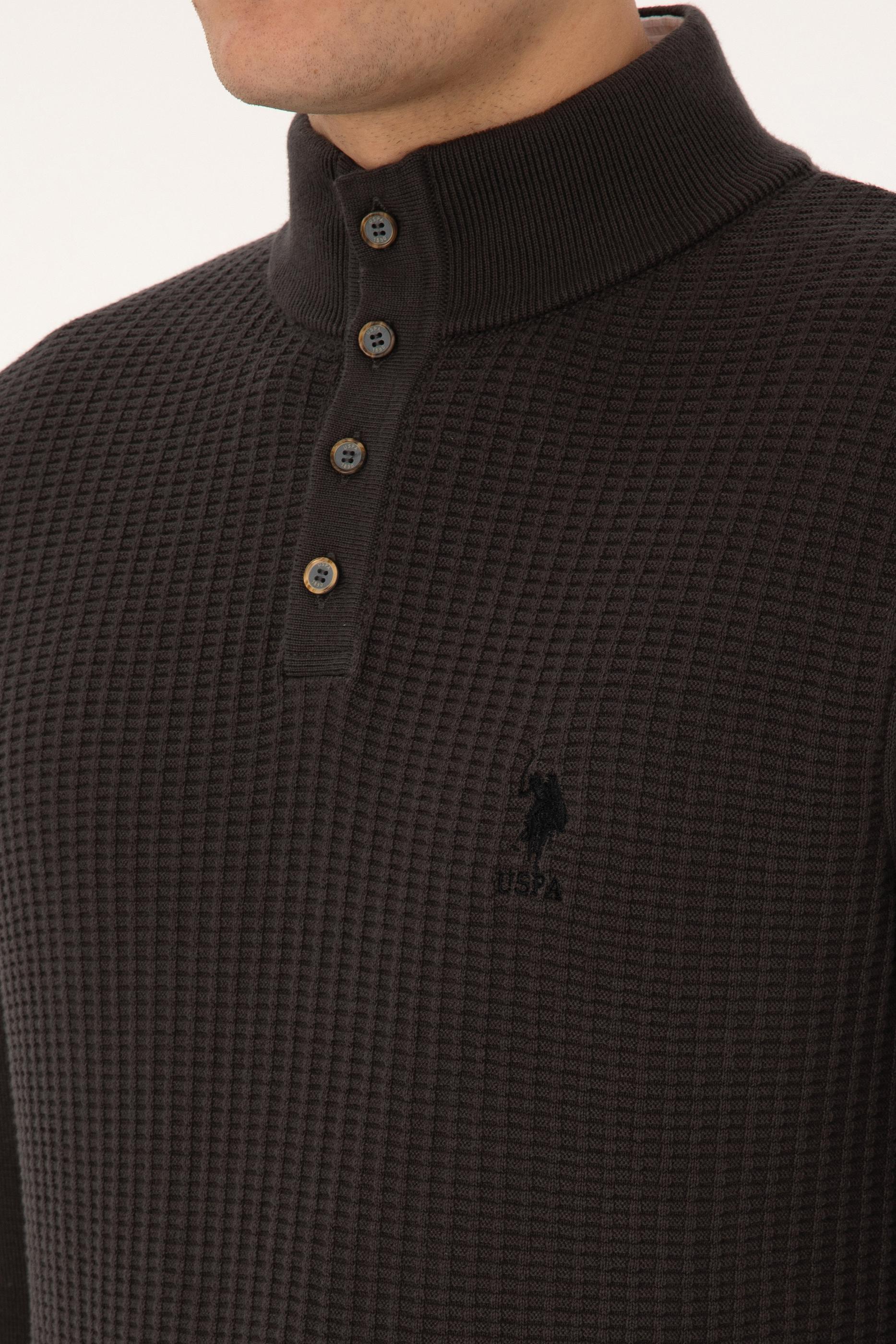 - Erkek Regular Fit Düğmeli Yaka Antrasit Melanj Kazak