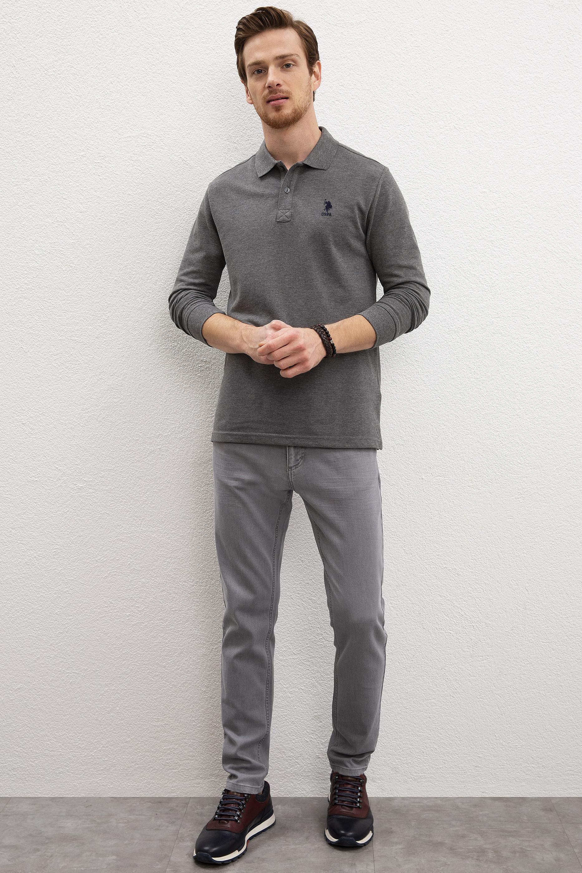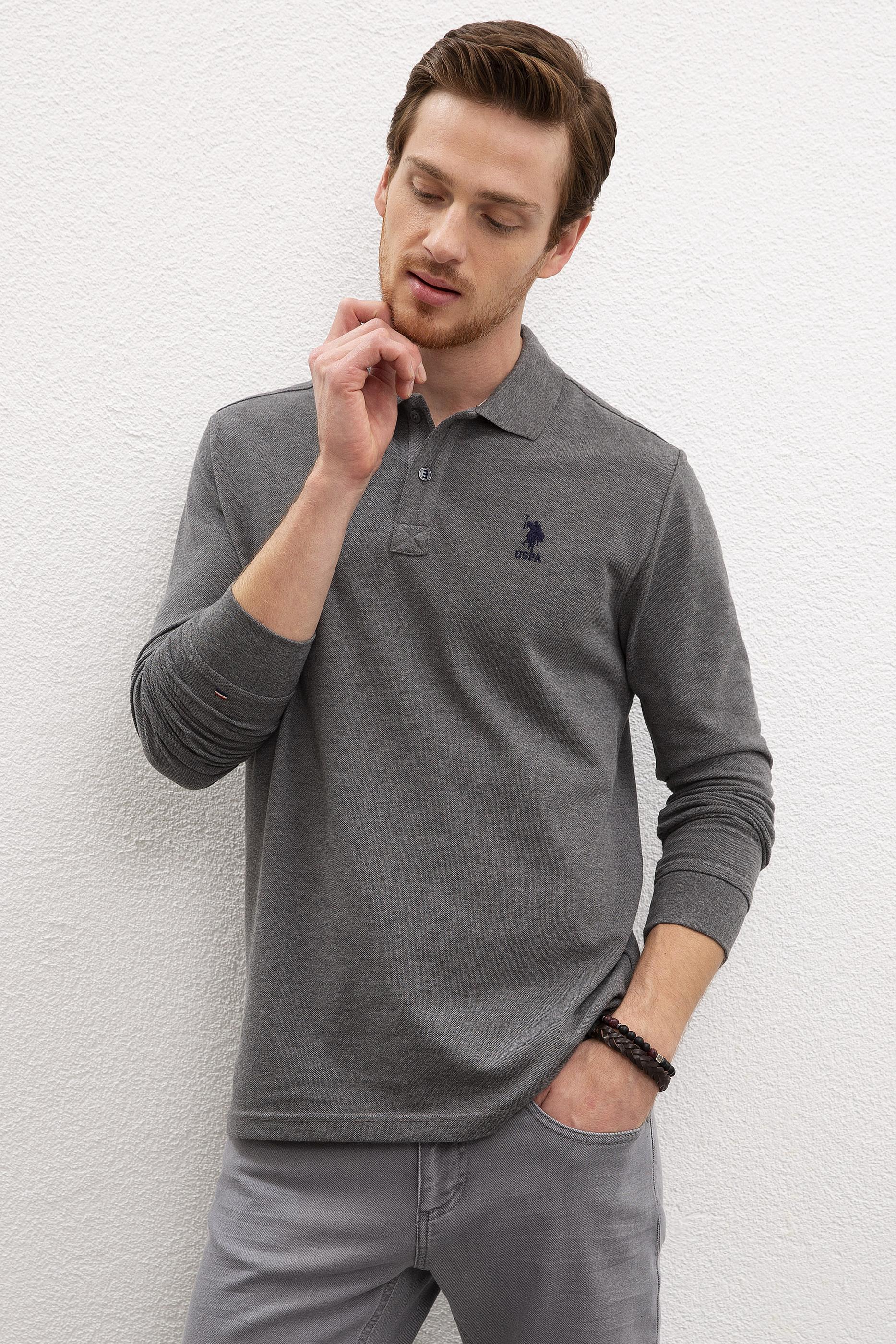 Erkek Antrasit Melanj Polo Yaka Sweatshirt Basic