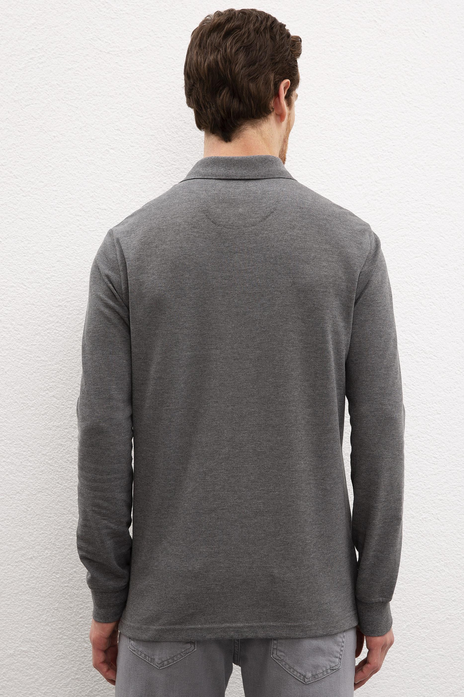 Erkek Antrasit Melanj Polo Yaka Sweatshirt Basic - 50209212032