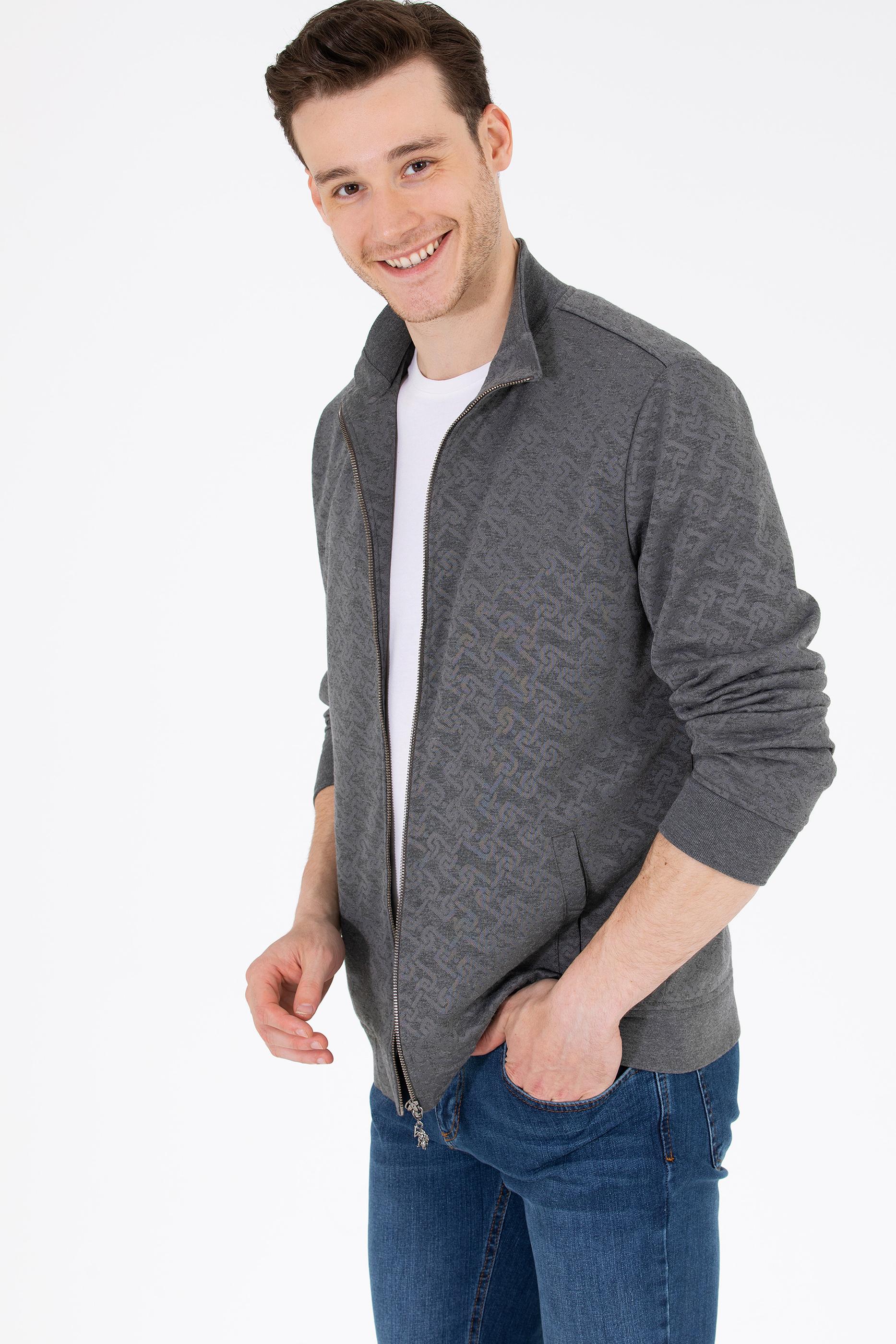 - Erkek Antrasit Dik Yaka Örme Hırka