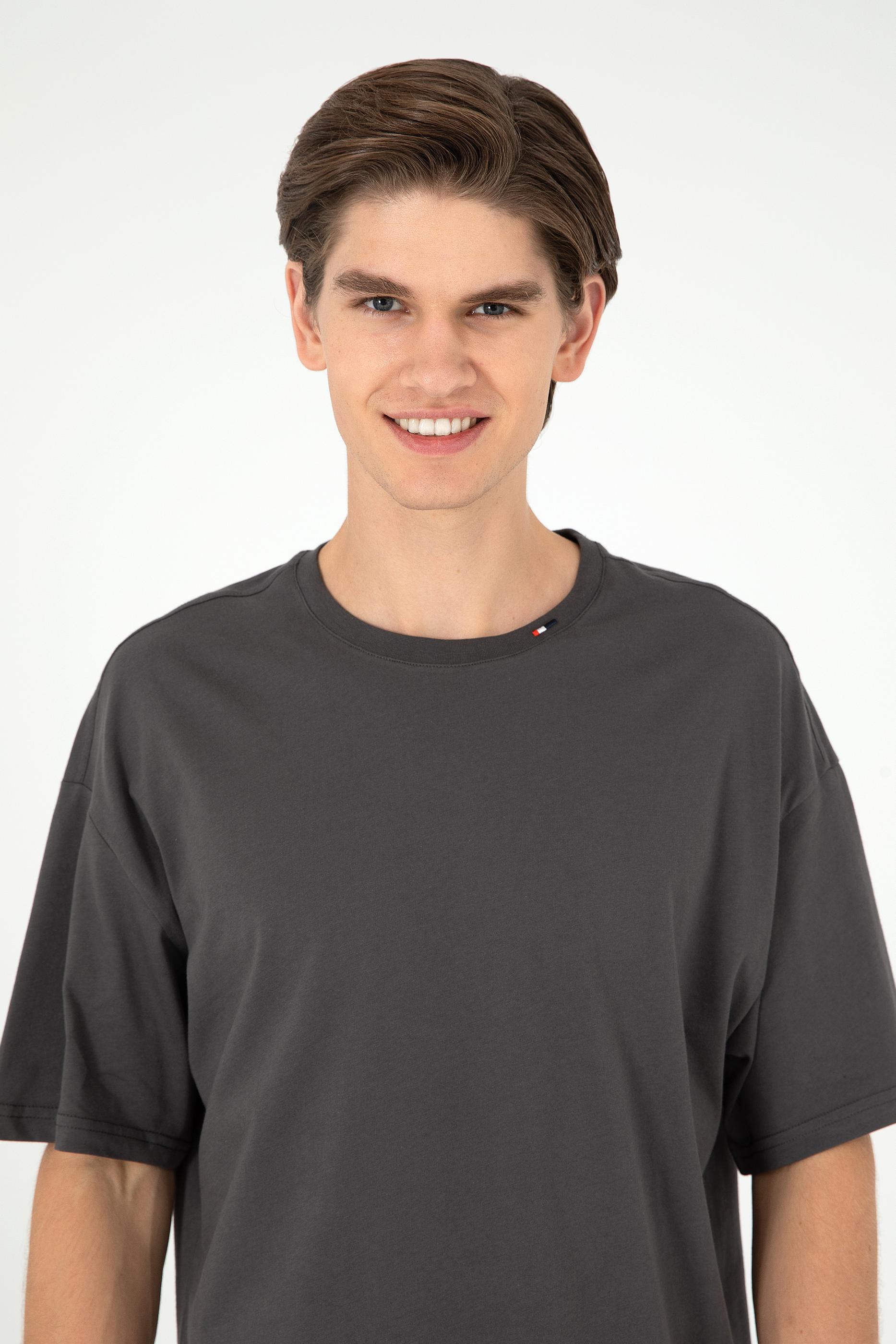 Erkek Oversize Fit Bisiklet Yaka Antrasit Tişört
