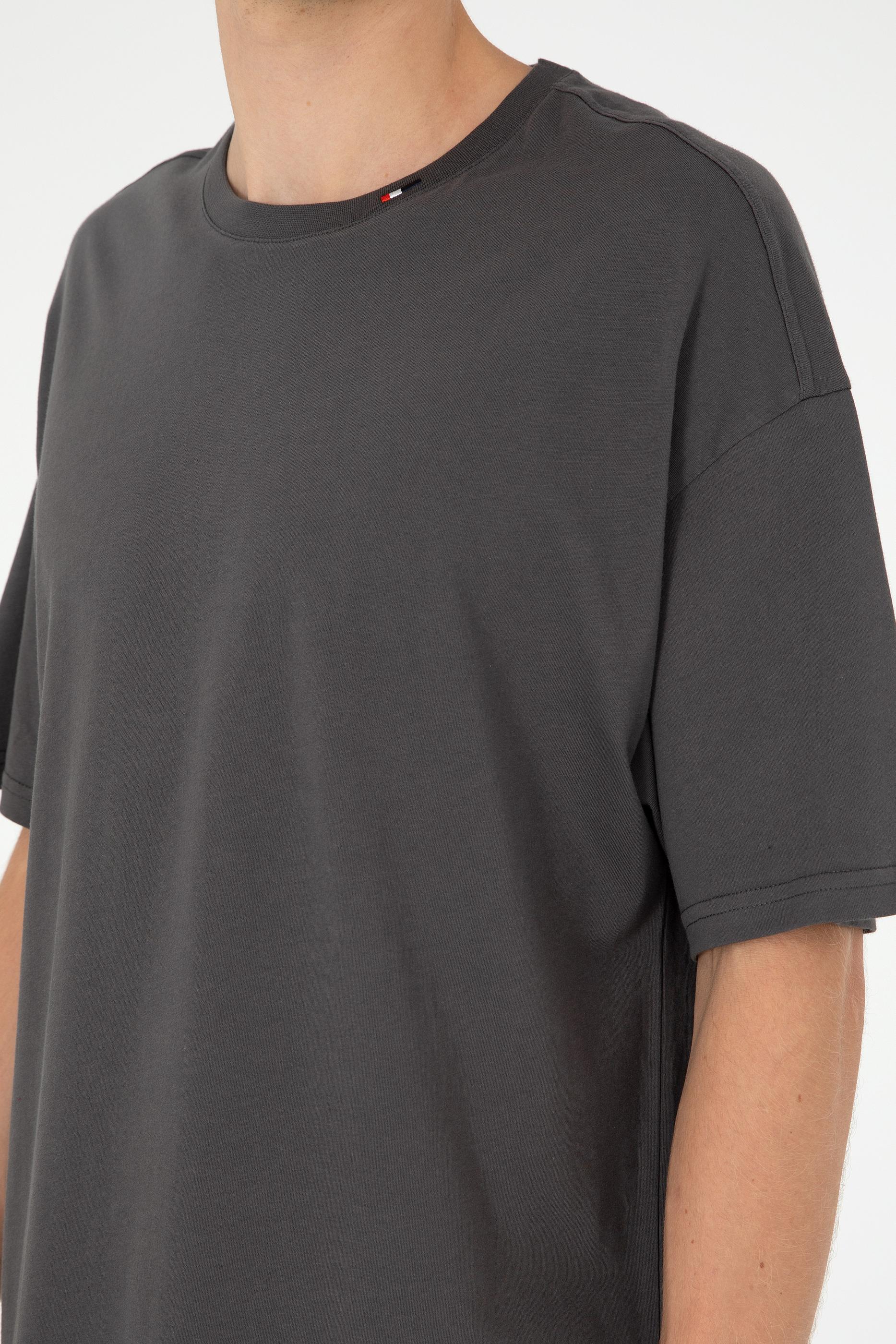 - Erkek Oversize Fit Bisiklet Yaka Antrasit Tişört