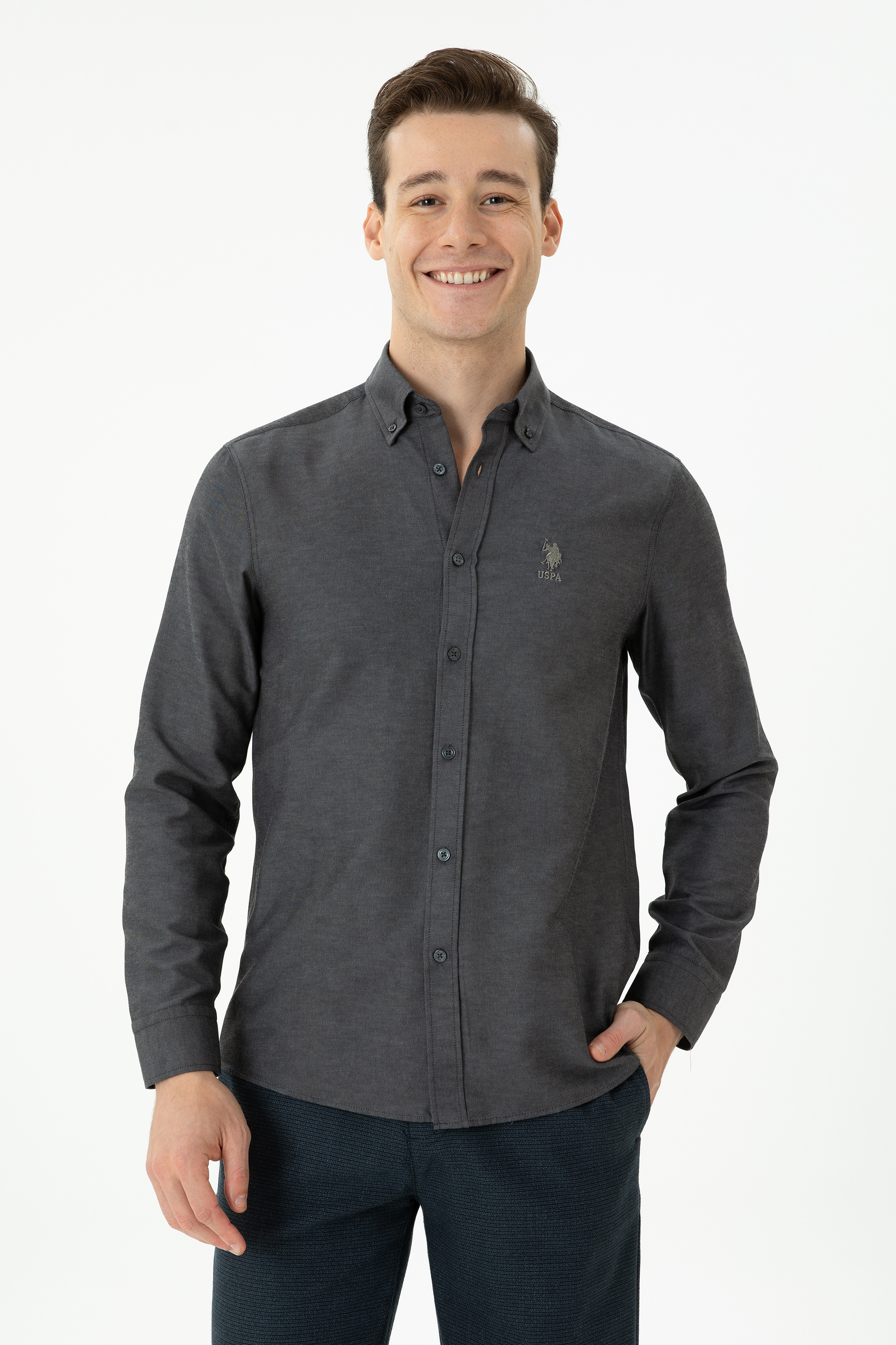- Erkek Antrasit Uzun Kollu Basic Gömlek