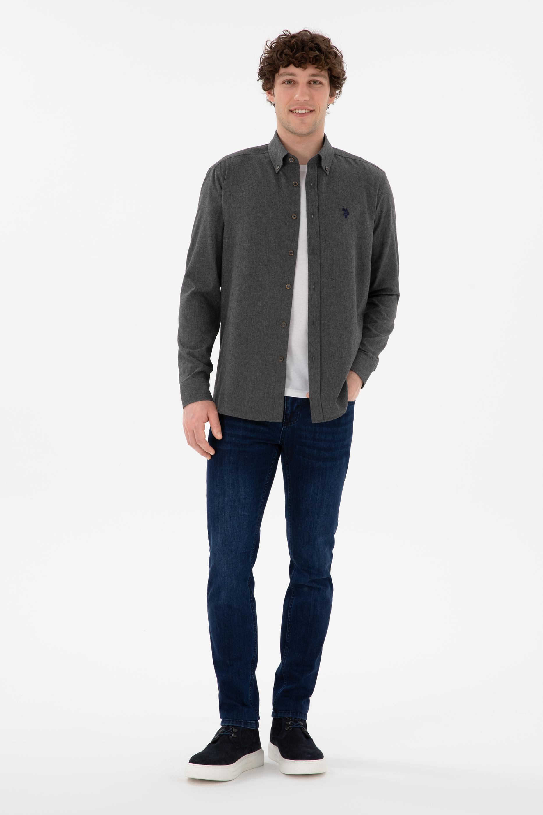 Erkek Antrasit Uzun Kollu Basic Gömlek