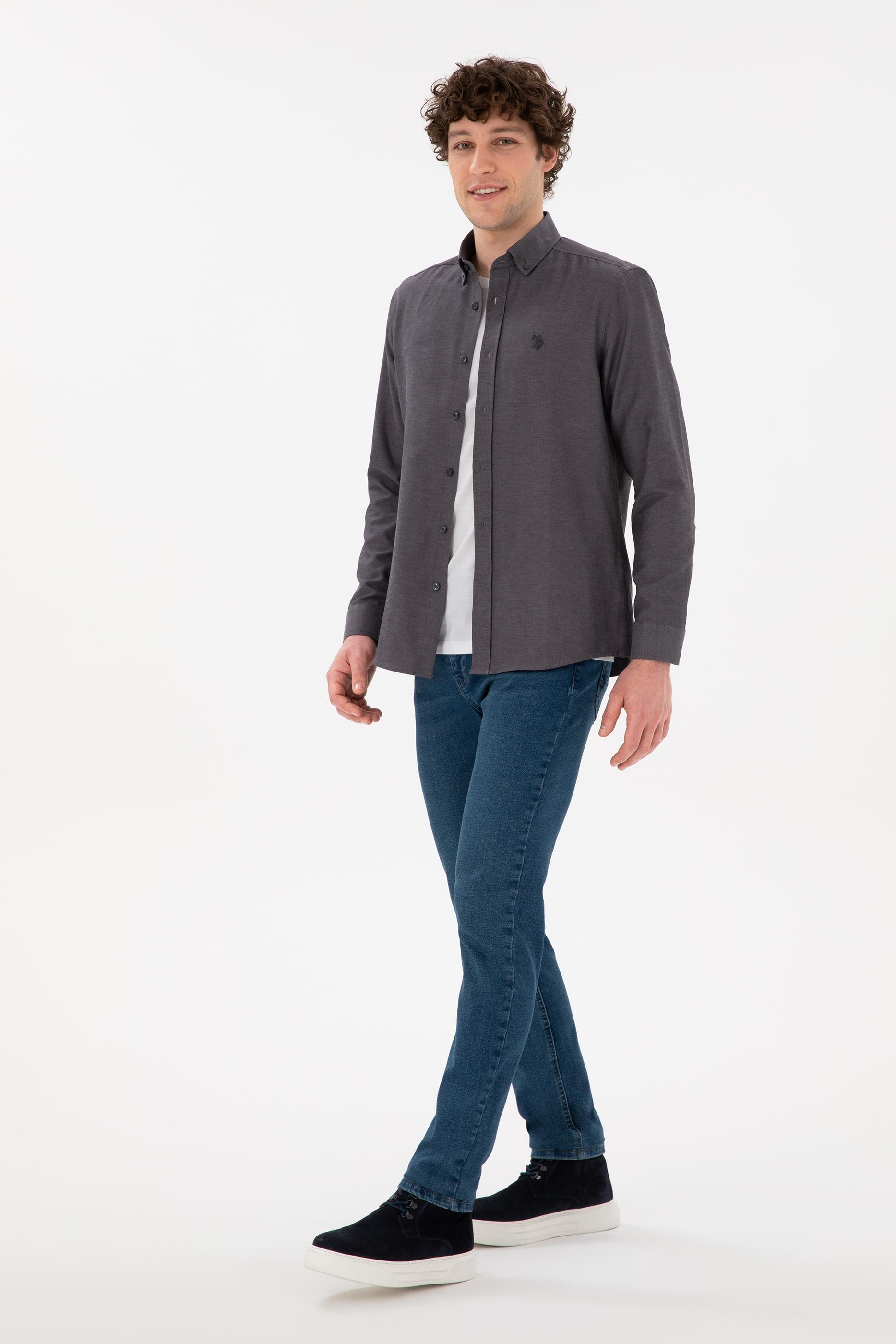 Erkek Antrasit Uzun Kollu Basic Gömlek