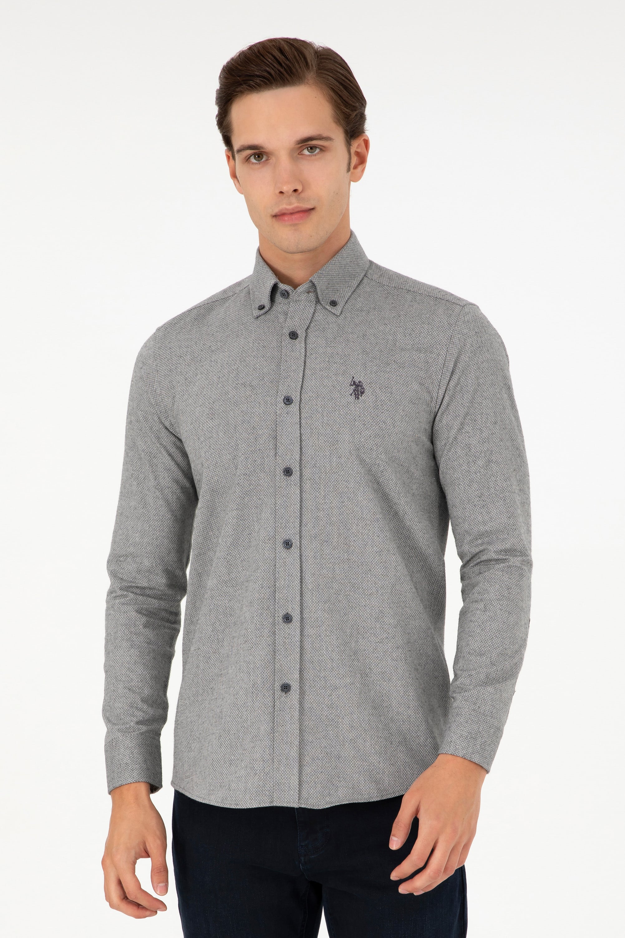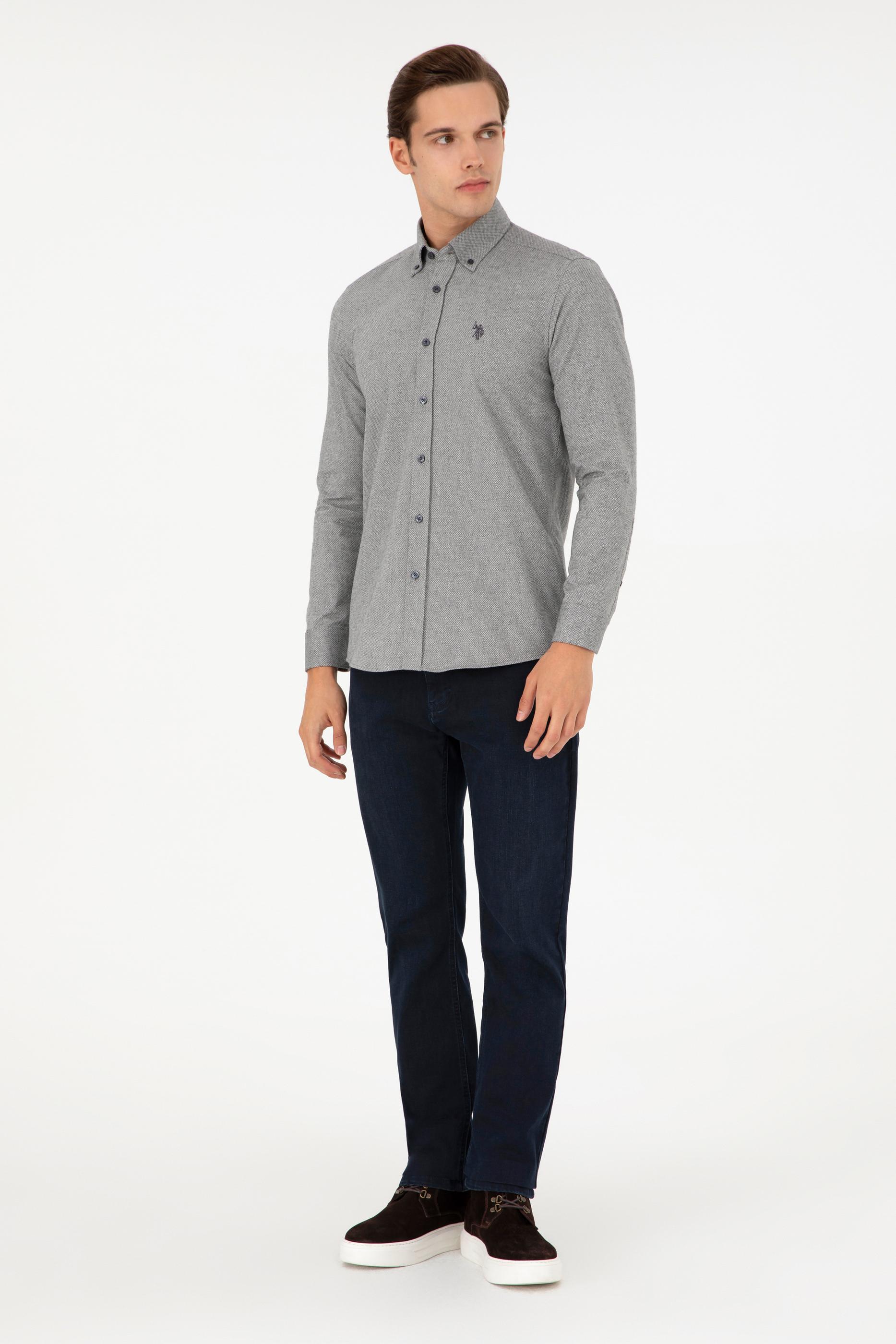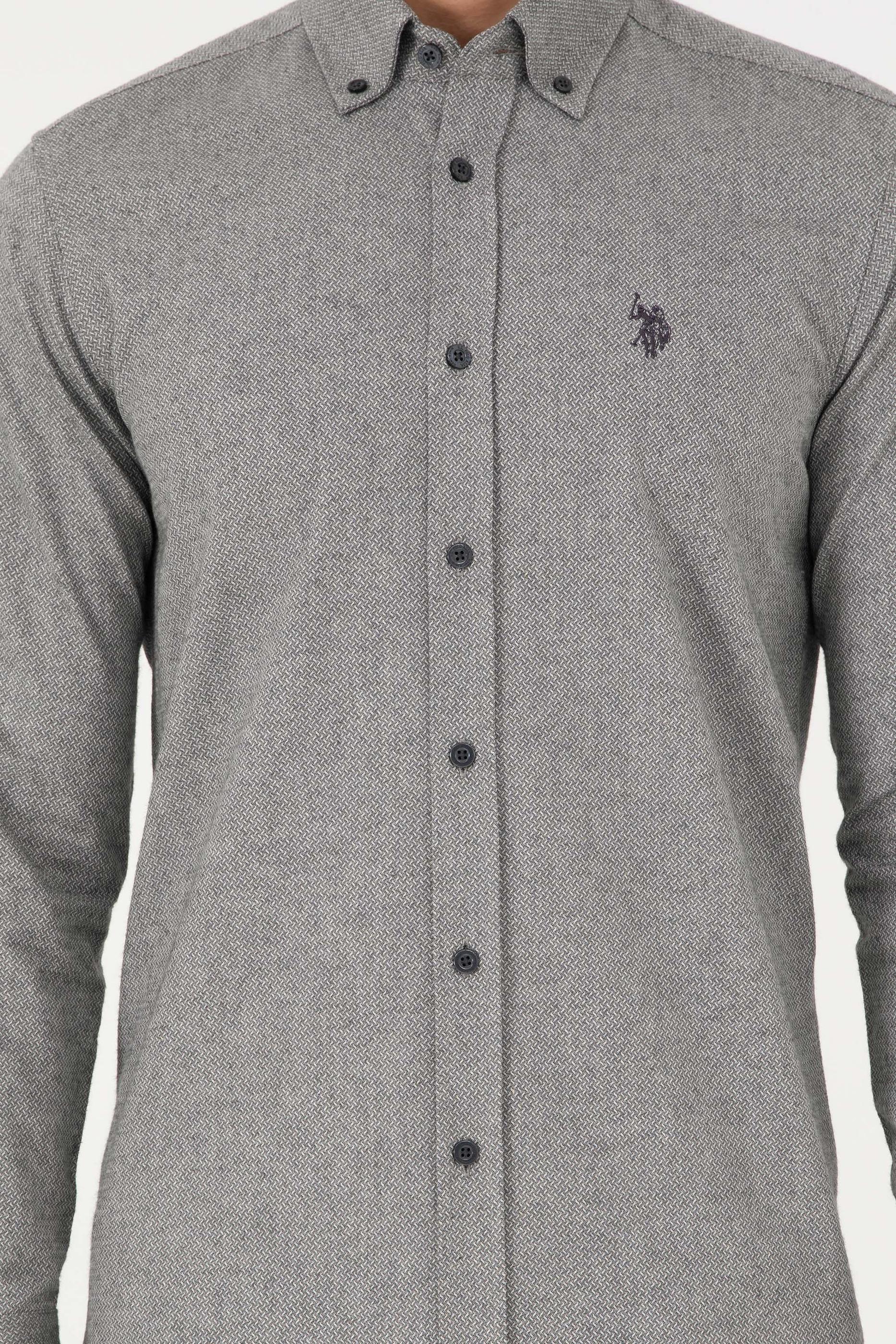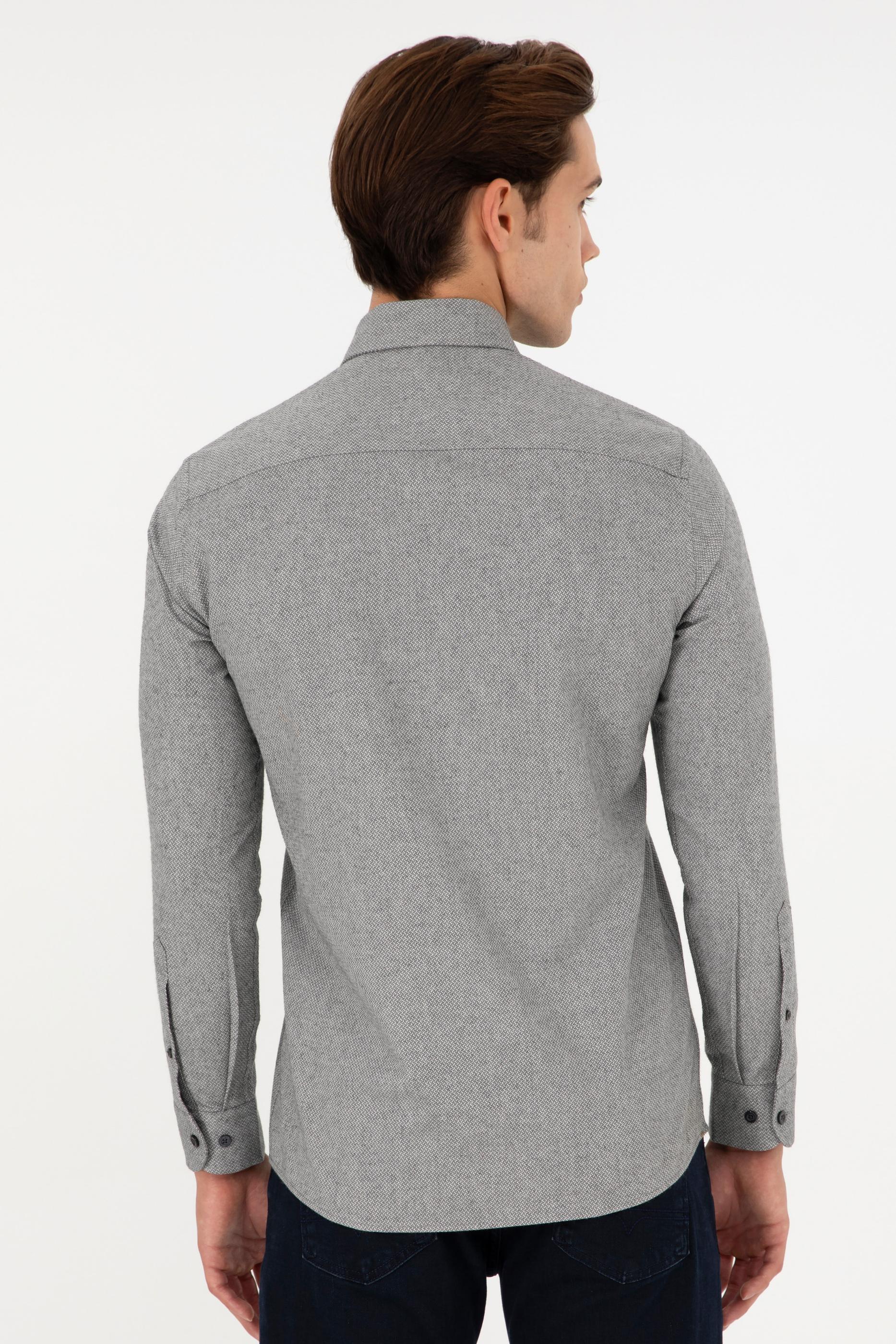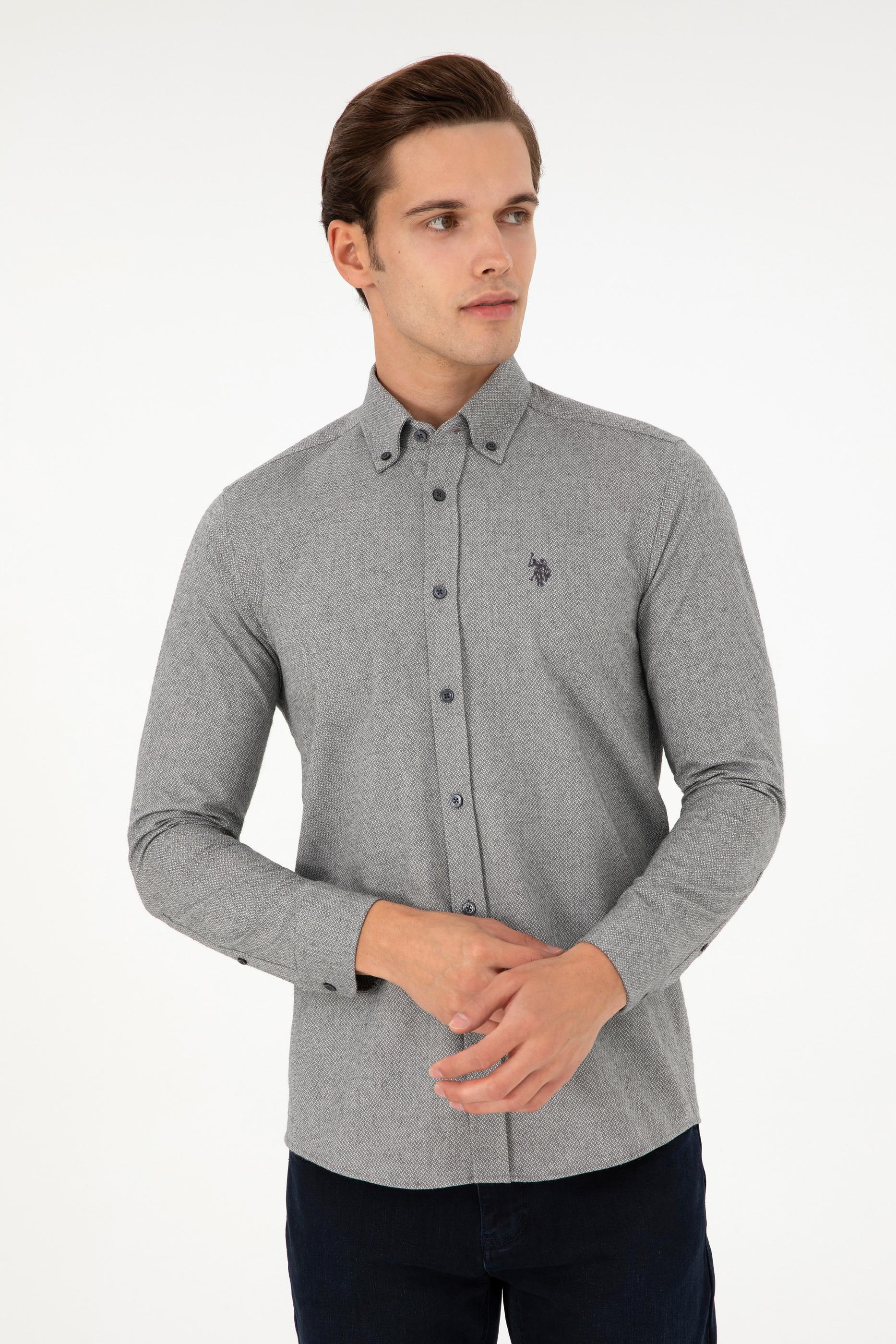 Uzun kollu yapısı ve manşet detayları, ihtiyaç halinde kıvrılarak kullanışlılık sunar. Kumaşın yarısı pamuk olduğu için nefes alabilme özelliği taşır, diğer yarısı polyester olduğundan dayanıklılığı artırır. Gömlek, gardırobuna klasik bir parça eklemek isteyenler için mükemmel bir seçimdir. Armürlü dokusu ve antrasit rengi, gömleği hem gündelik hem de daha resmi ortamlar için çok yönlü hale getirir. Düğmeli yakası ve slim fit kesimi ile şık bir stil tamamlanır. Özel günlerden günlük kombinlere kadar geniş bir kullanım alanı sunar.