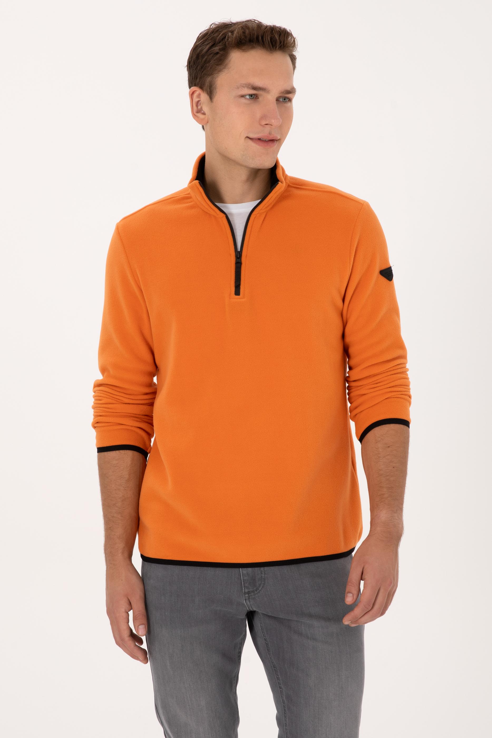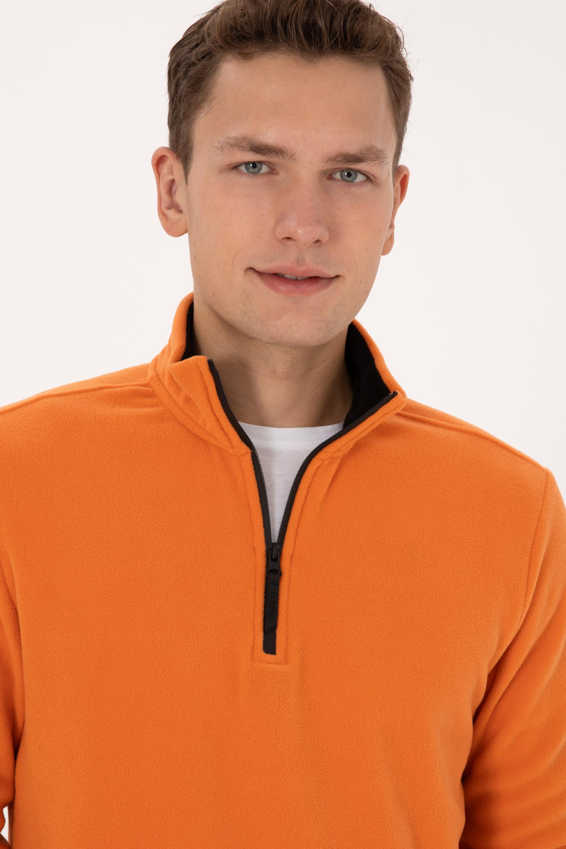 Erkek Regular Fit Bakır Polar Yarım Fermuarlı Basic Sweatshirt