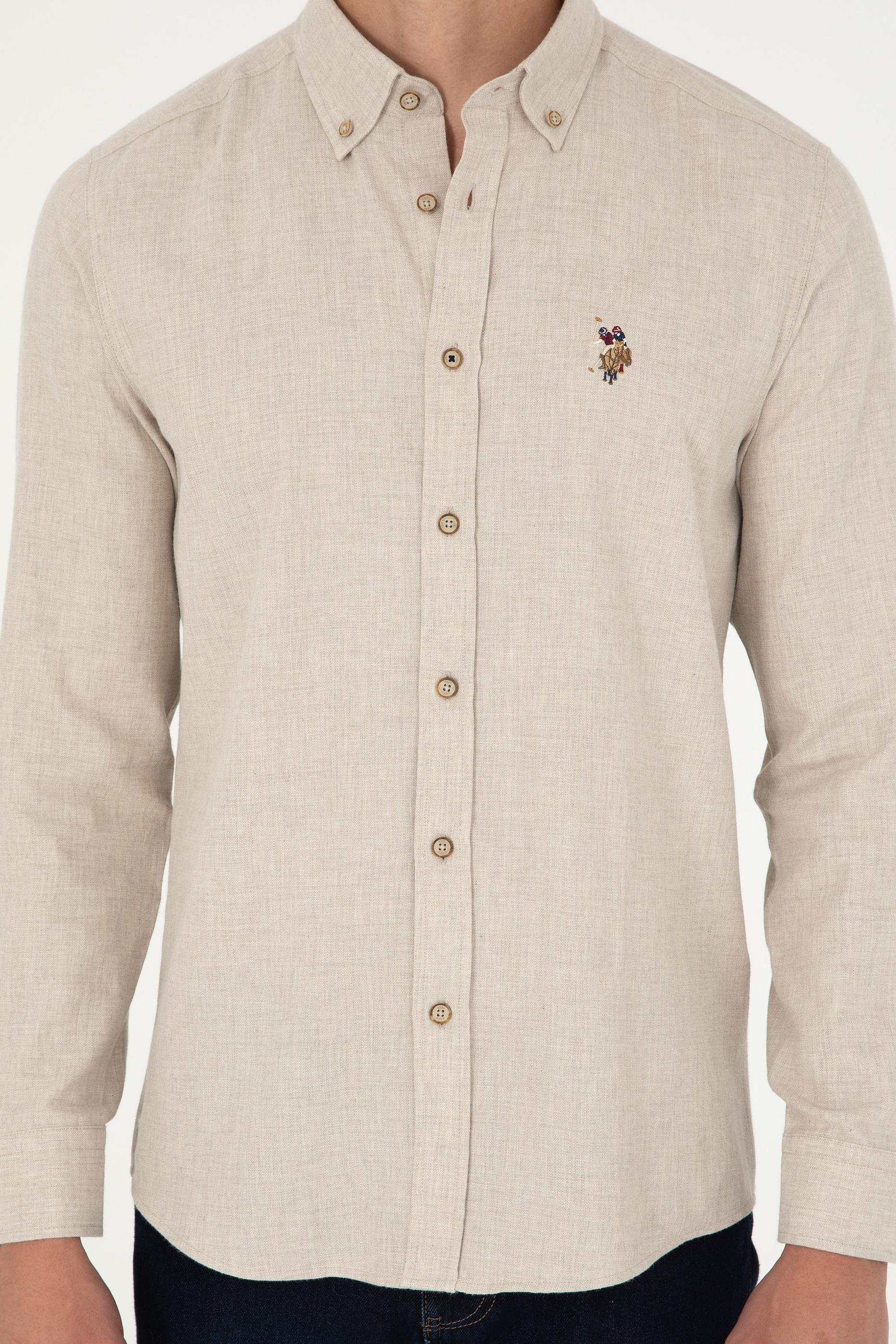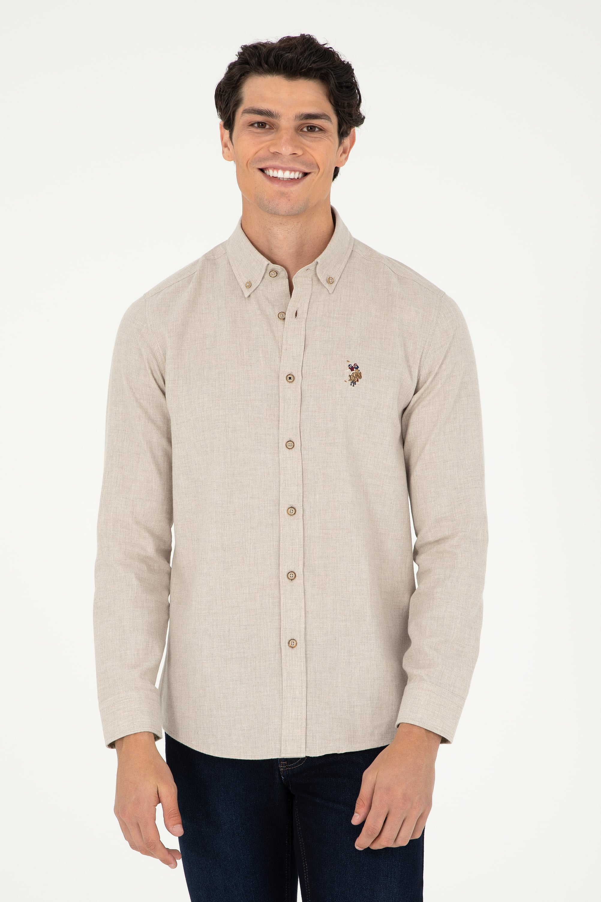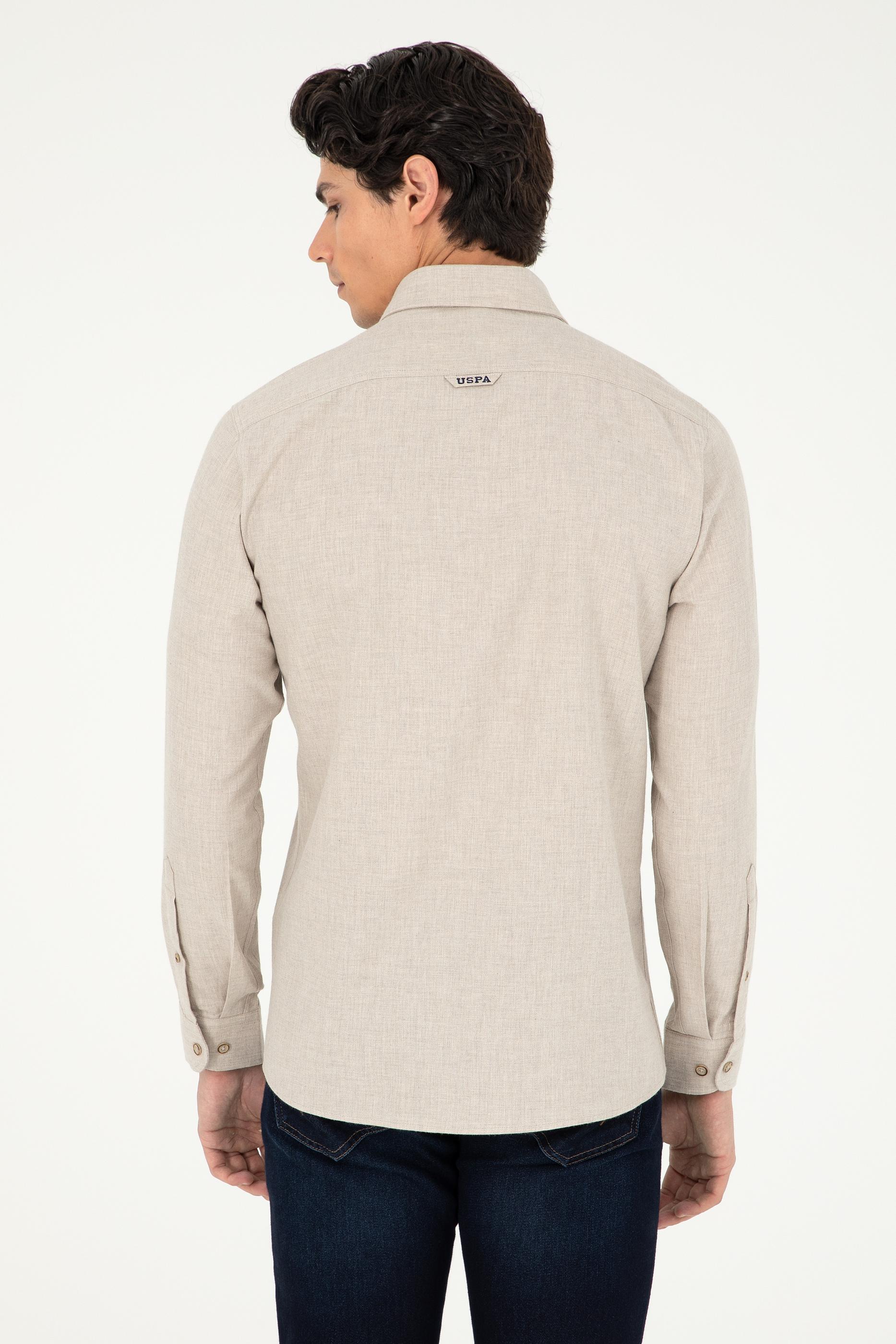 - Erkek Bej Uzun Kollu Basic Gömlek
