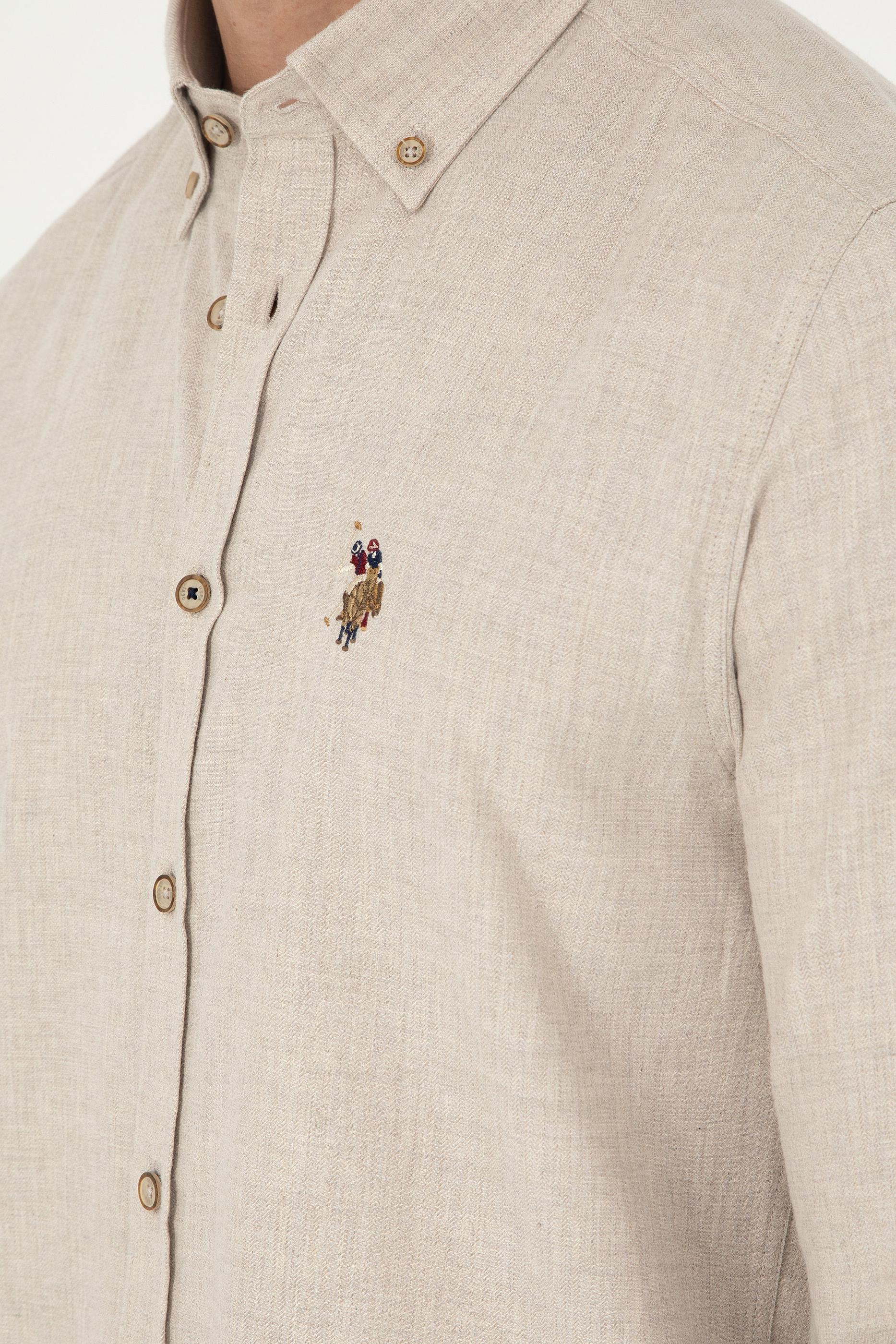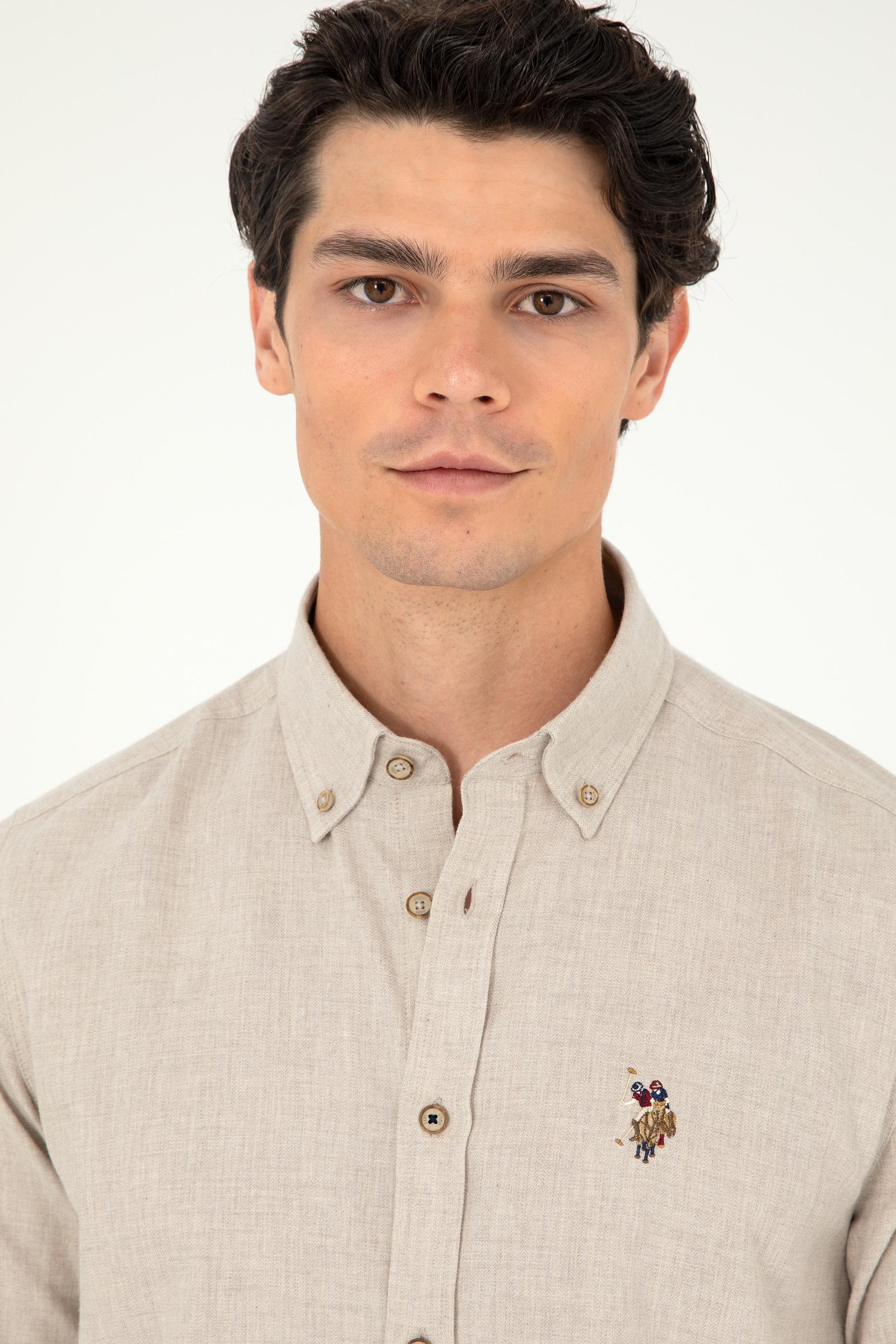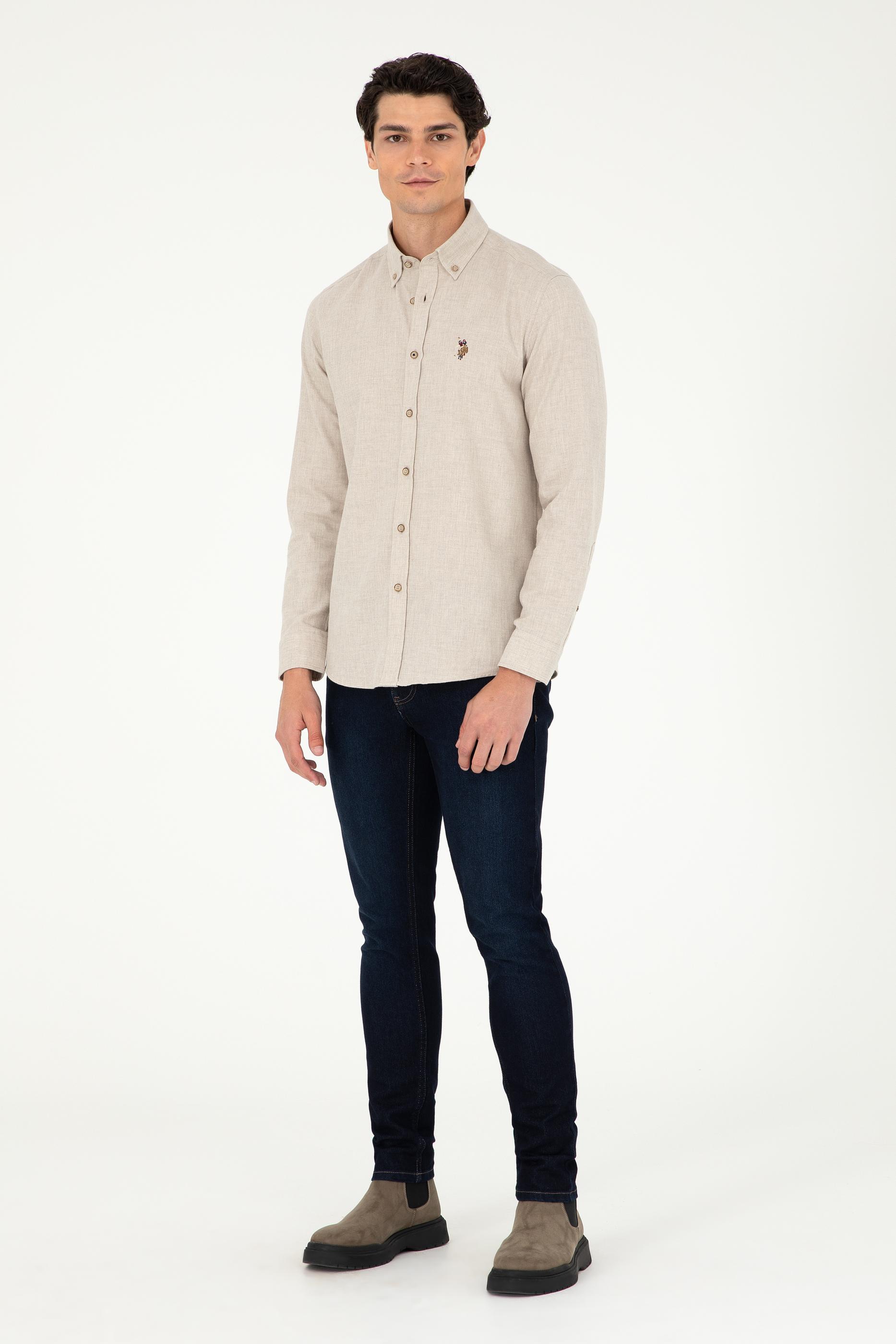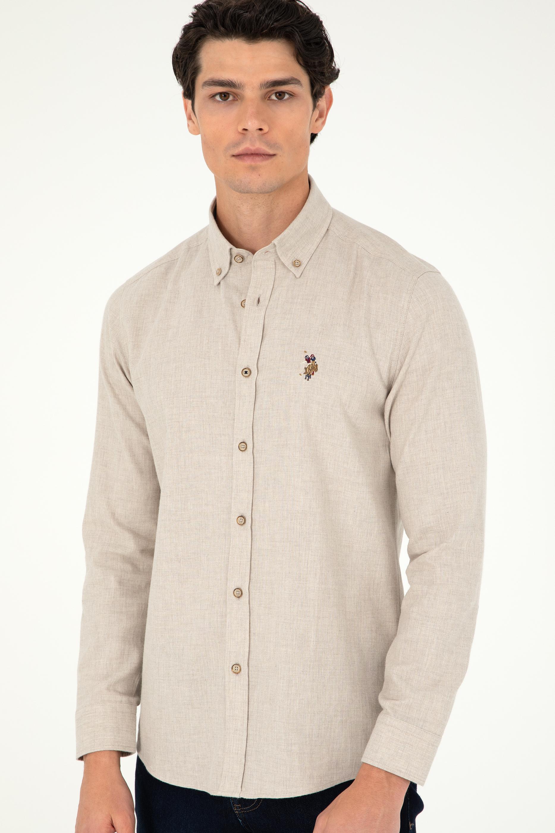 - Erkek Bej Uzun Kollu Basic Gömlek