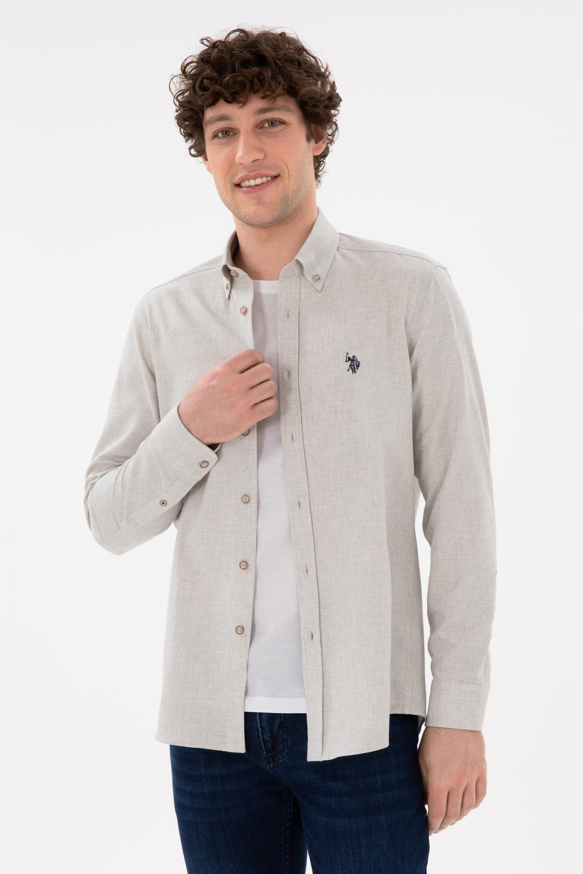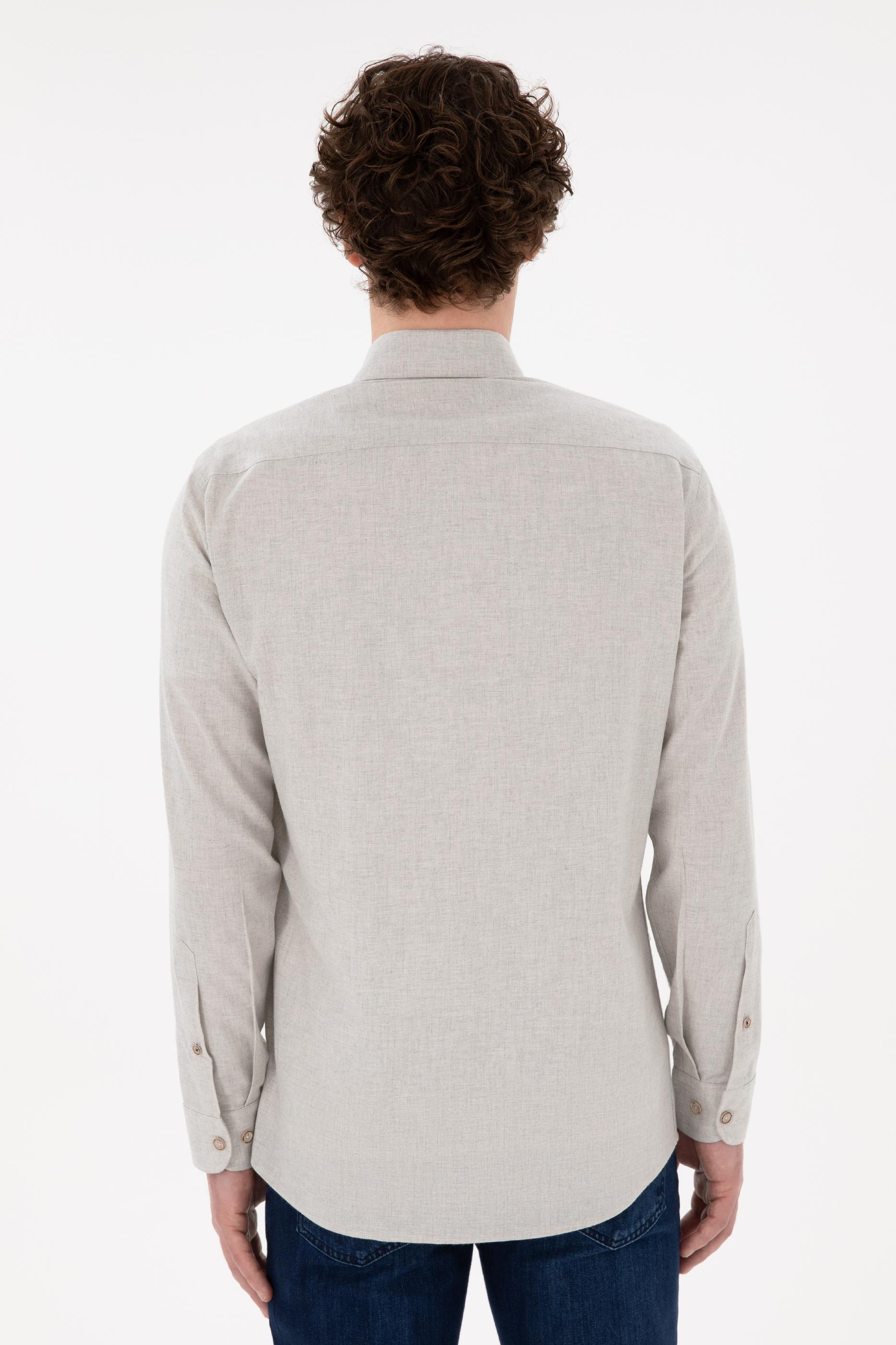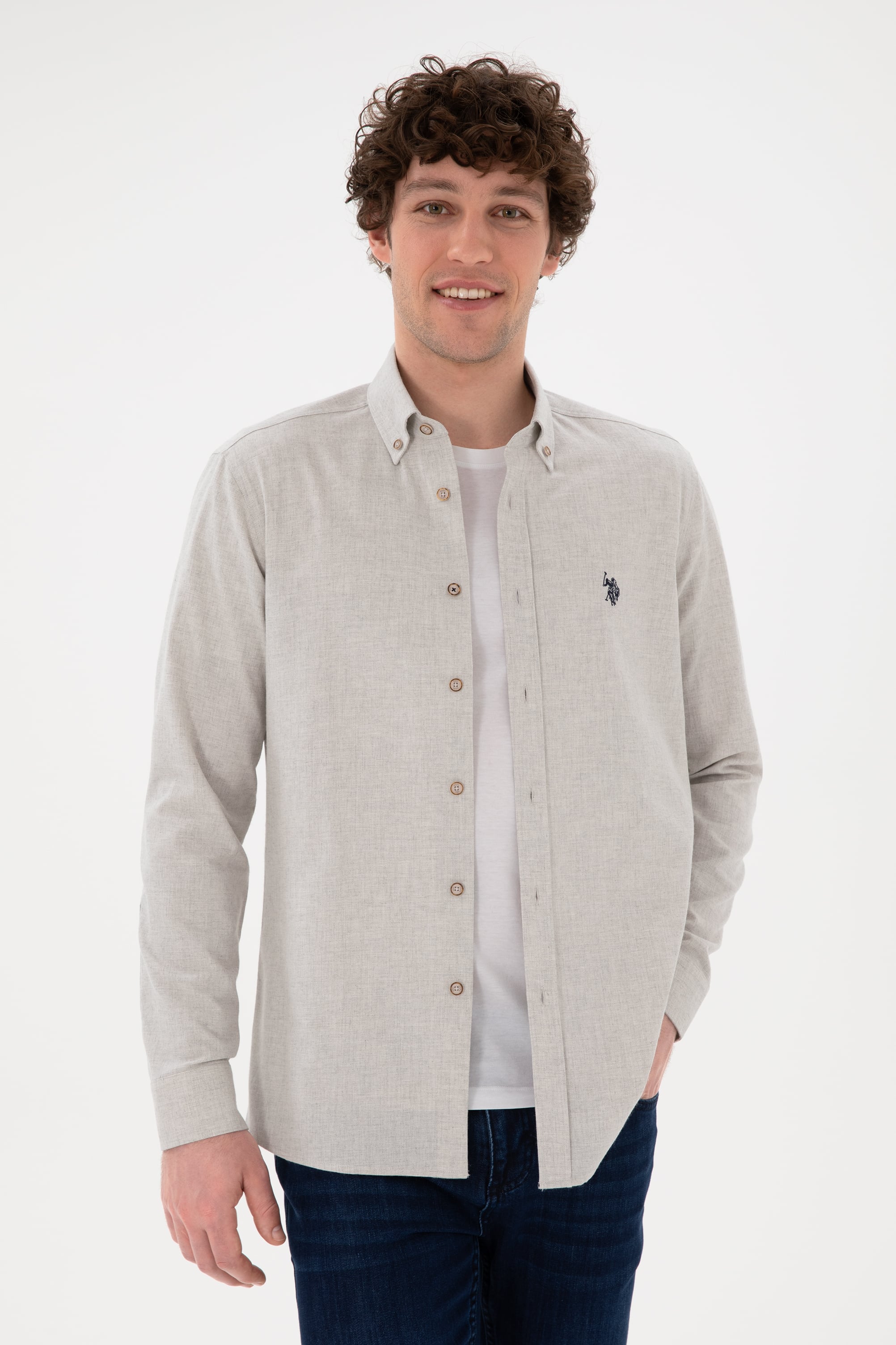 - Erkek Bej Uzun Kollu Basic Gömlek