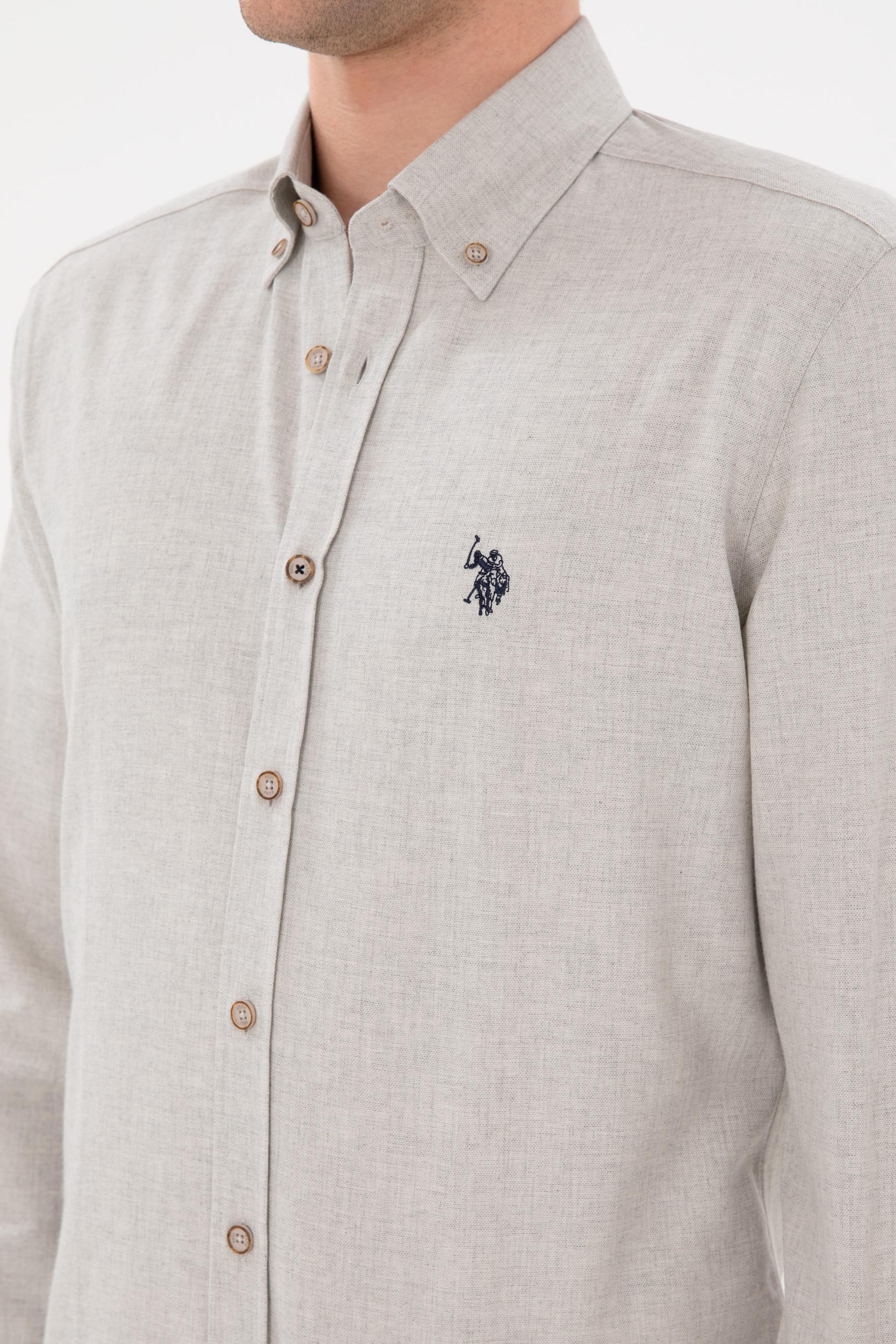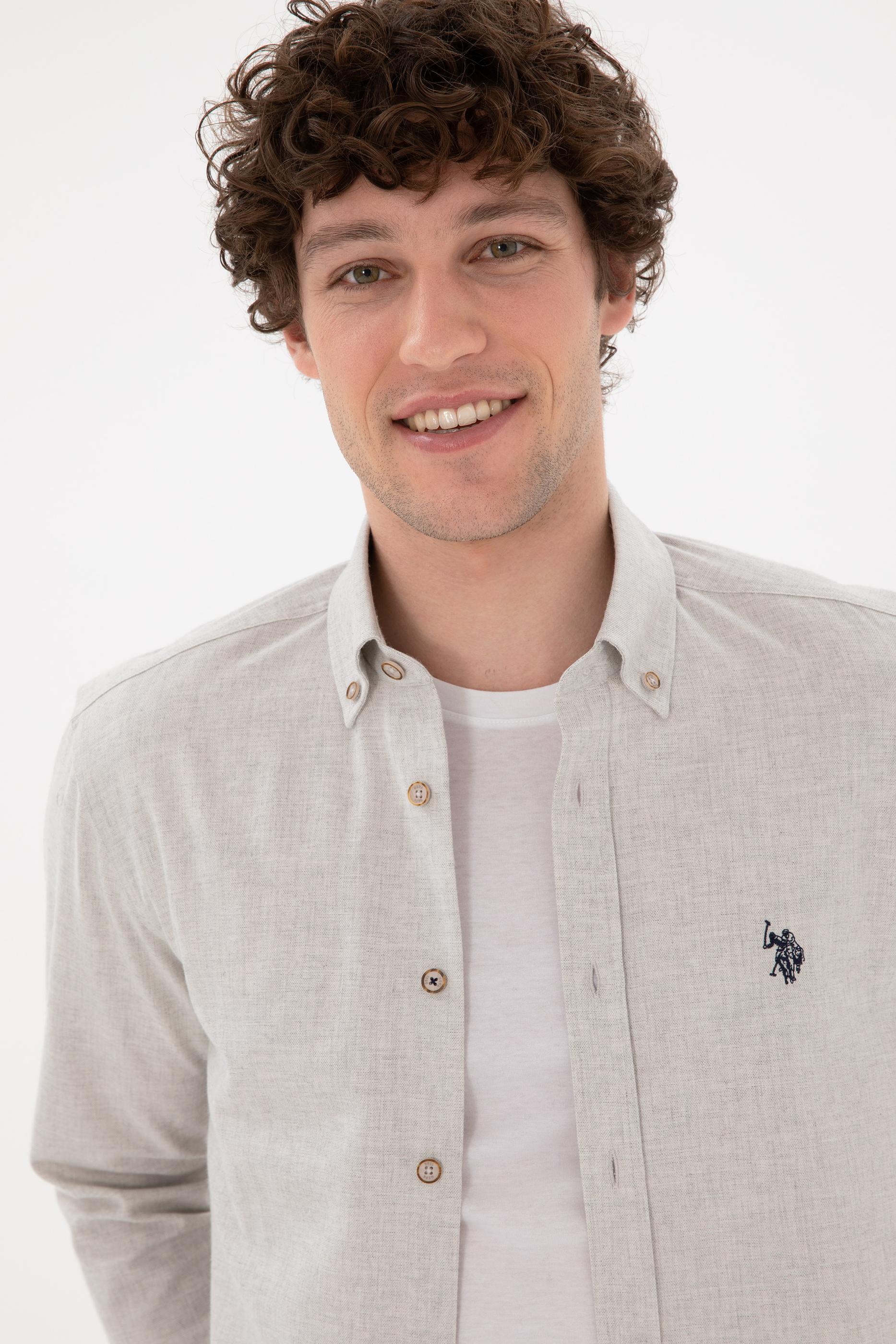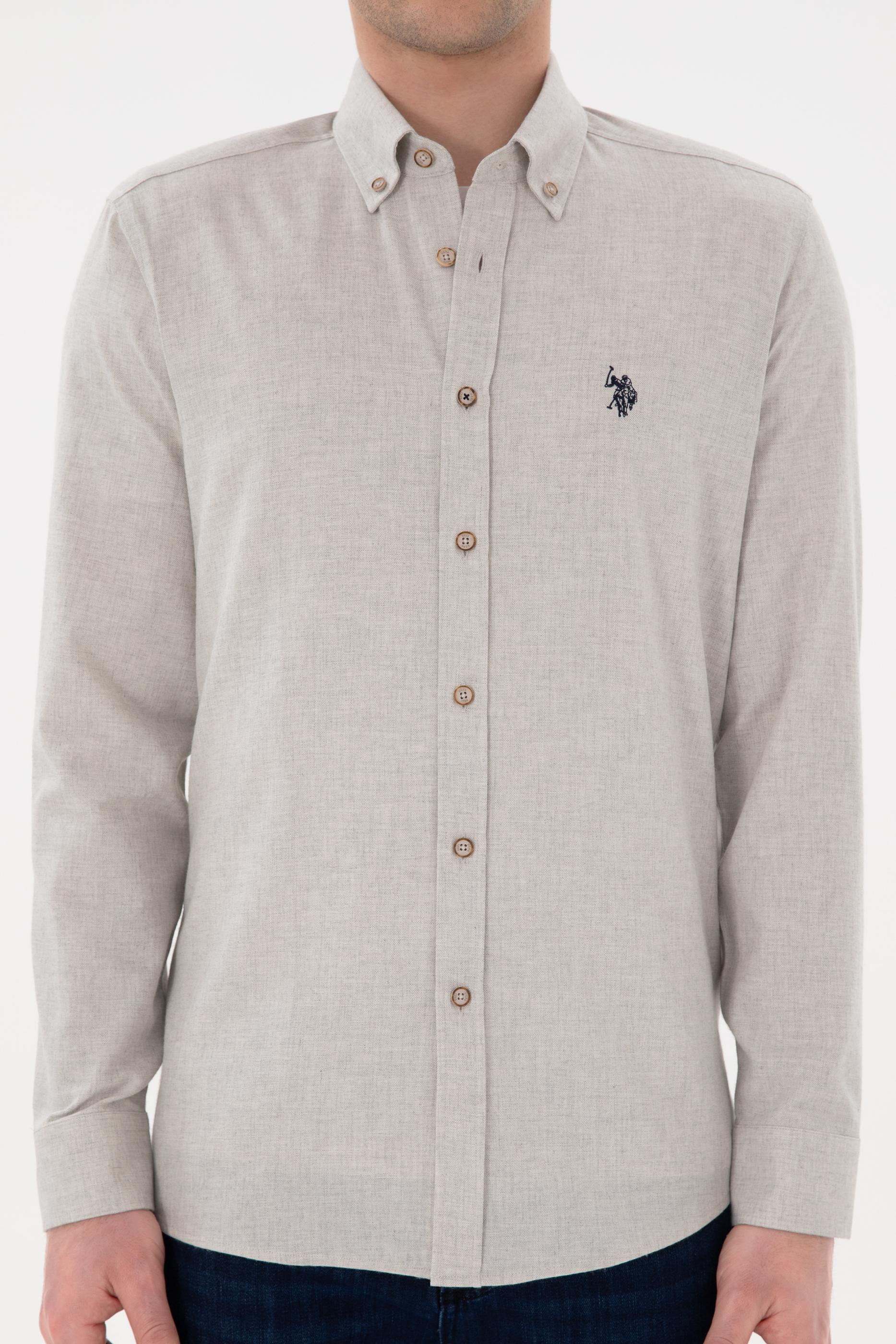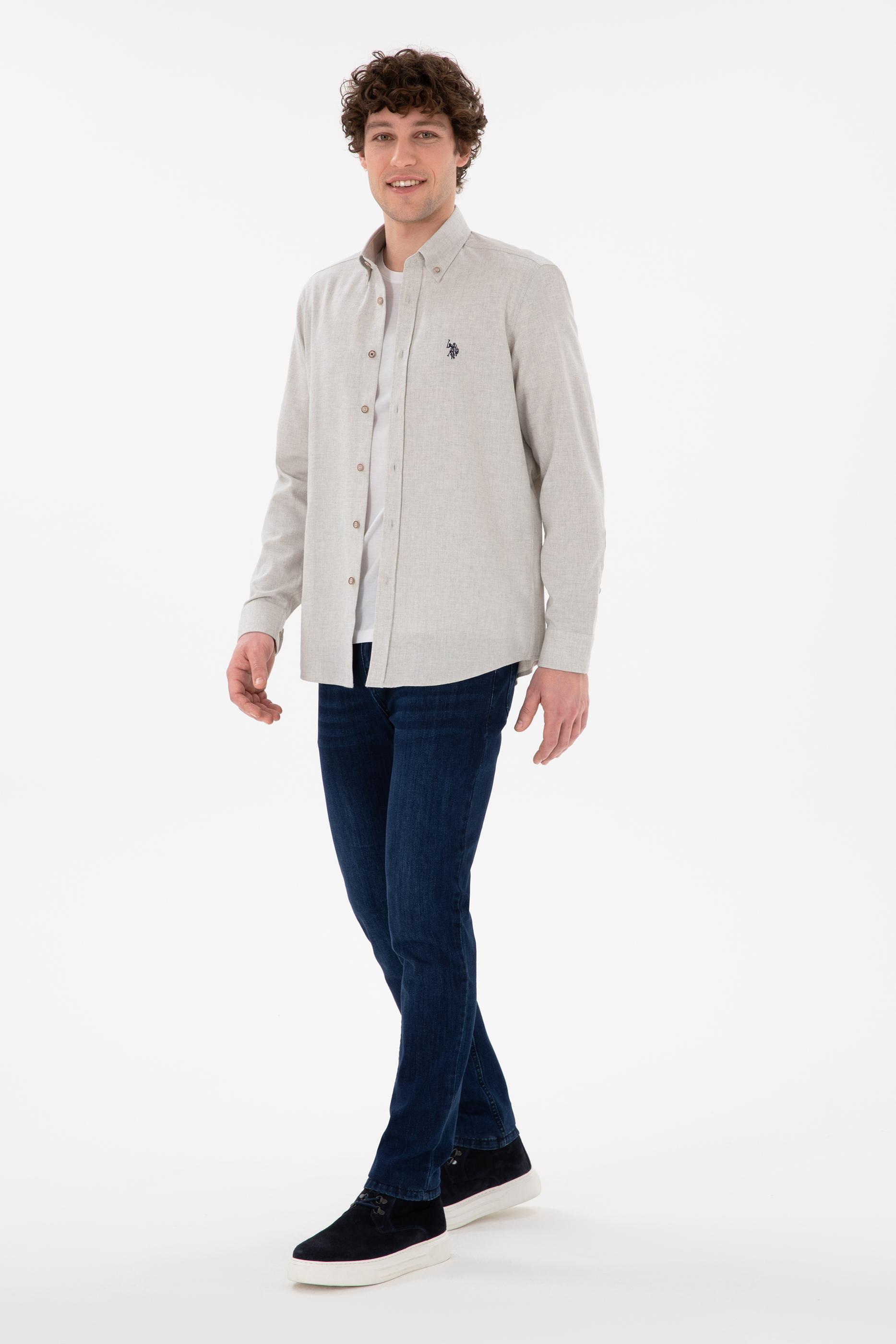 - Erkek Bej Uzun Kollu Basic Gömlek