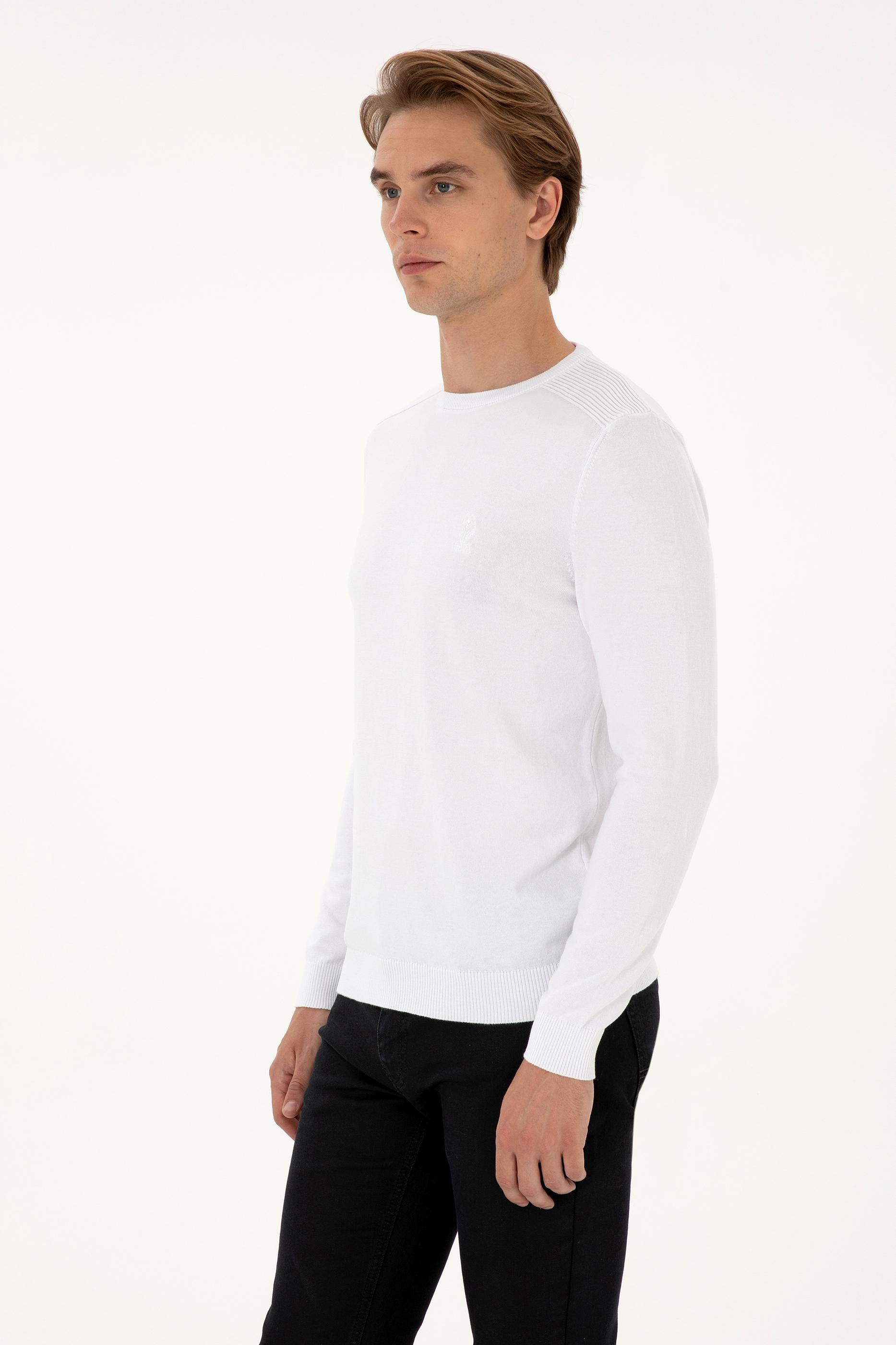 - Erkek Slim Fit Bisiklet Yaka Beyaz Basic Kazak