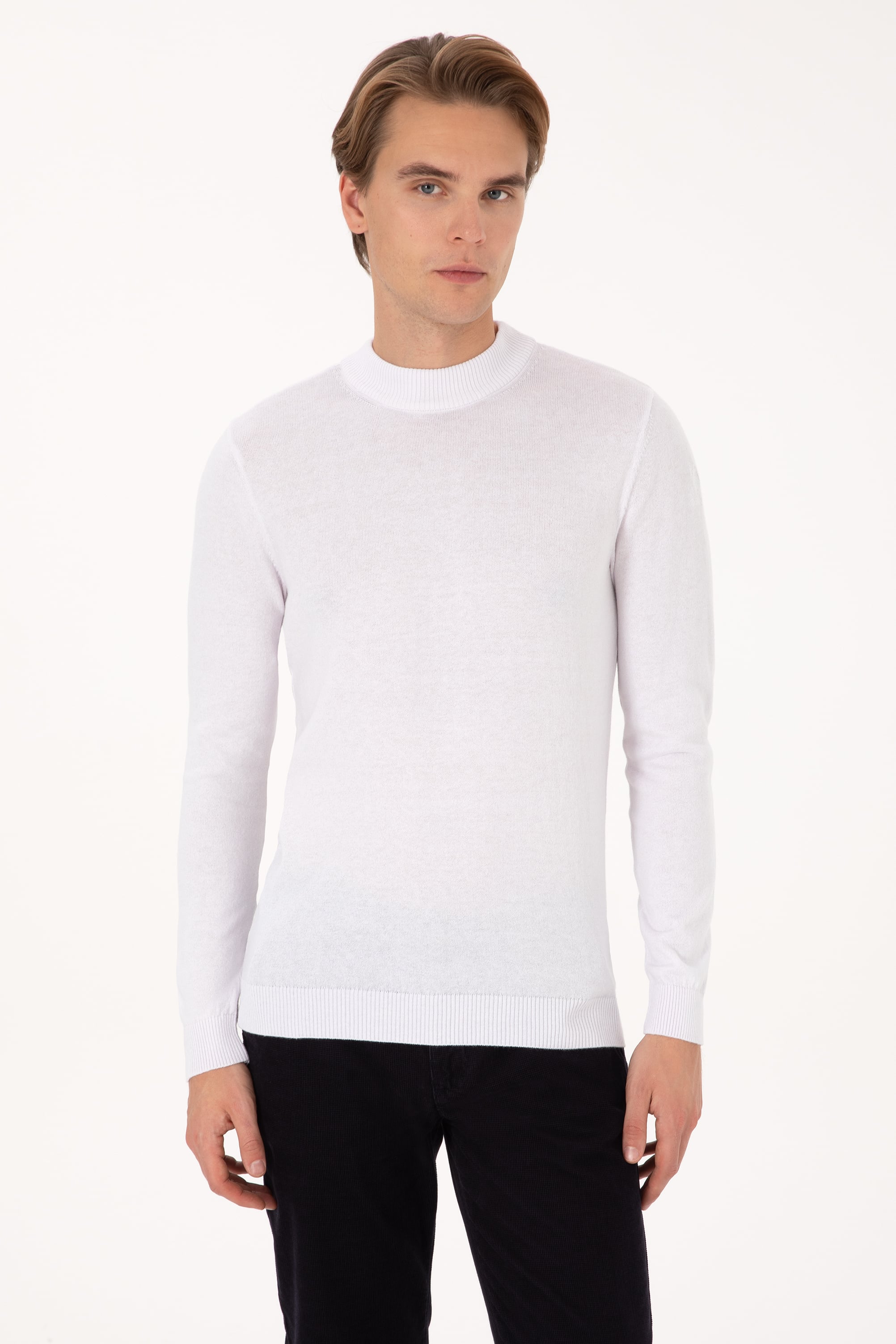 Erkek Slim Fit Bisiklet Yaka Beyaz Basic Kazak