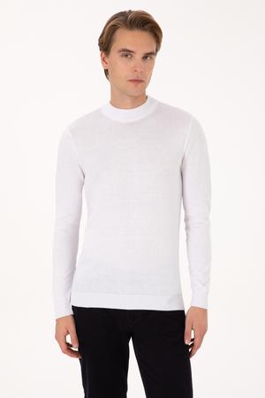 - Erkek Slim Fit Bisiklet Yaka Beyaz Basic Kazak
