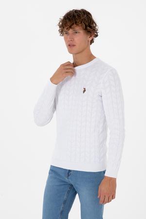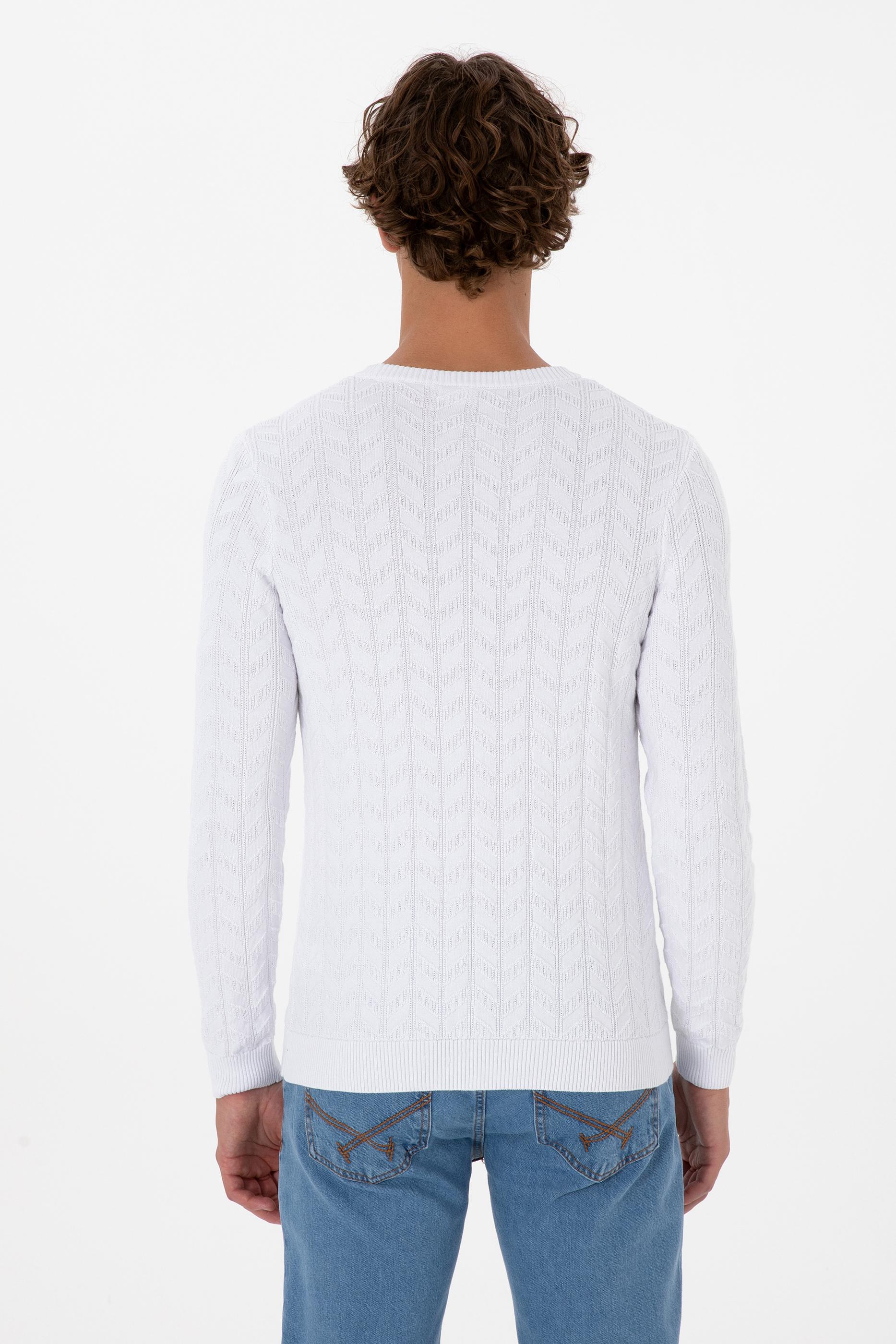 Erkek Slim Fit Bisiklet Yaka Desenli Beyaz Kazak