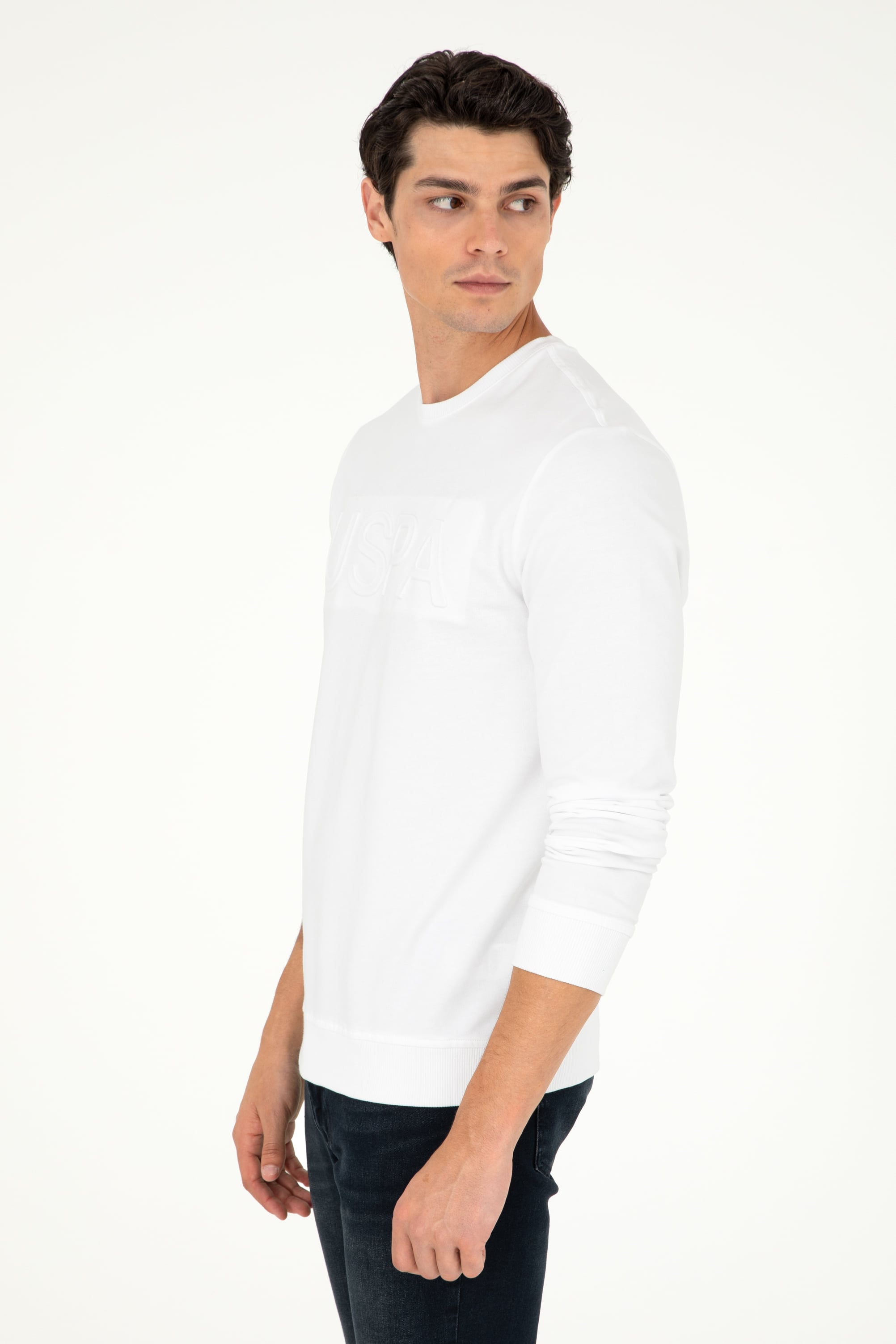 - Erkek Regular Fit Bisiklet Yaka Beyaz Basic Sweatshirt