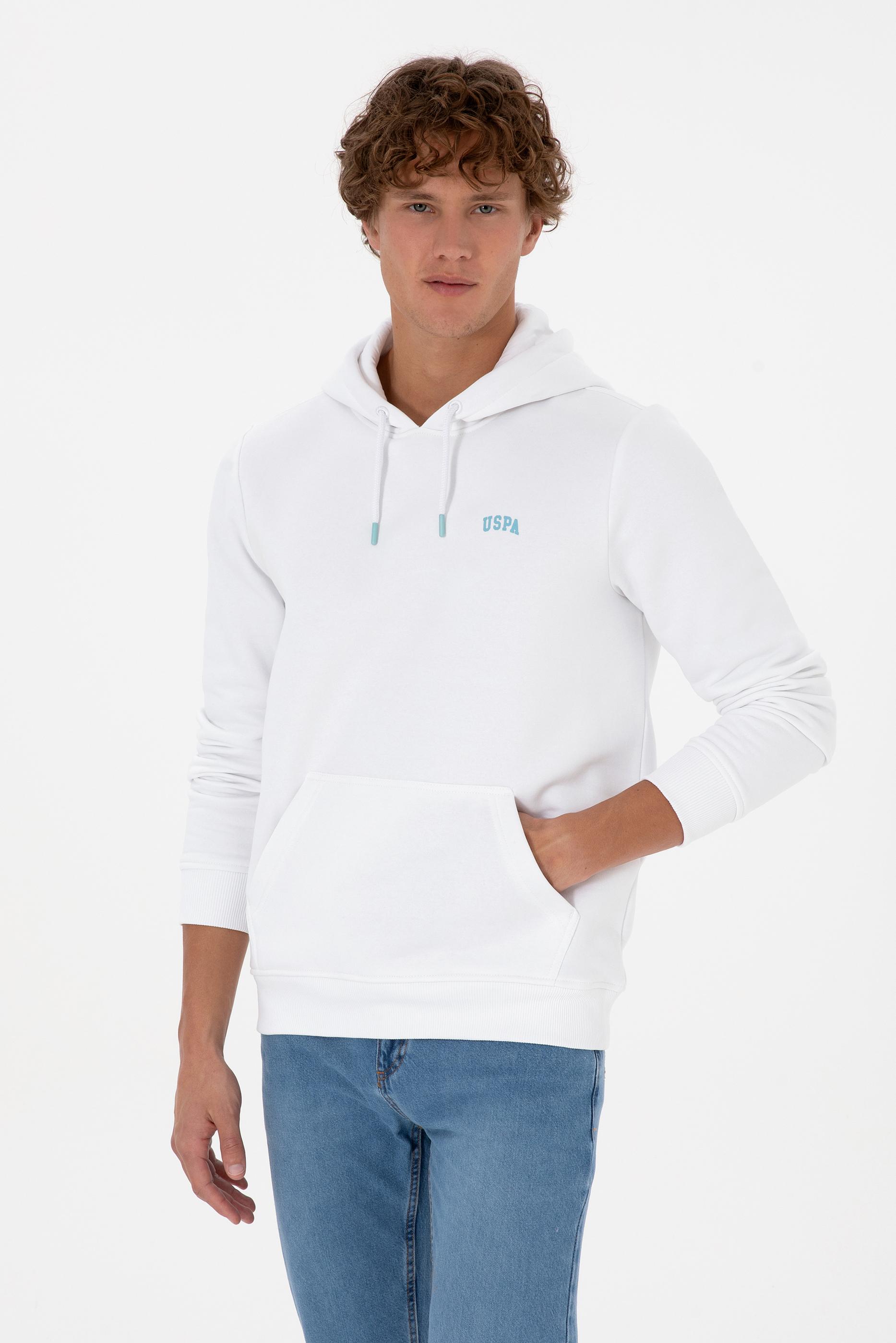 "name": "Erkek Regular Fit Kapüşonlu Şardonlu Beyaz Basic Sweatshirt",