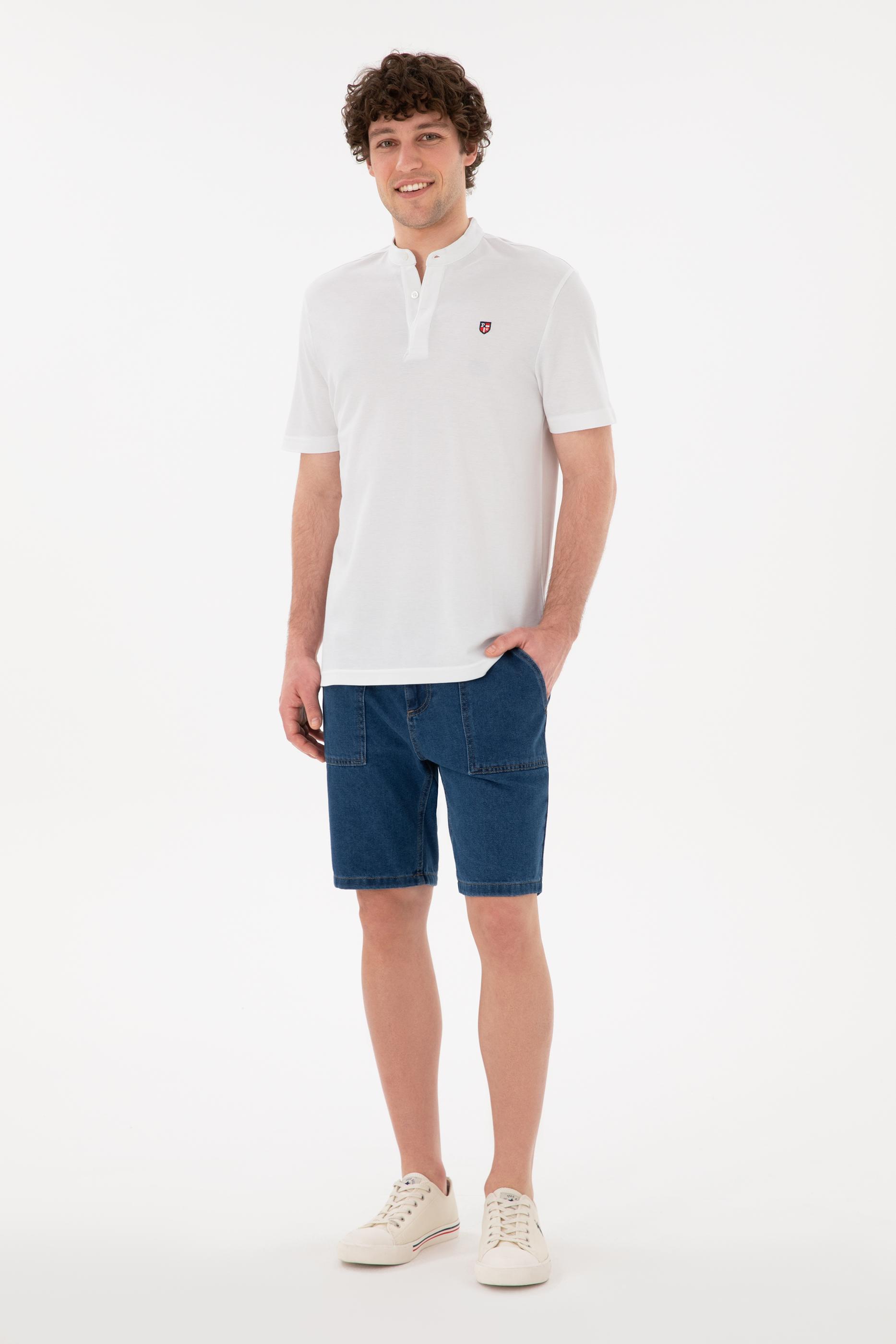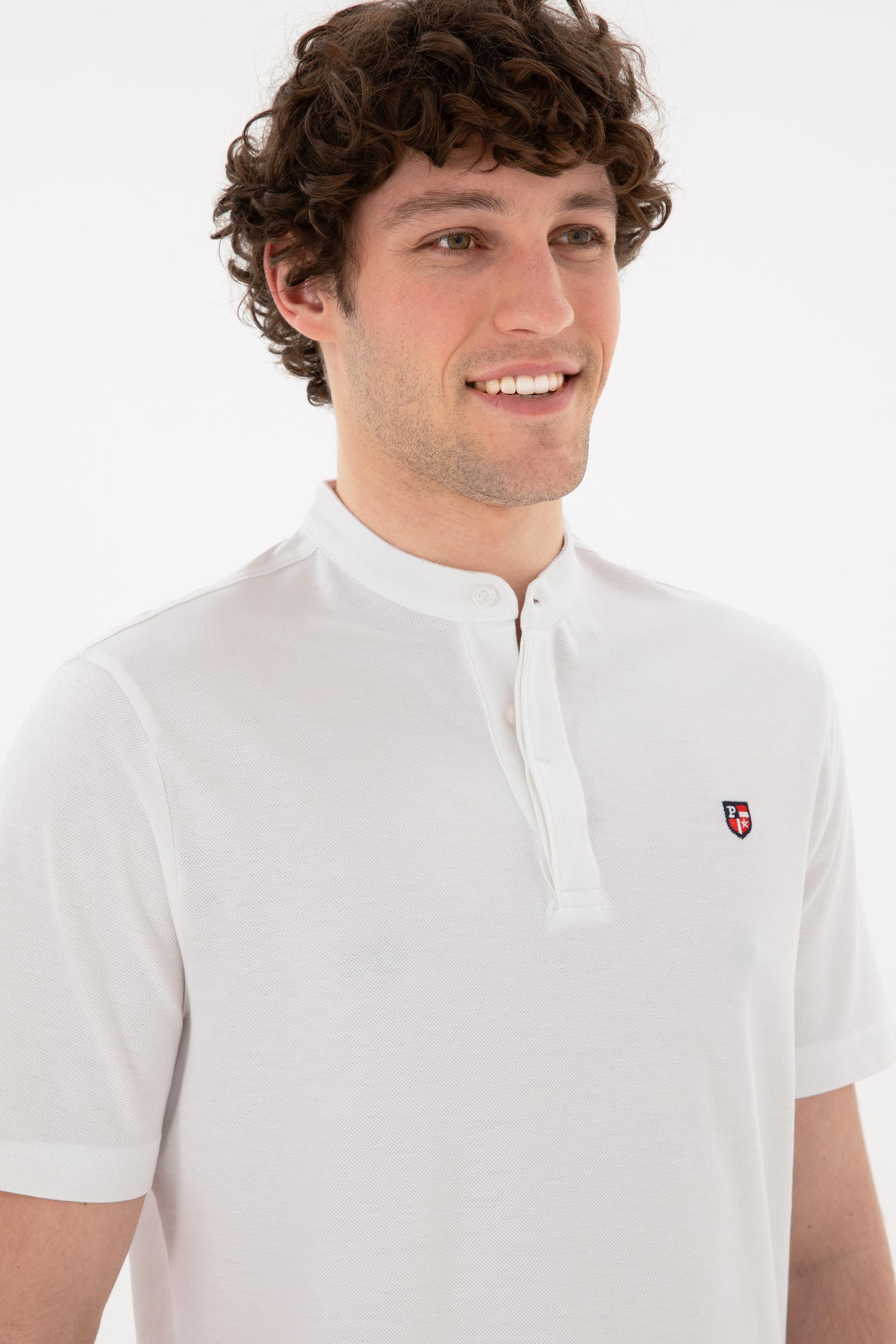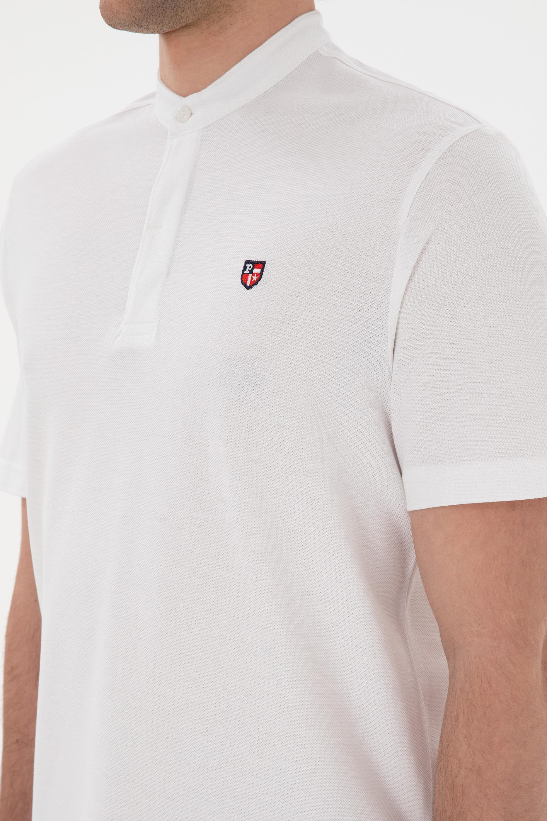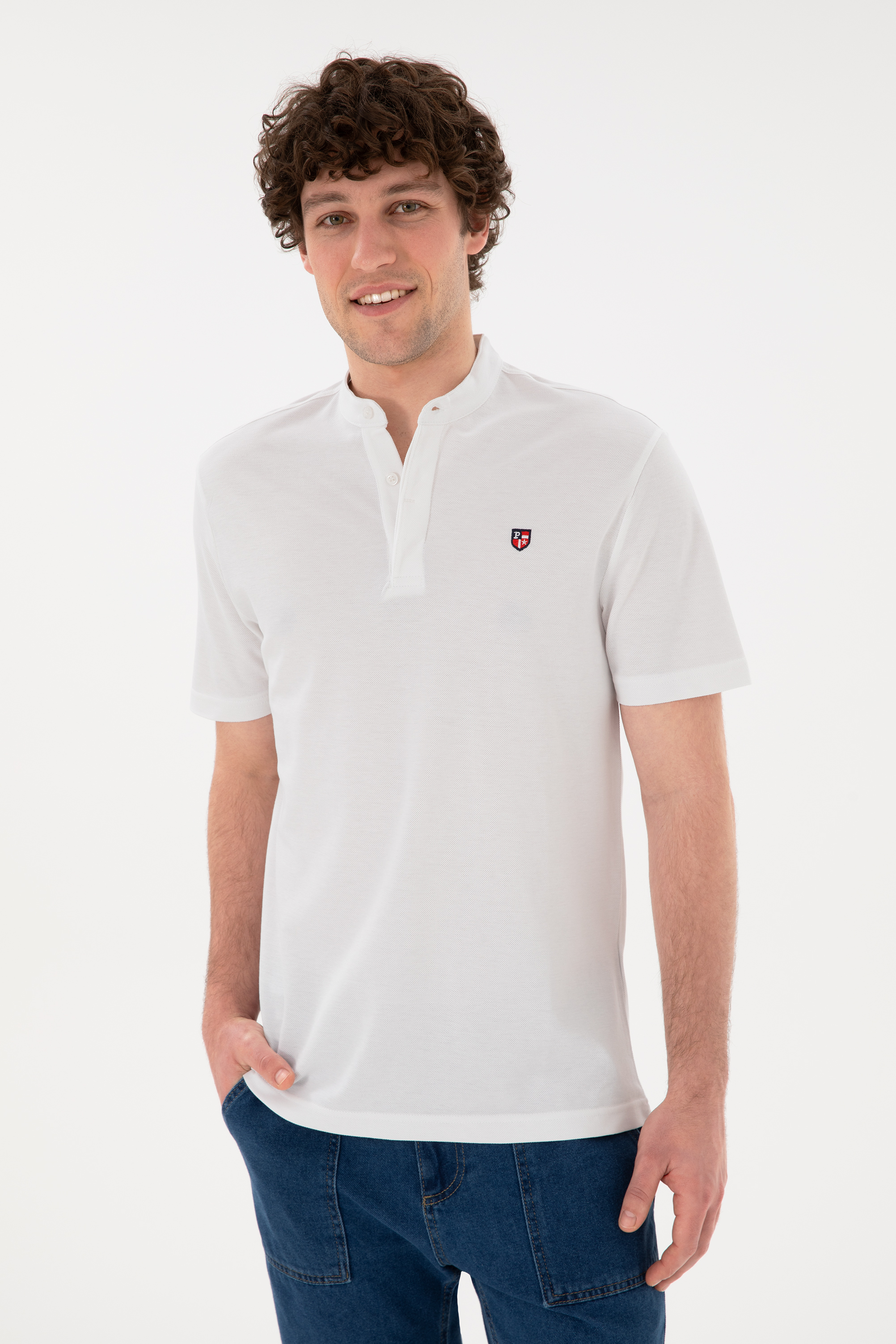 Erkek Regular Fit Hakim Yaka Beyaz Basic Tişört