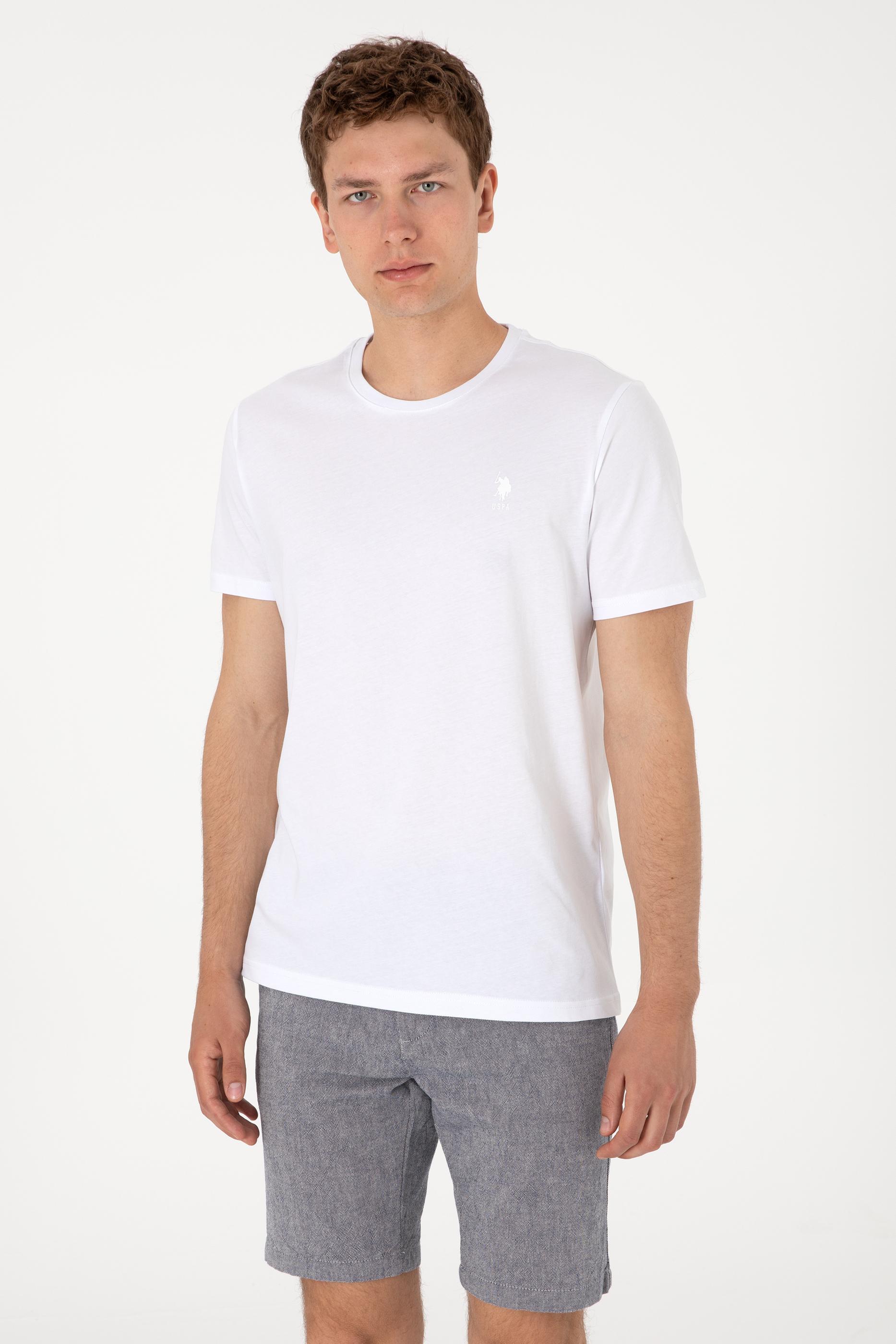 - Erkek Regular Fit Bisiklet Yaka Beyaz Basic Tişört