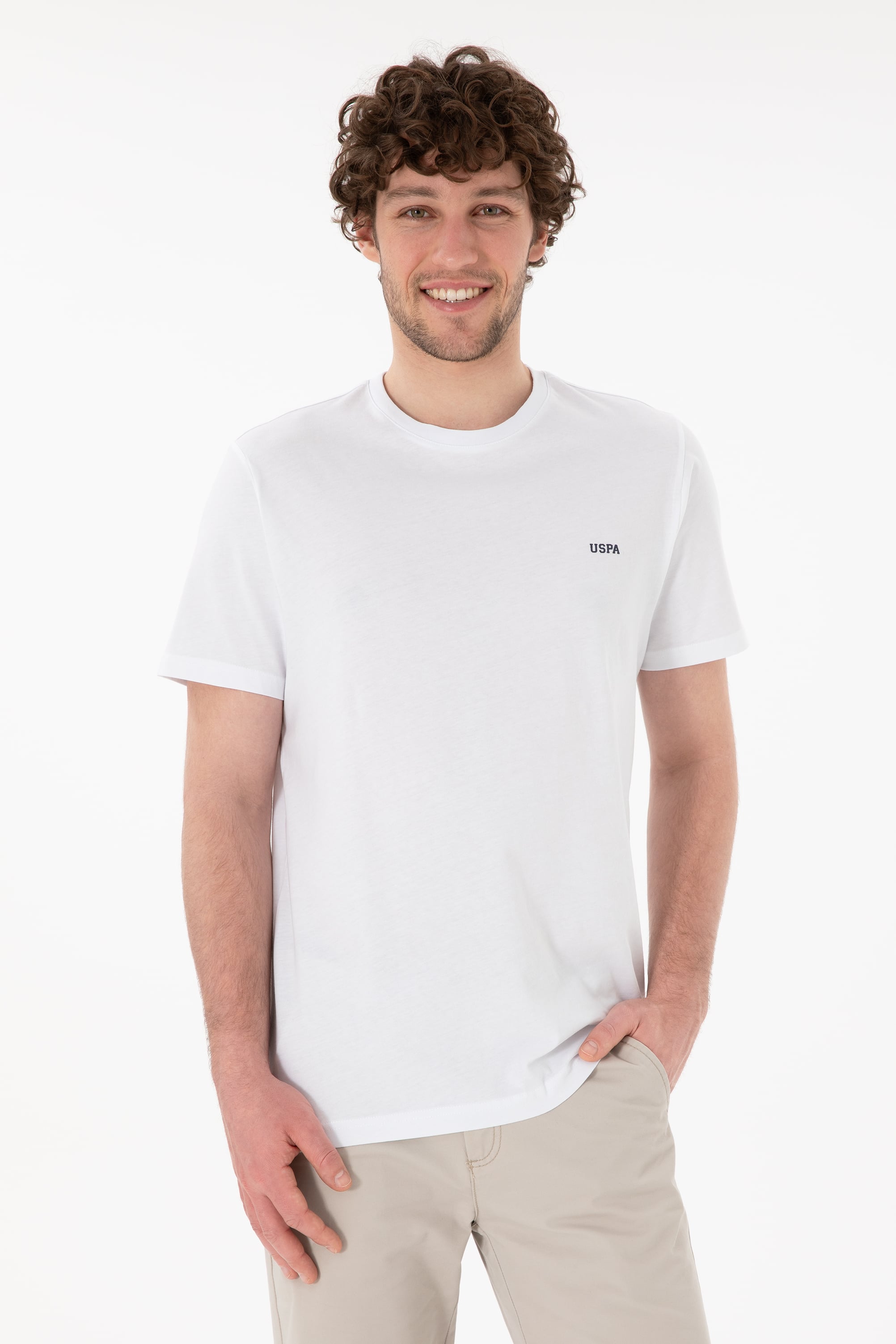 Erkek Regular Fit Bisiklet Yaka Beyaz Basic Tişört