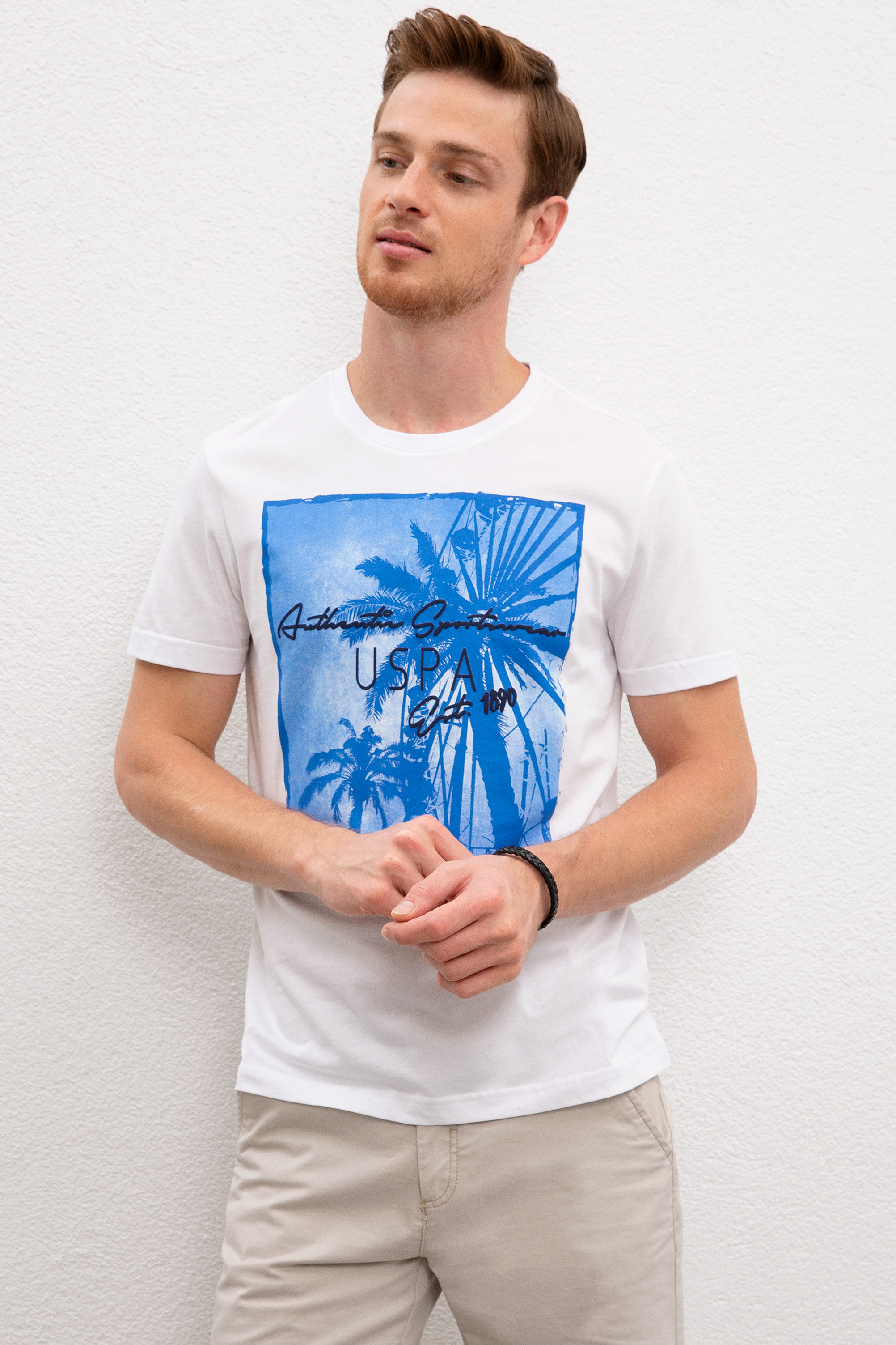 - Erkek Beyaz Bisiklet Yaka T-Shirt