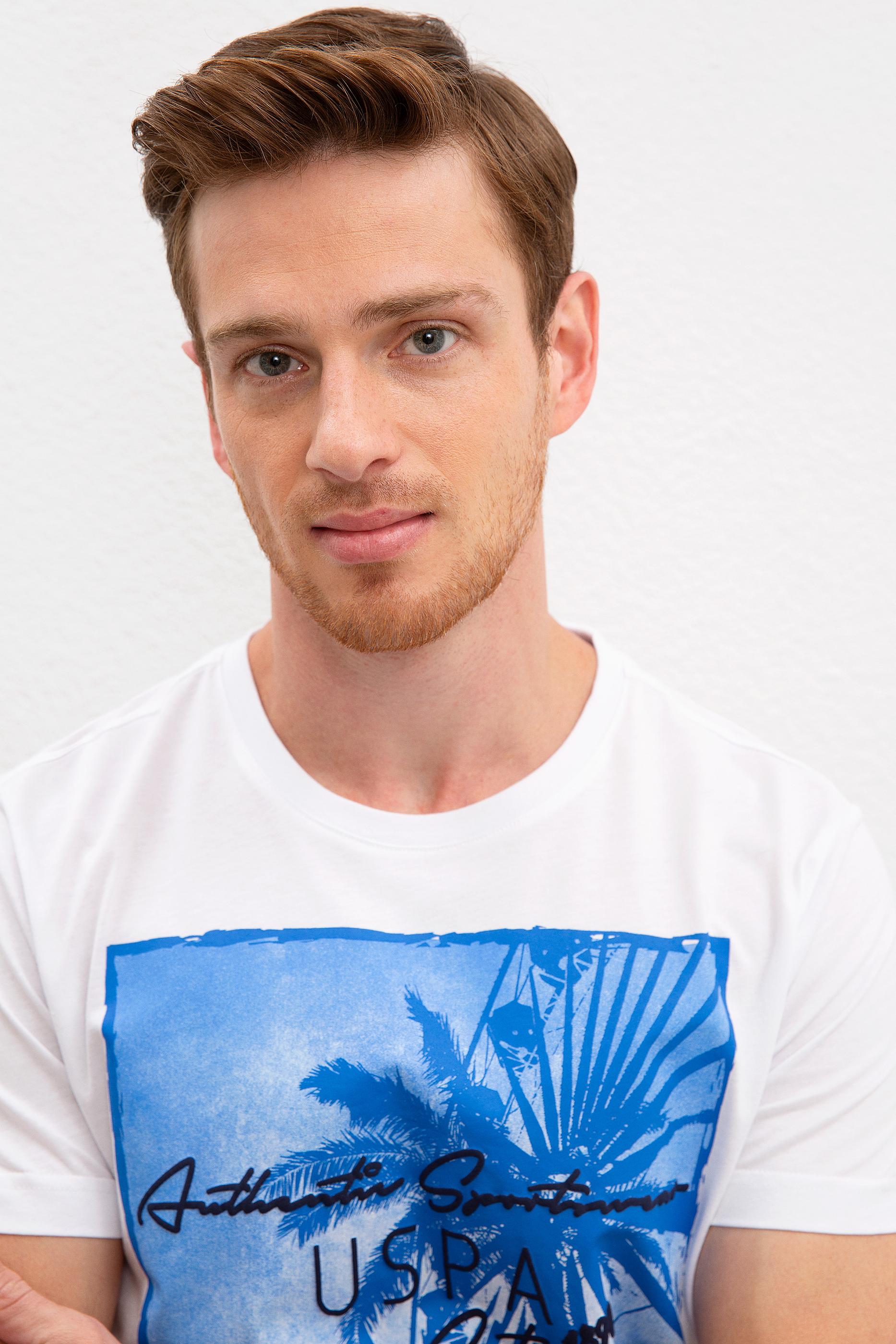 Erkek Beyaz Bisiklet Yaka T-Shirt