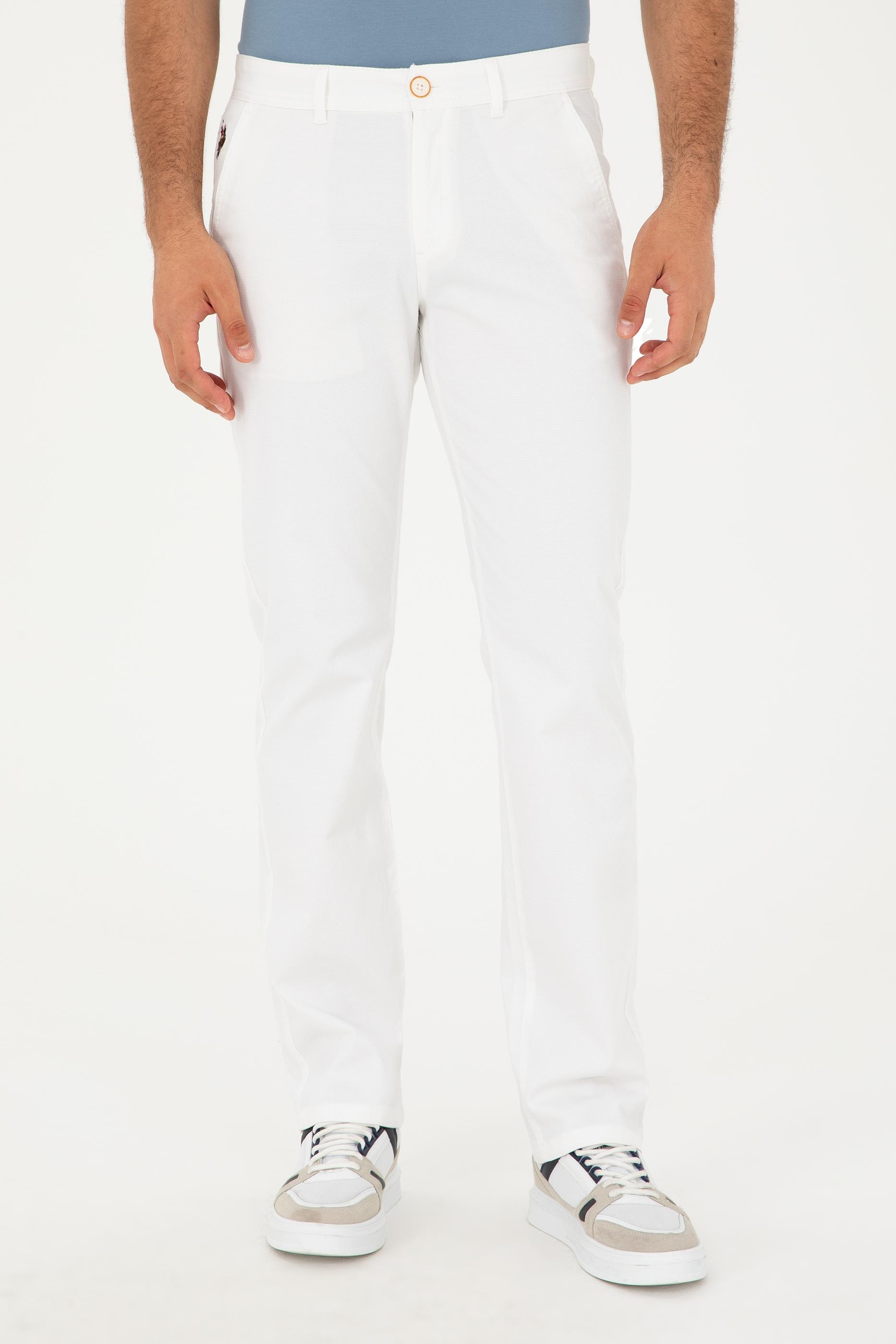 - Erkek Regular Fit Beyaz Kanvas / Chino Pantolon