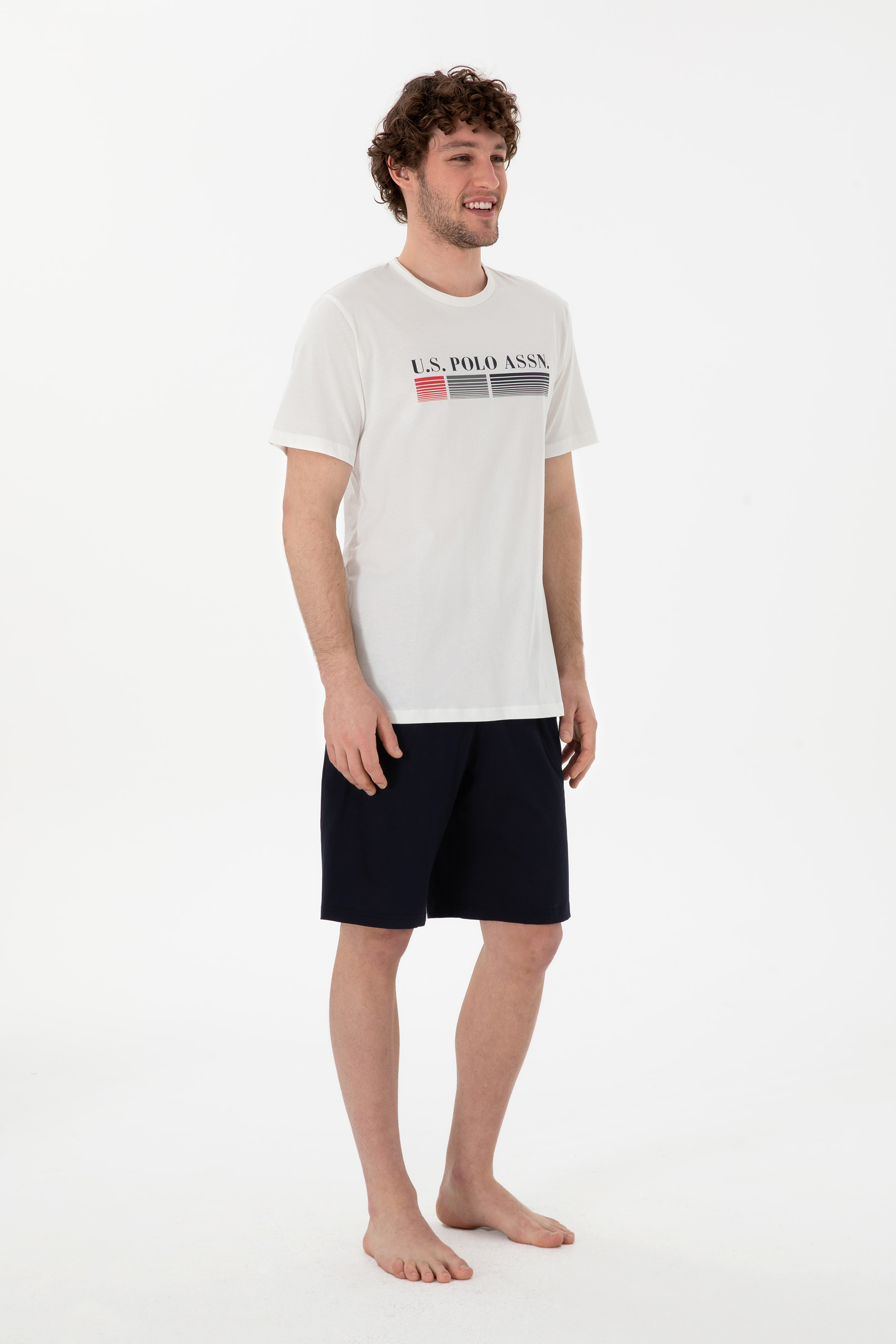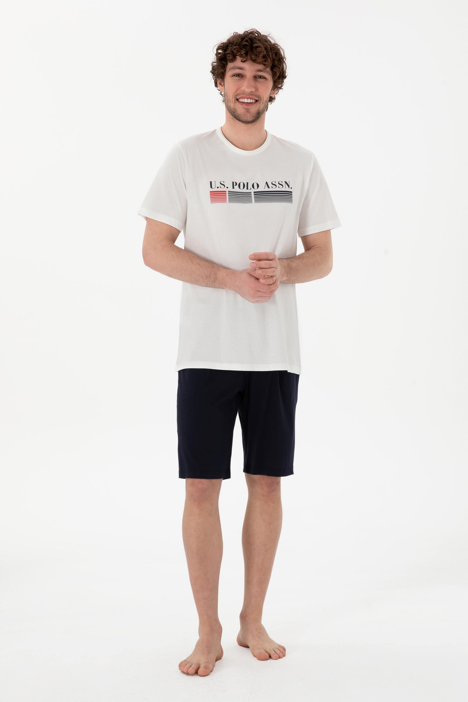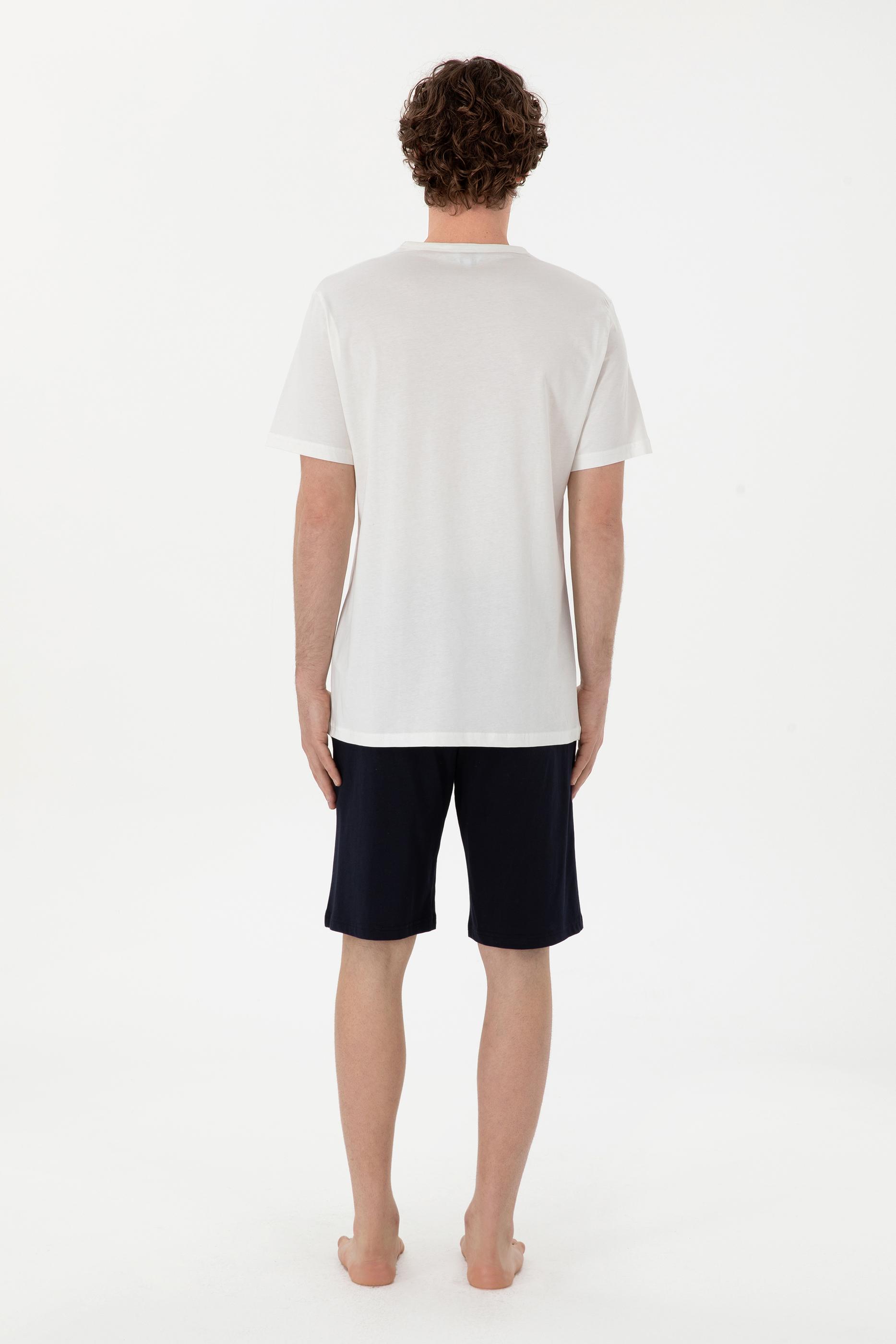 Erkek Bisiklet Yaka Beyaz Pijama Takımı