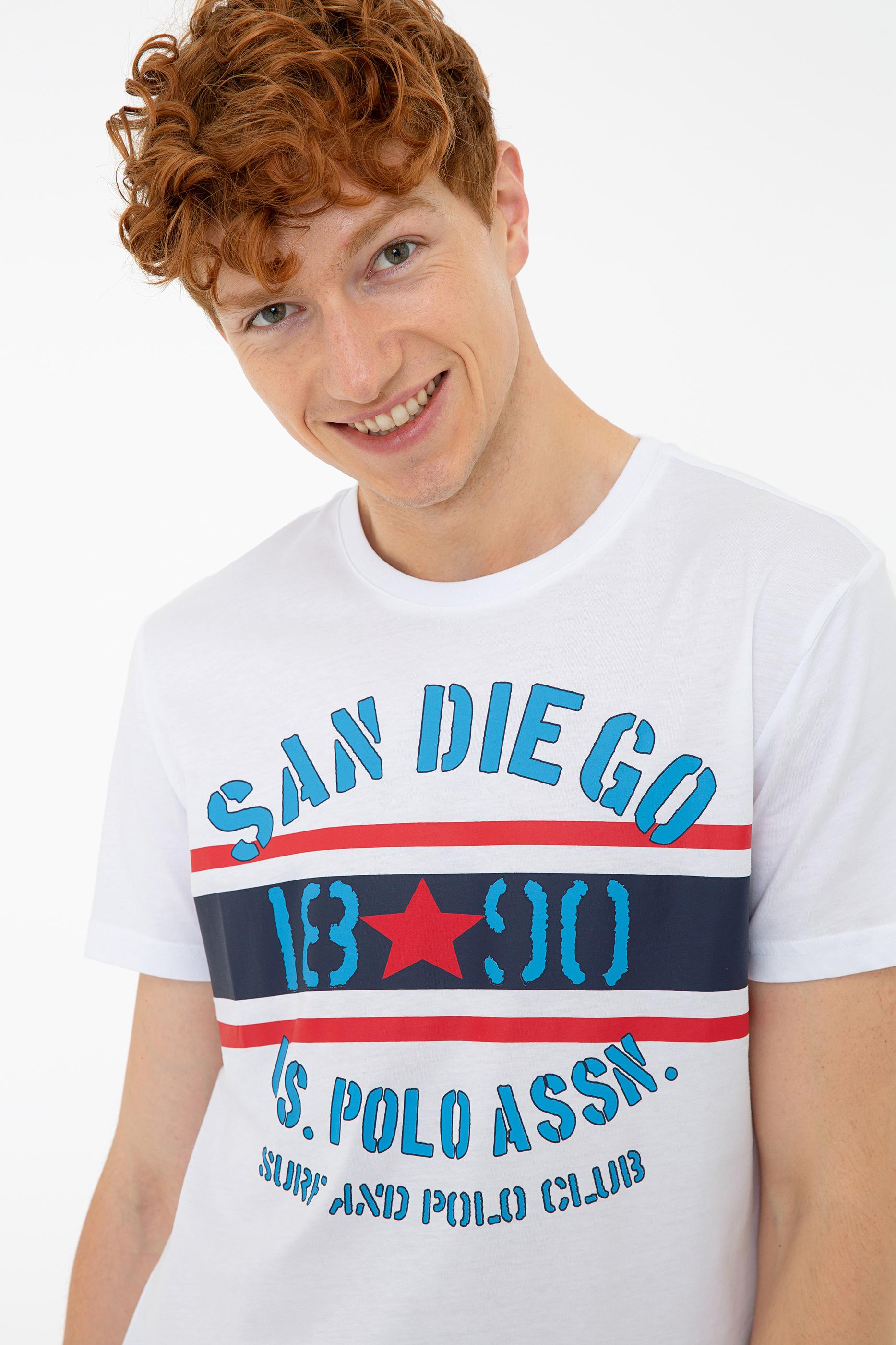 Erkek Beyaz Bisiklet Yaka T-Shirt