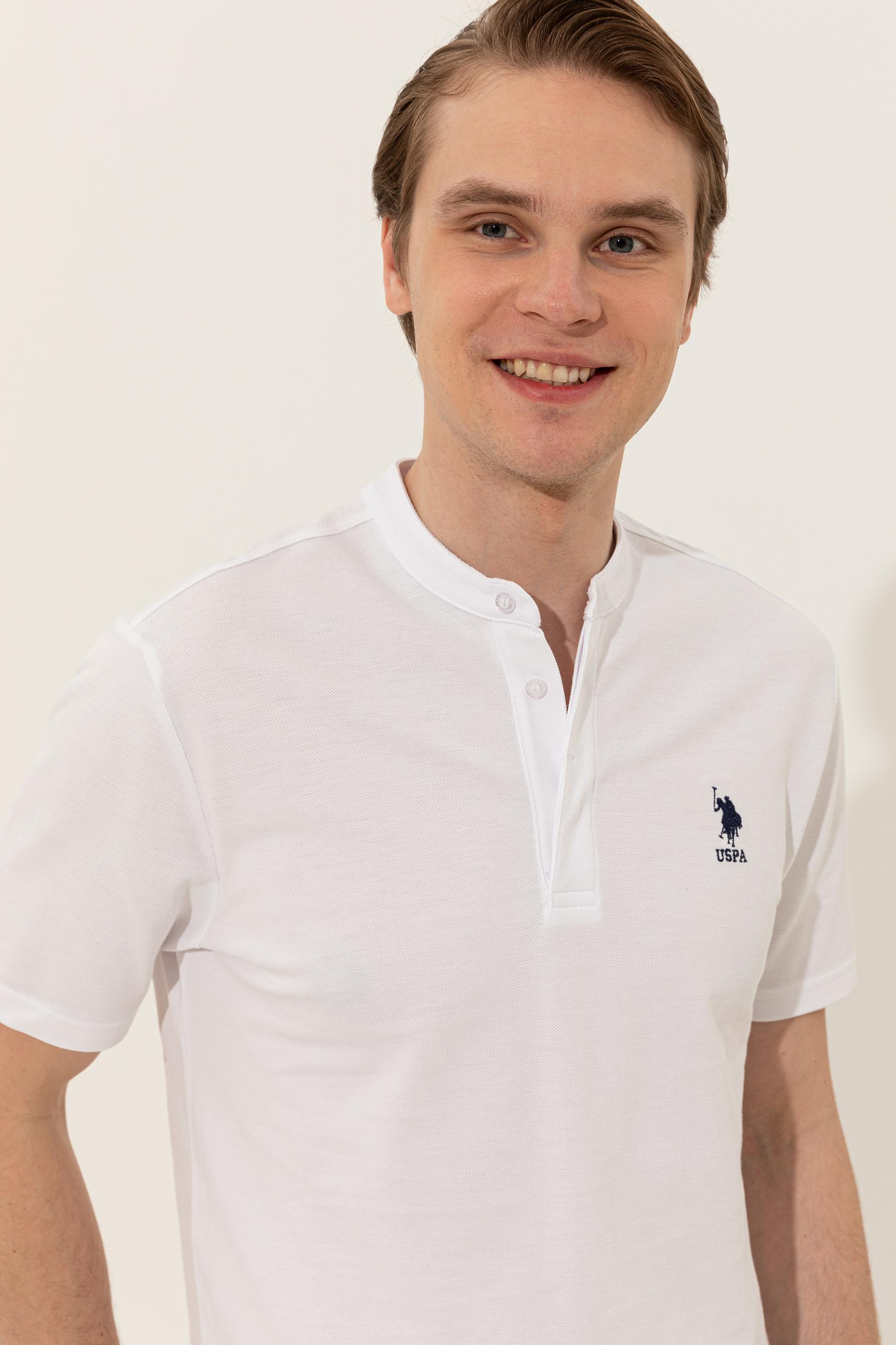 Erkek Beyaz Hakim Yaka T-Shirt