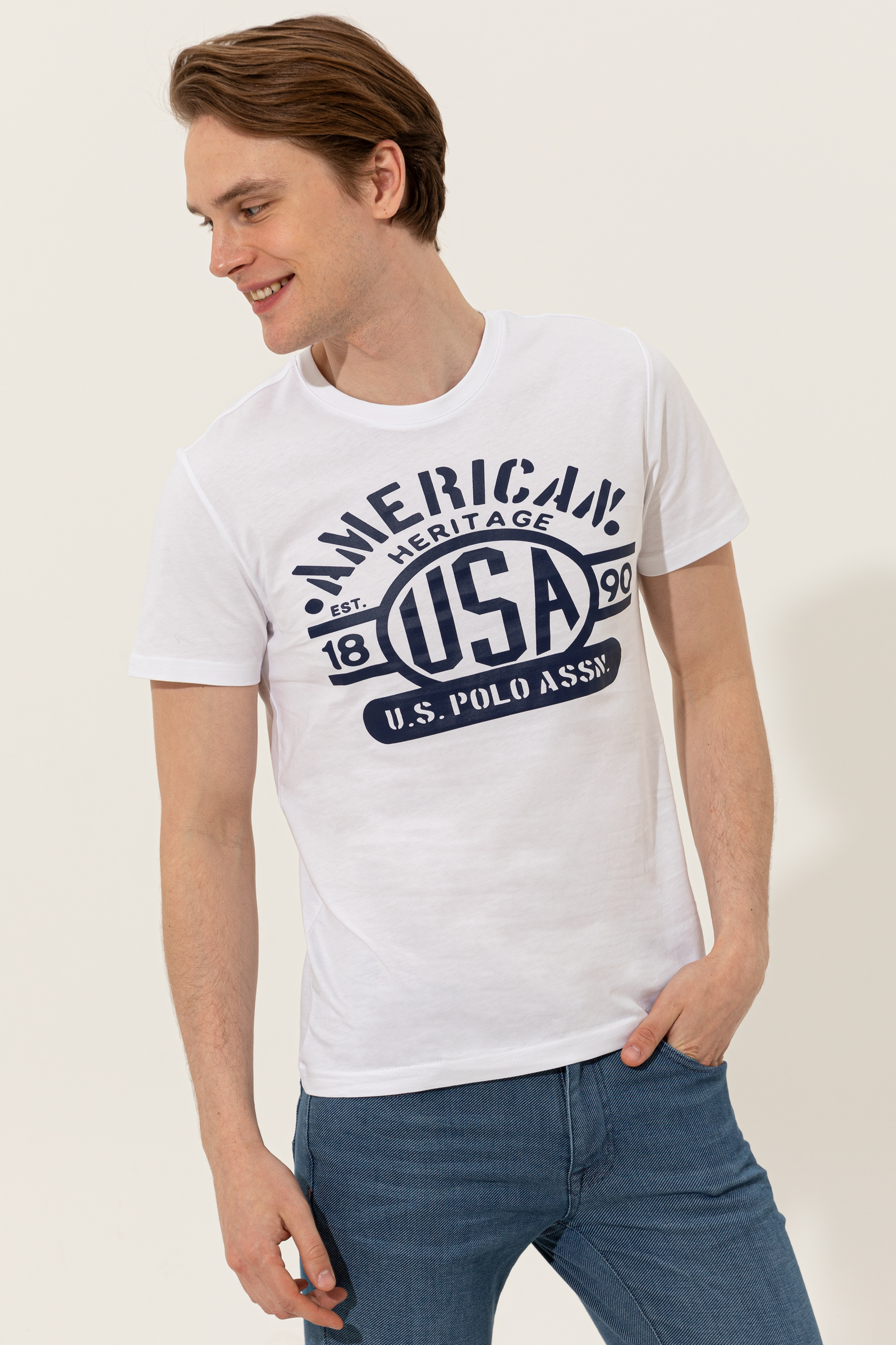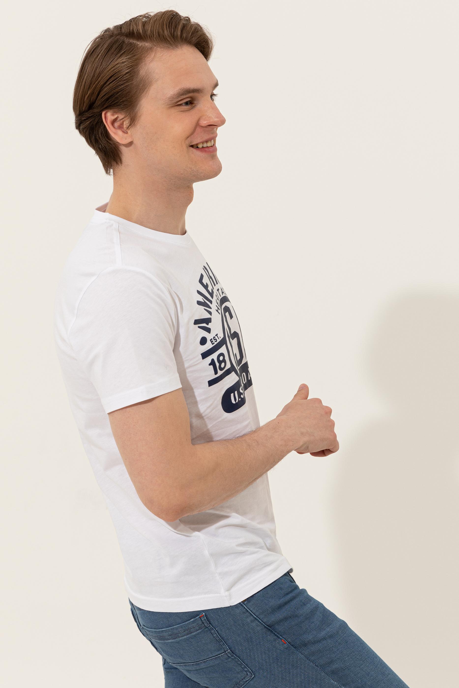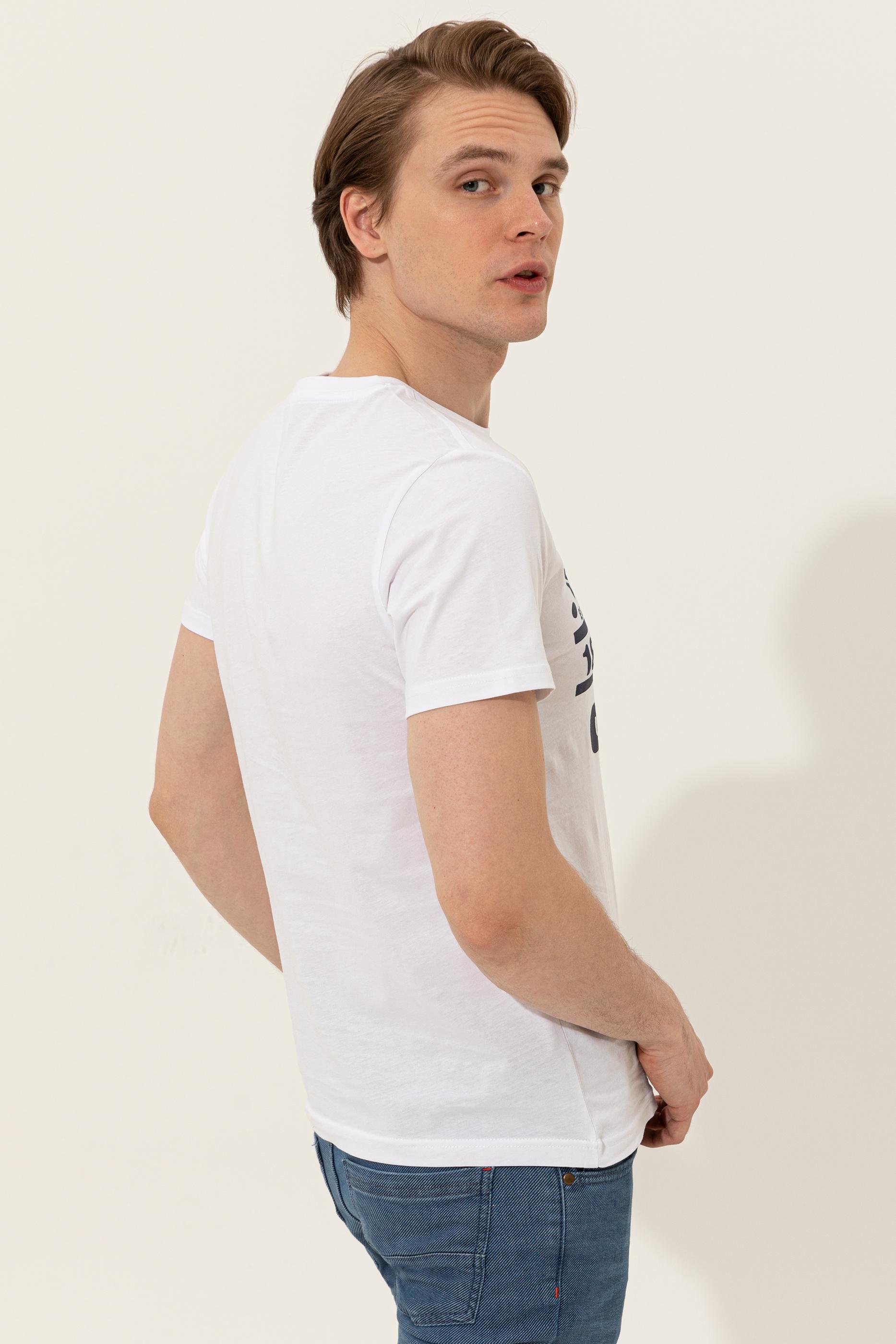 Kolay kombinlenebilen renge sahip, ön kısmında yazılı baskı bulunan slim fit bisiklet yaka erkek tişörtümüz formda görünüm isteyenlerin favorisidir.