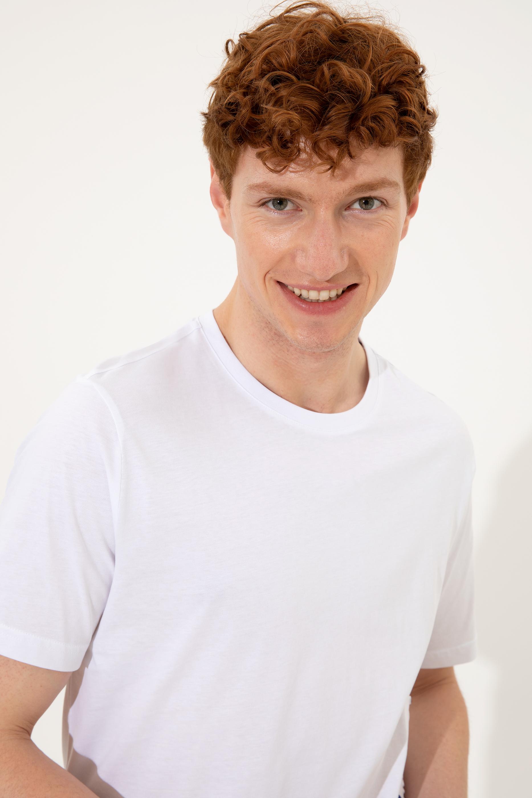 - Erkek Beyaz Bisiklet Yaka Tişört