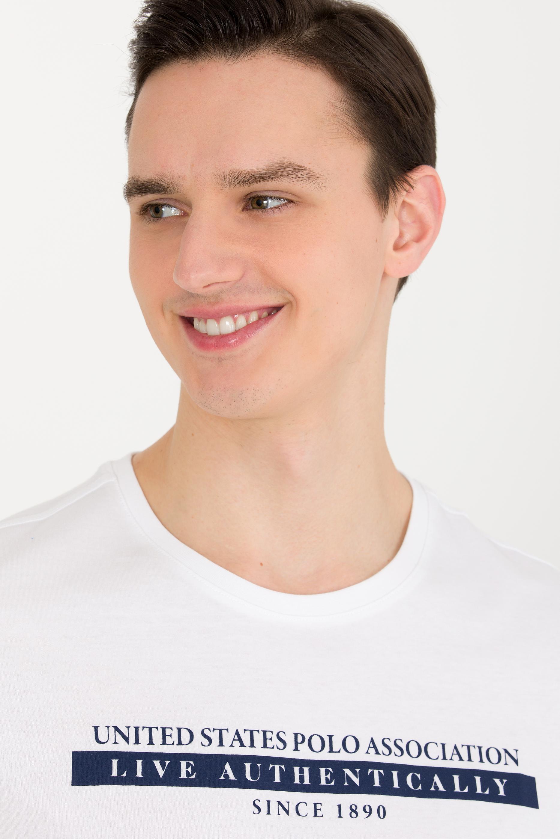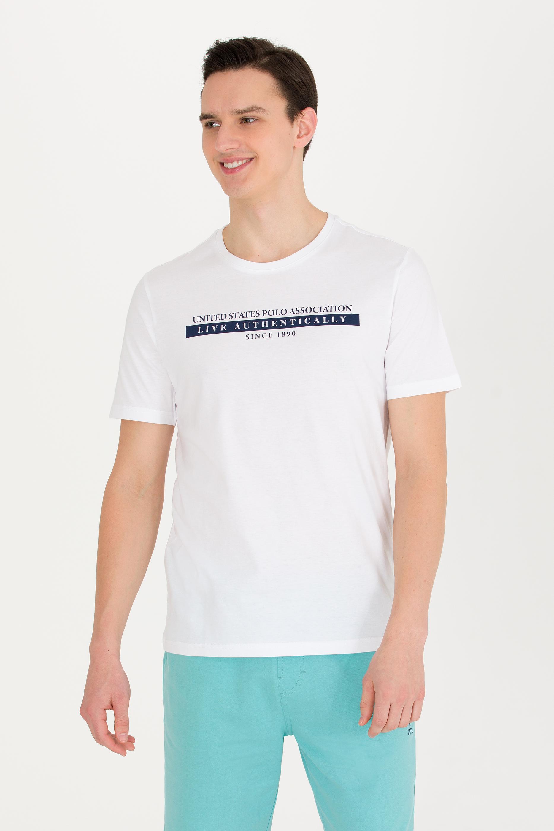 Erkek Beyaz Bisiklet Yaka Tişört