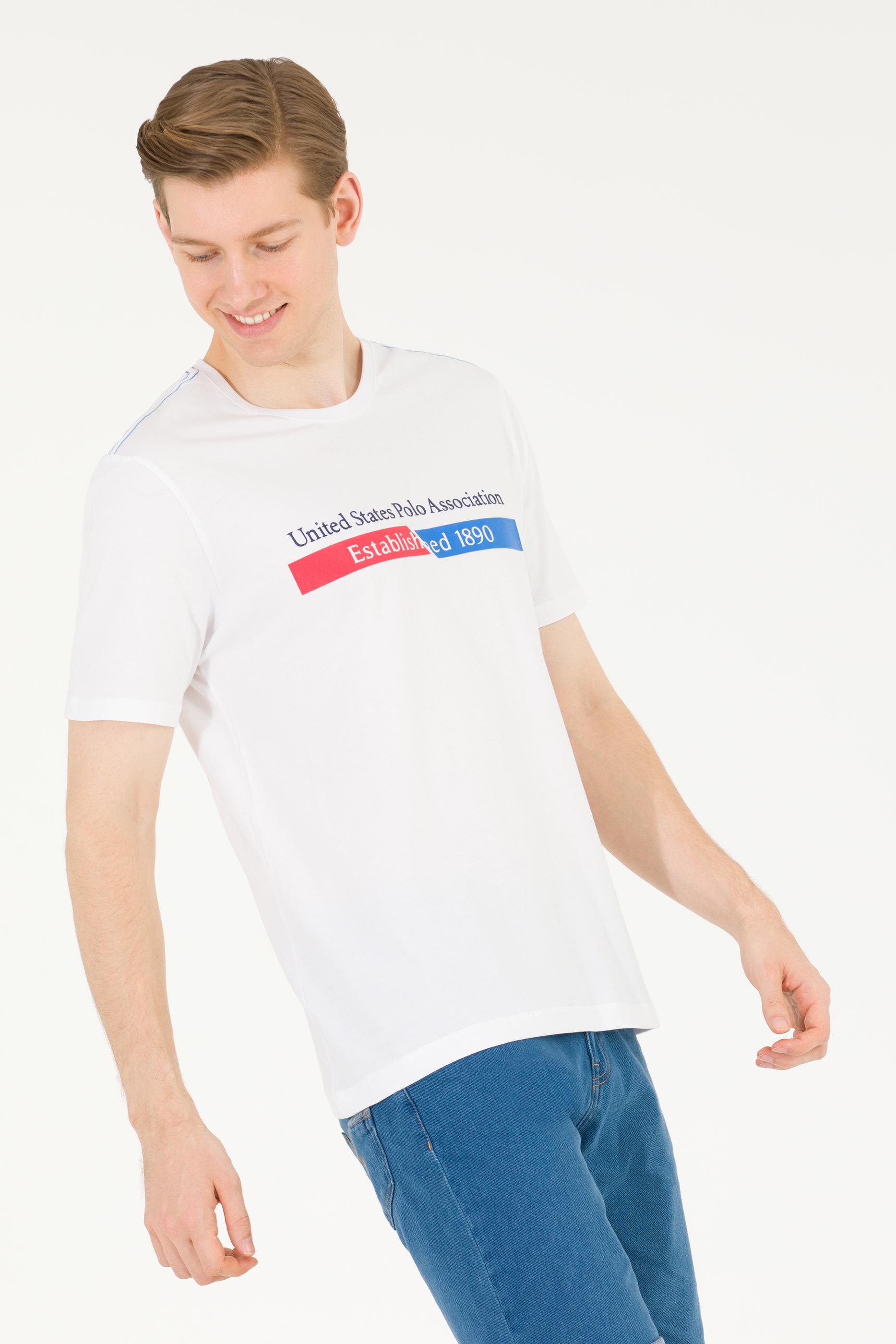 Erkek Beyaz Bisiklet Yaka Tişört